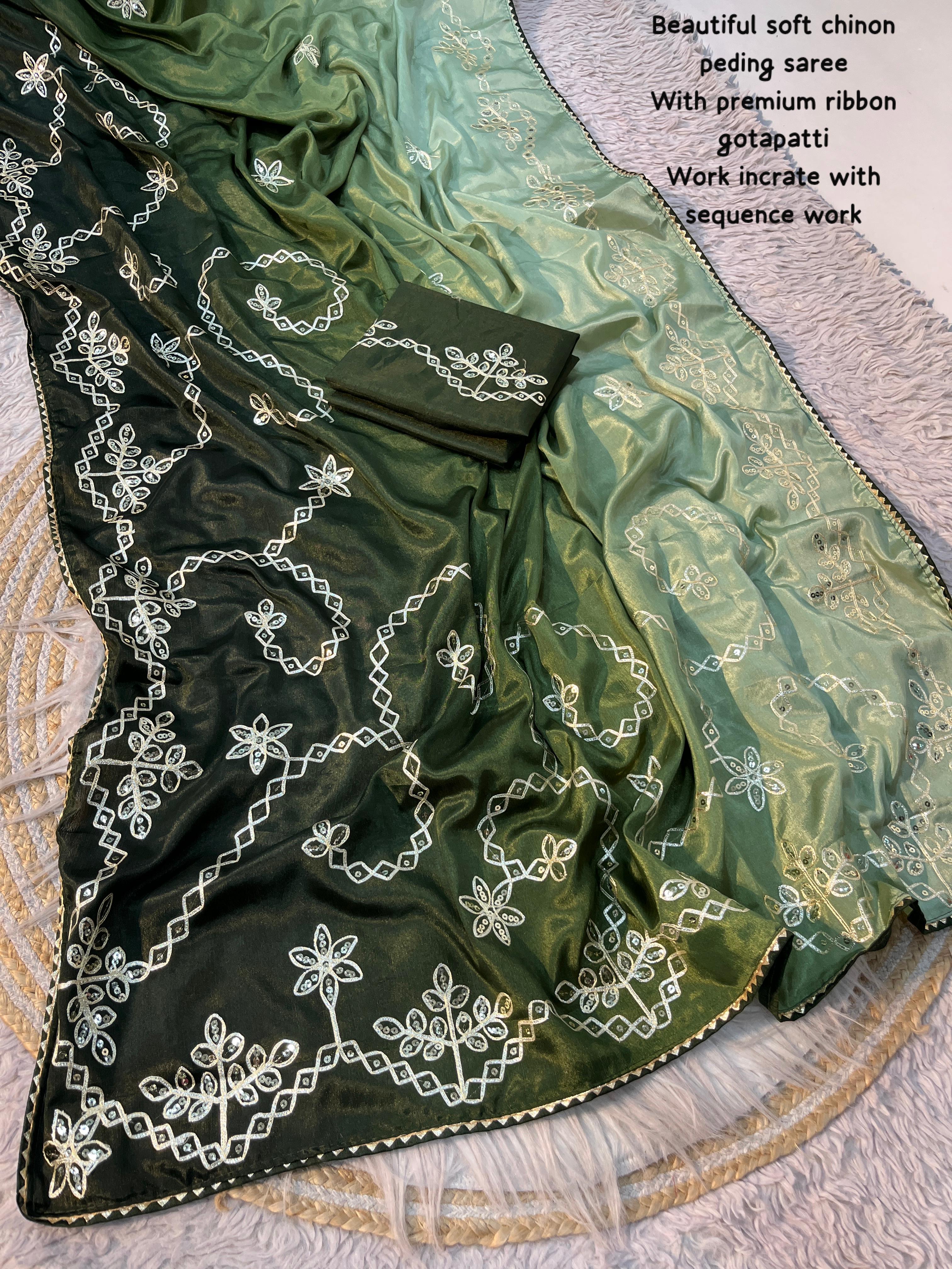 Fabric & work :- beautiful Chinon peding saree with rich look ribbon gotapatti zaal work with sequence work