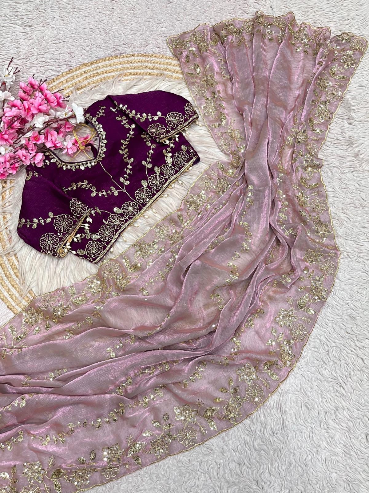 Fabric : Fendy Chiffon two ton fully stitched Coding sequence embroidery blouse with mirror lace touch up & fancy latkan (38upto42)