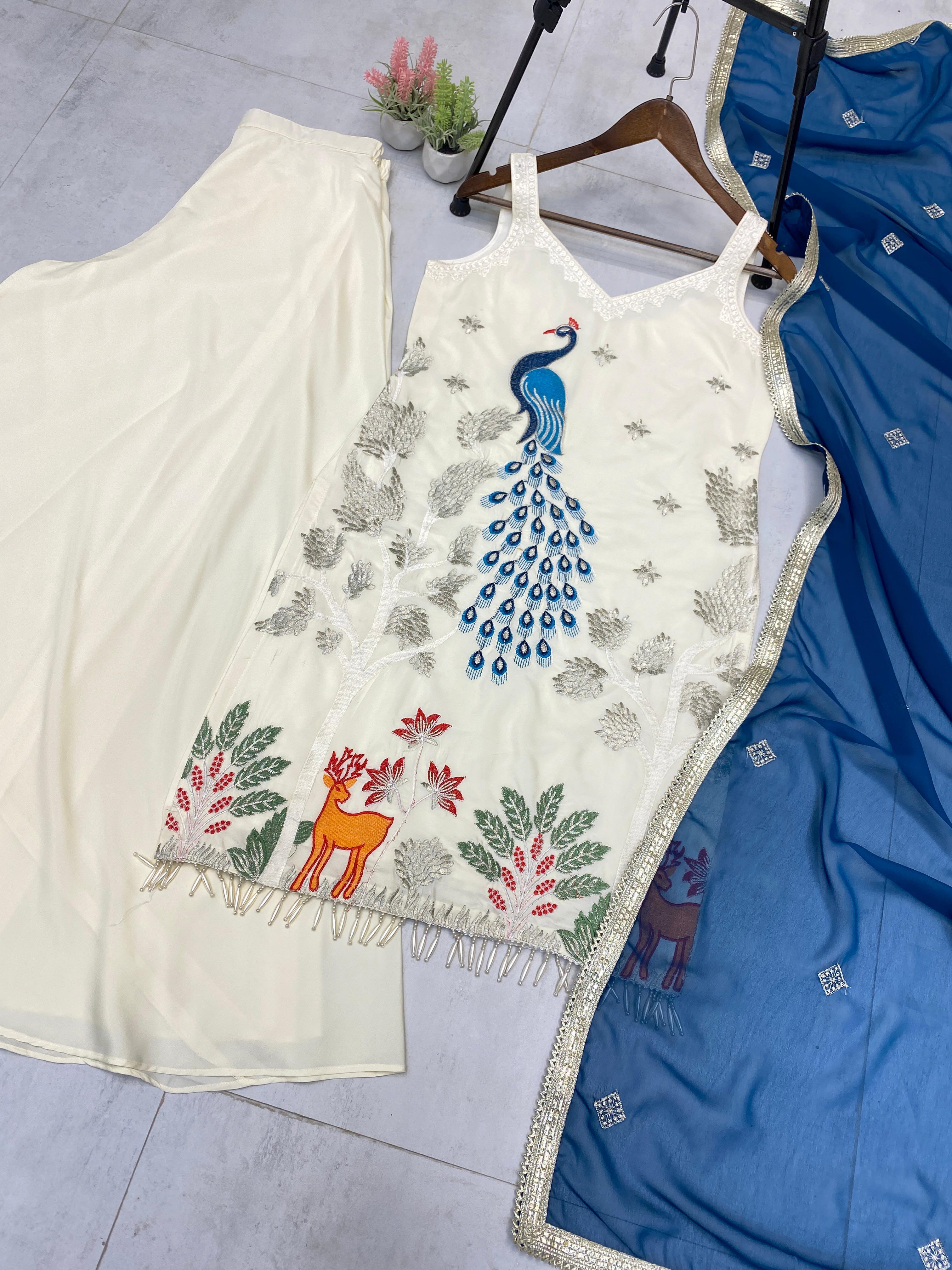 __EXCLUSIVE PLAZZO PAIR WITH EMBROIDERED PEACOCK 🦚 ✨__