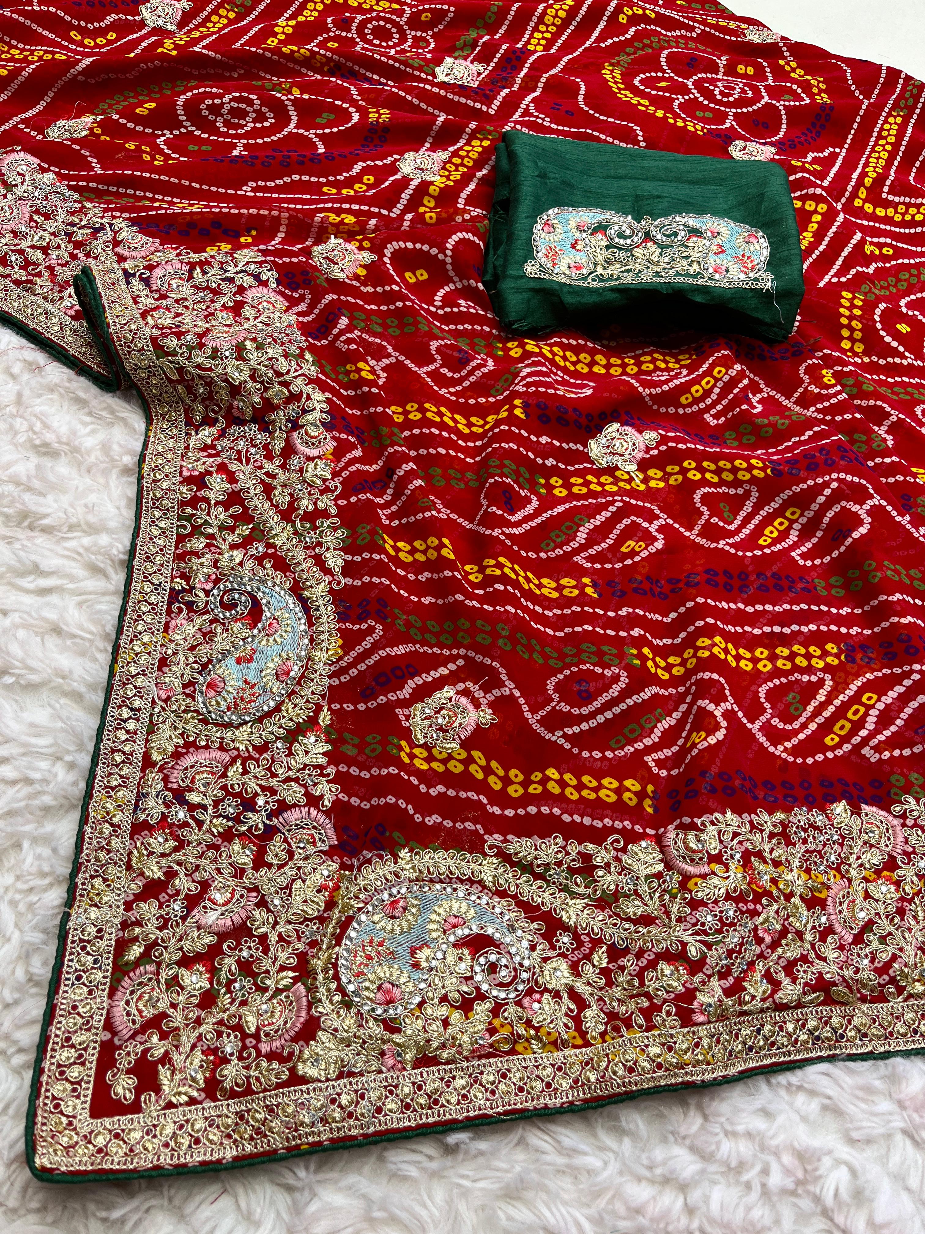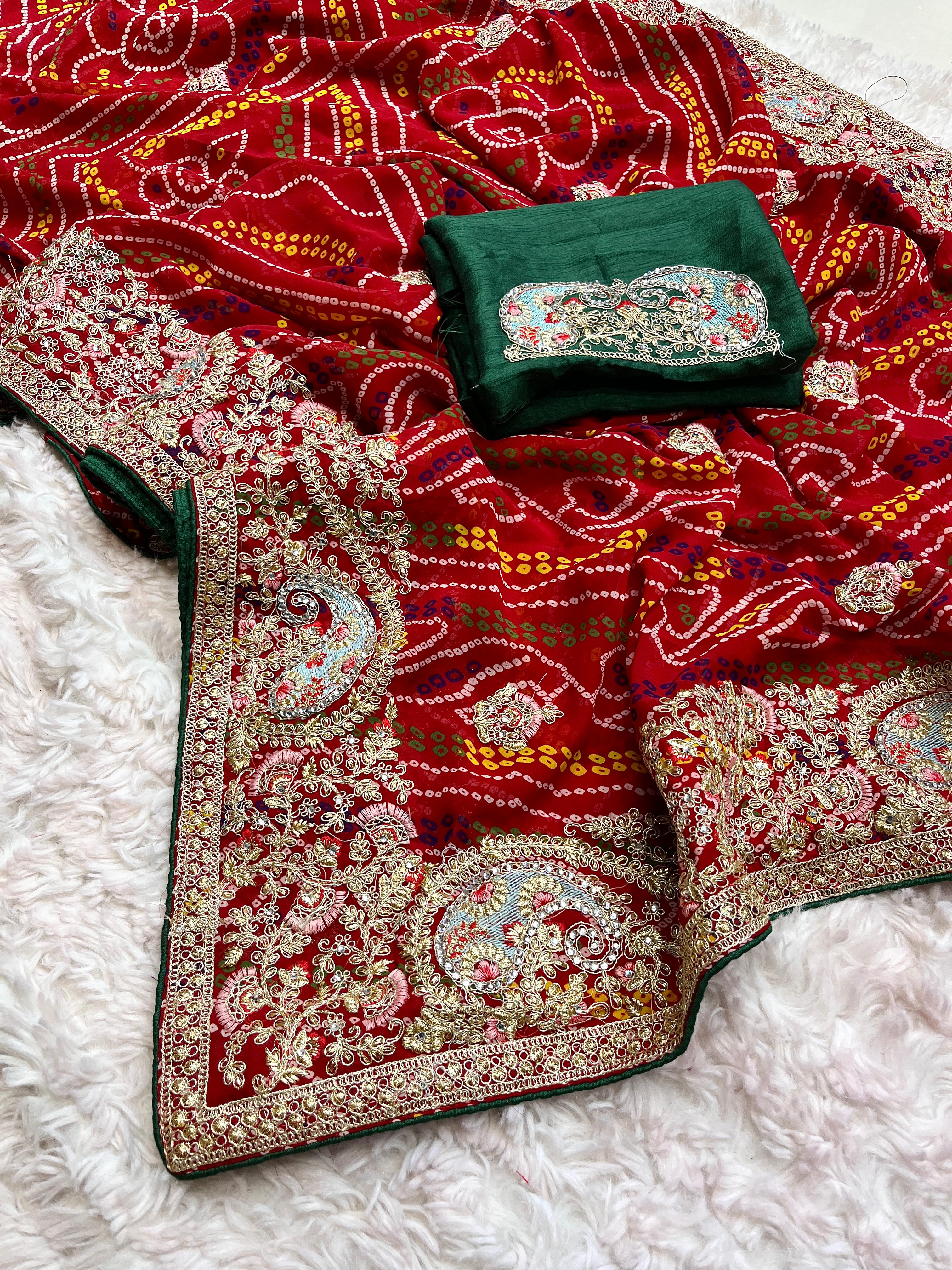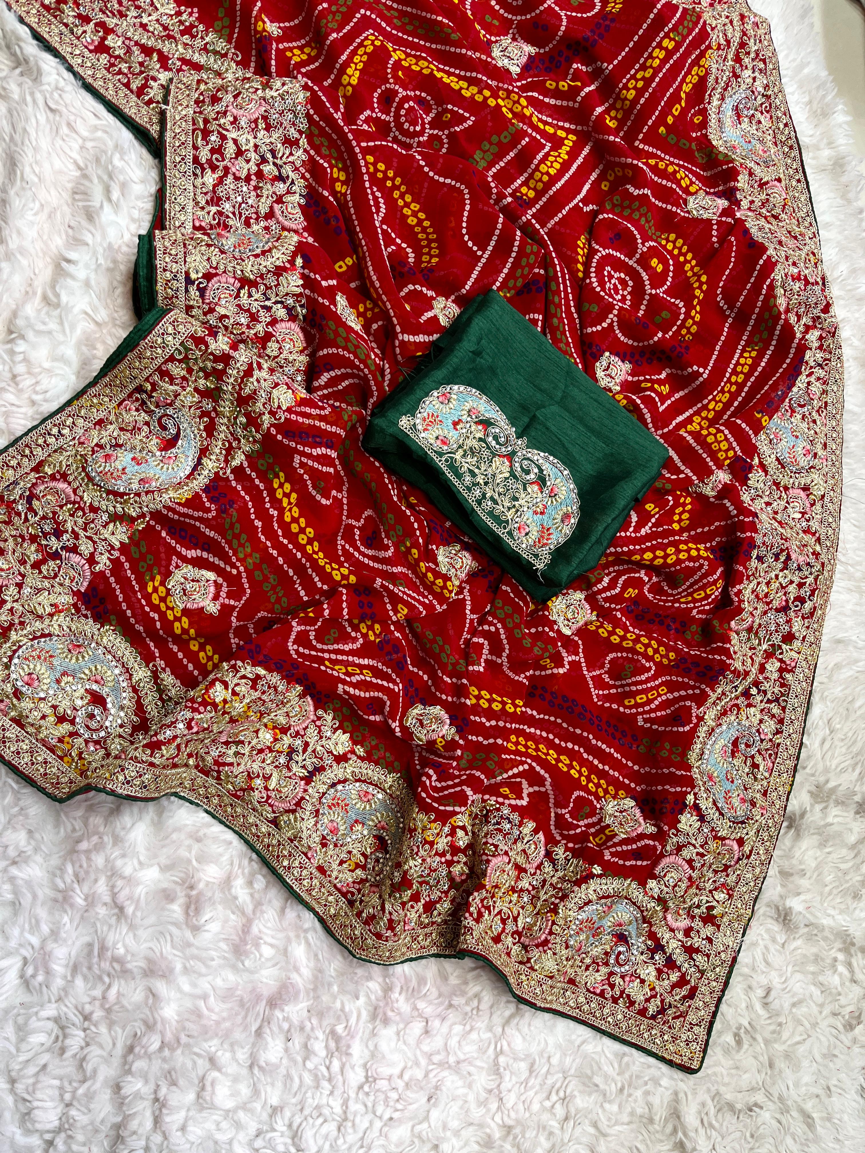 ✔️Get ready to shine in this exquisite Gangaur special bandej saree✔️