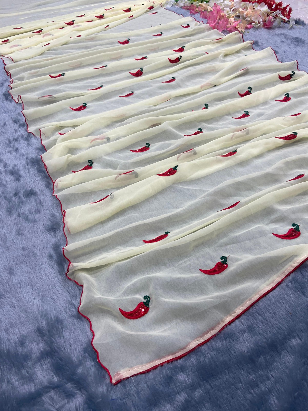 Saree : Premium Georgette Embellished With Beautiful Embroidery Work With Sequins Work( Ready To Wear )