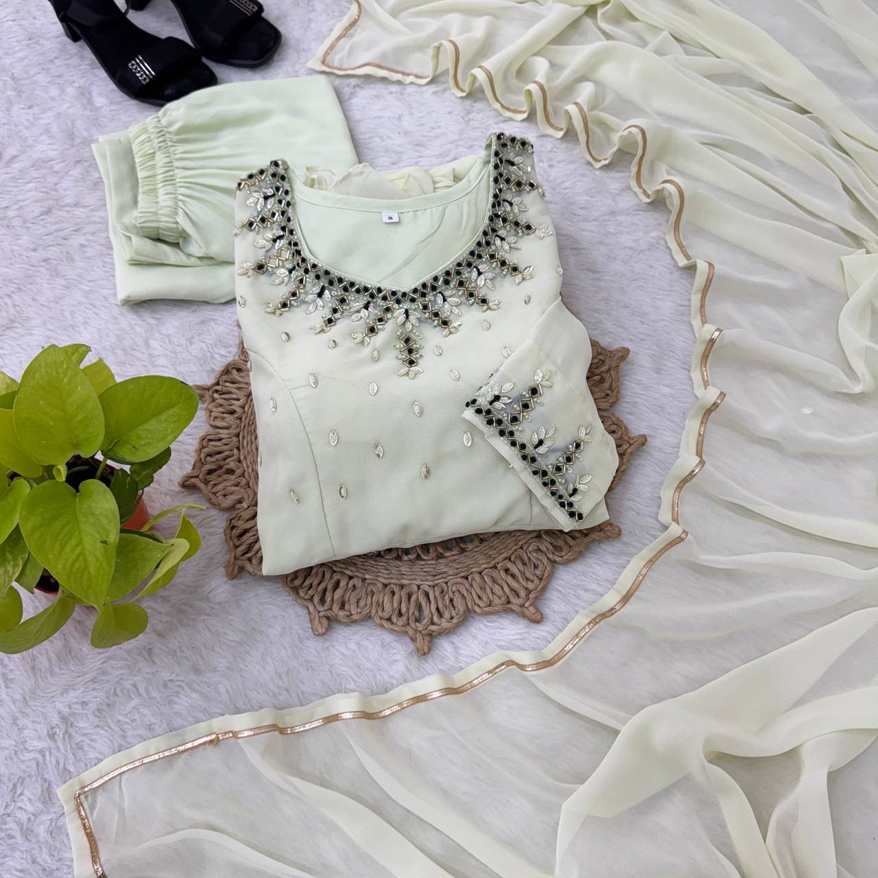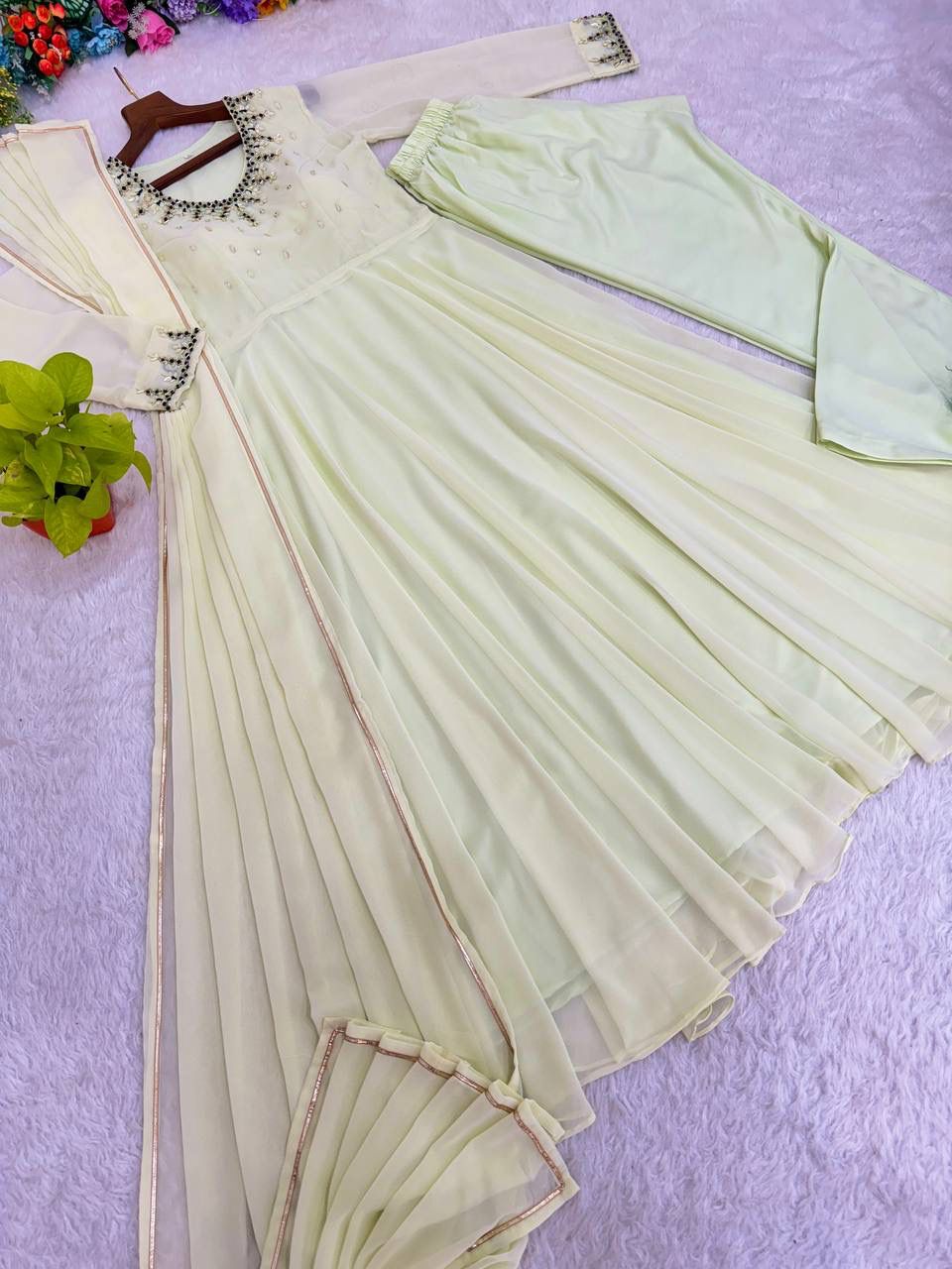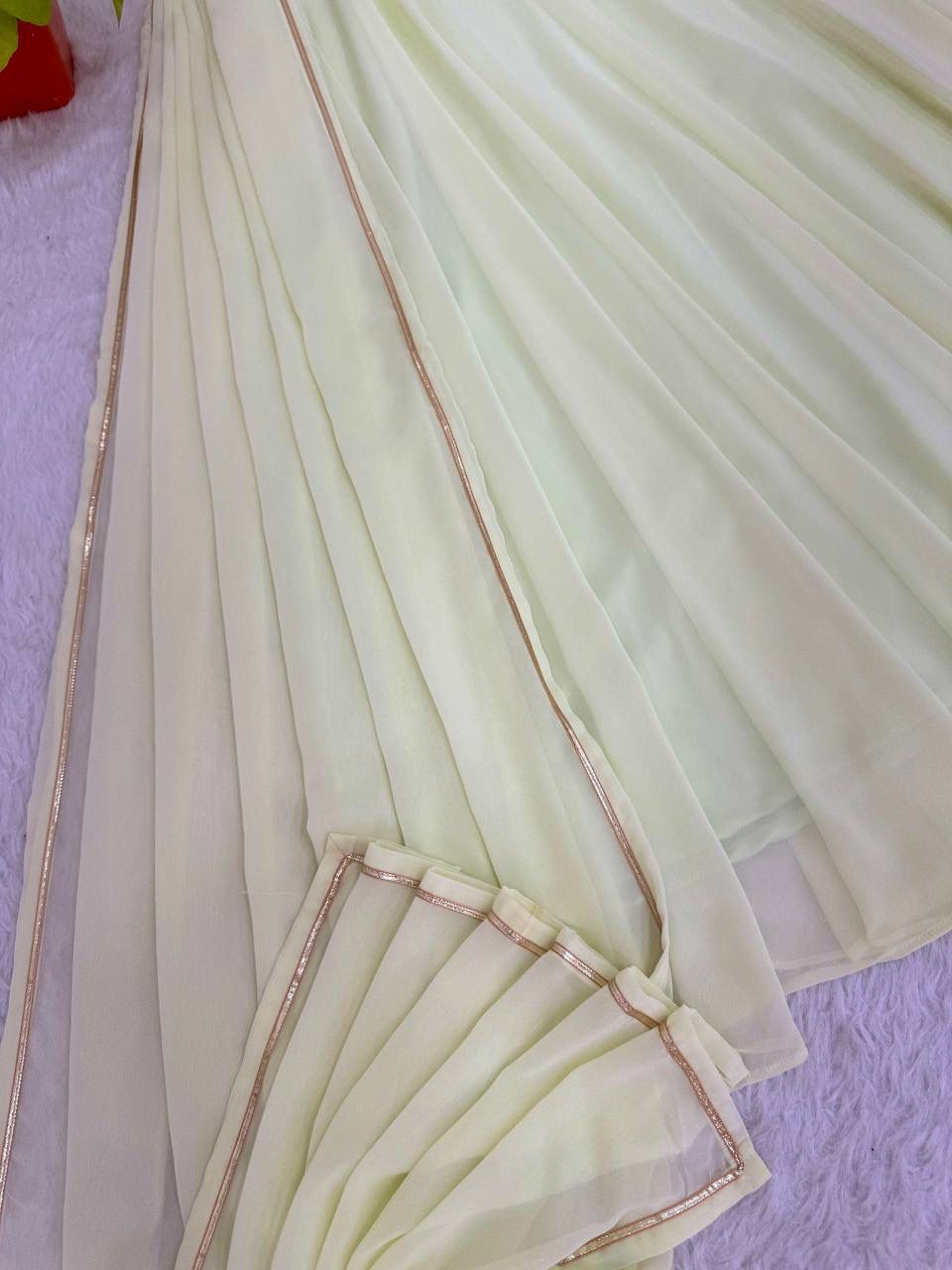 👗Gown Febrics Fox Georgette Heavy Quality Fabric With Handwork Neck And Sleeve ,With Creap Pant , Duptta For Said Gotta Lampi Lece