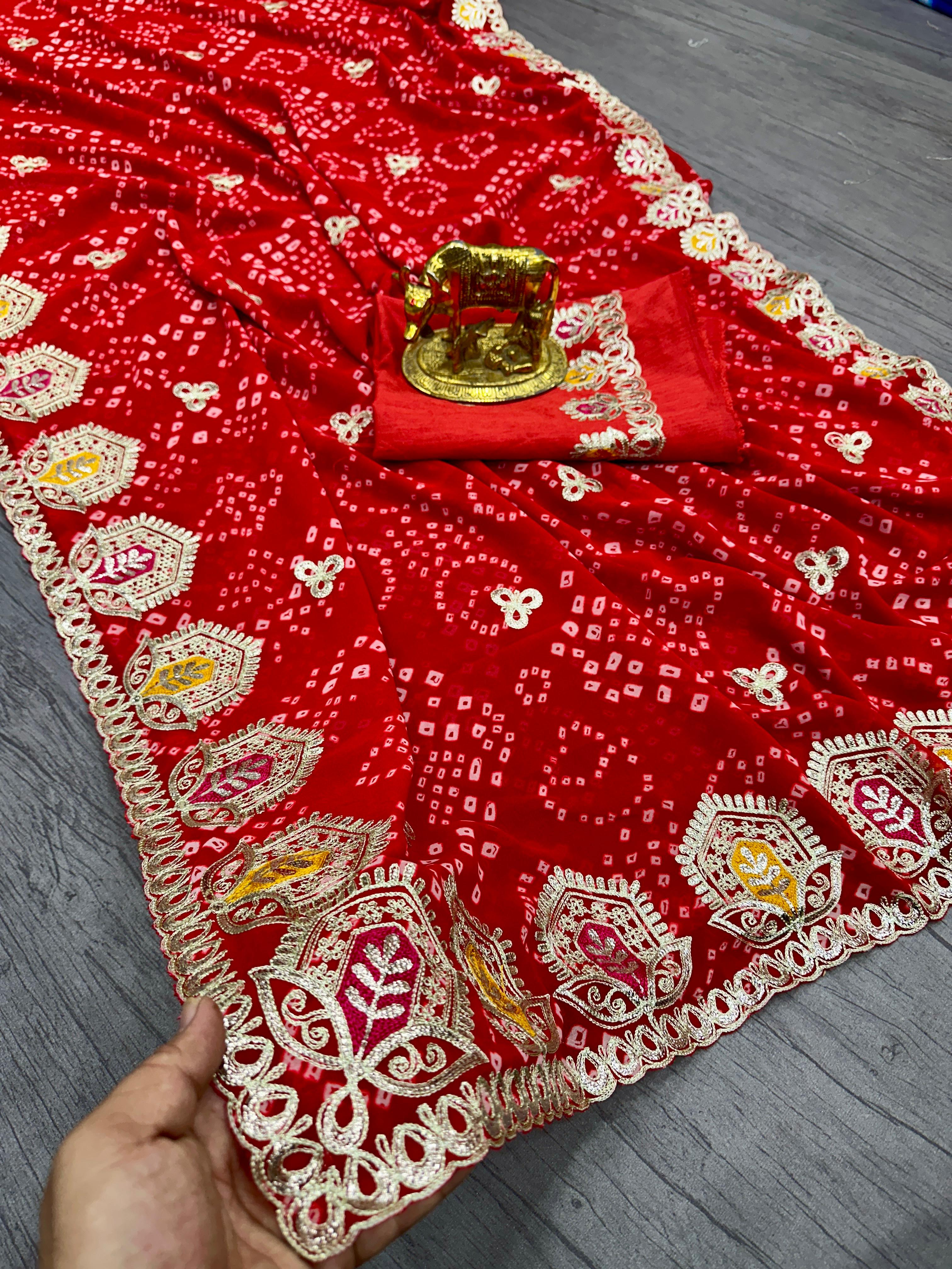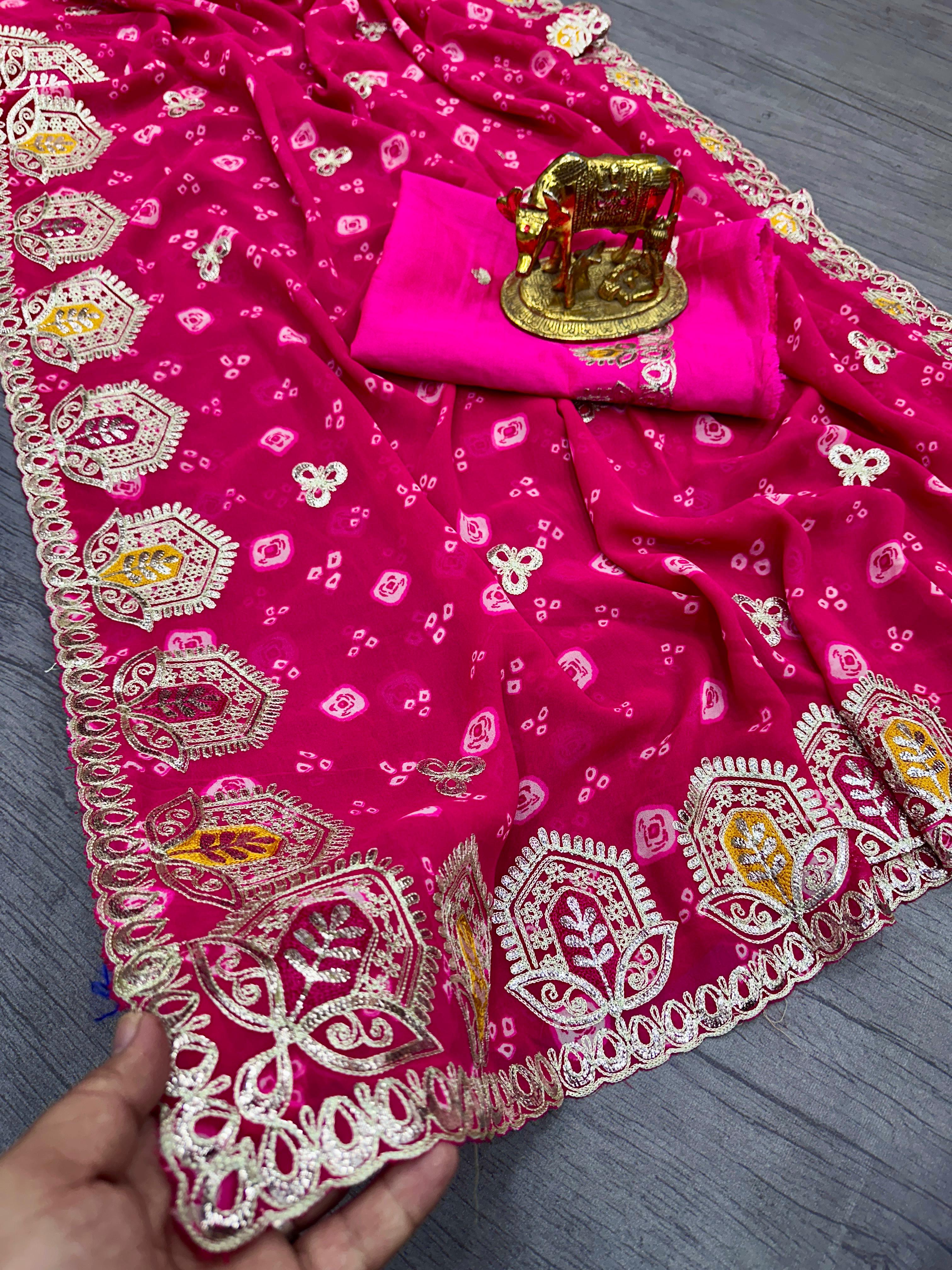 Presenting The Pure CxC Georgette Saree with Luxury Bandhani Print With Trending Heavy Sequence Work in C~Pallu Work & Border😊