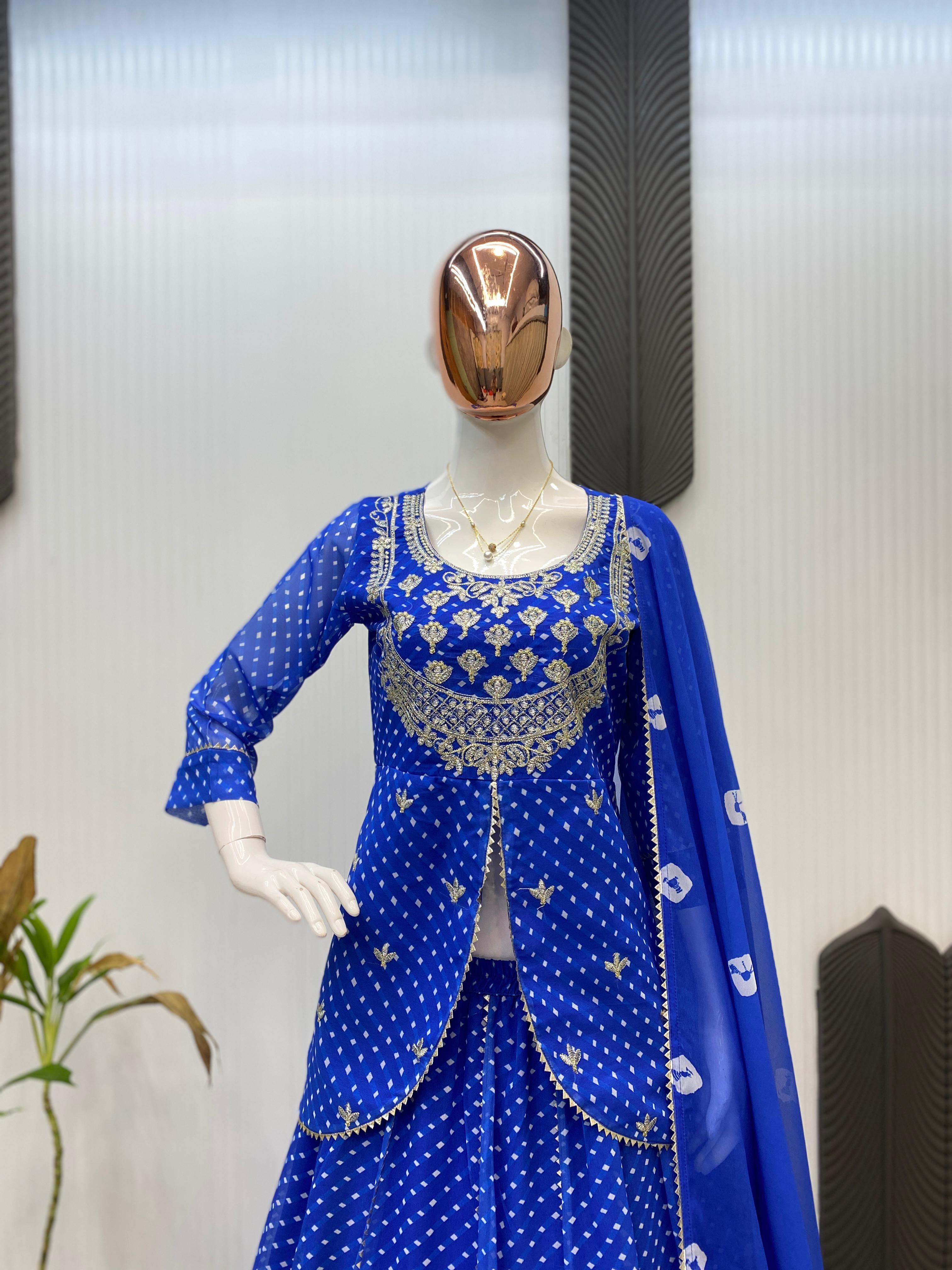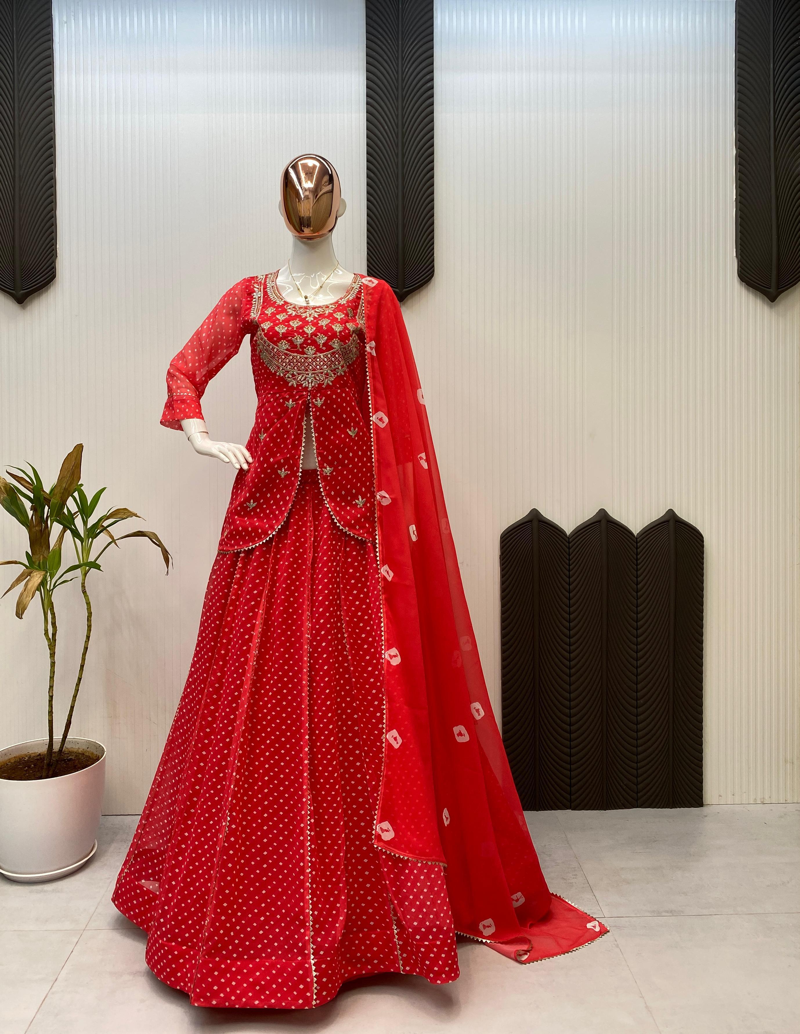 FOR THIS UPCOMING RAKHI THEEJ SAVAN NAVARATRI SEASON OUR EXCLUSIVE PRINTED GEORGETTE FULL STITCHED LEHENGA CHOLI