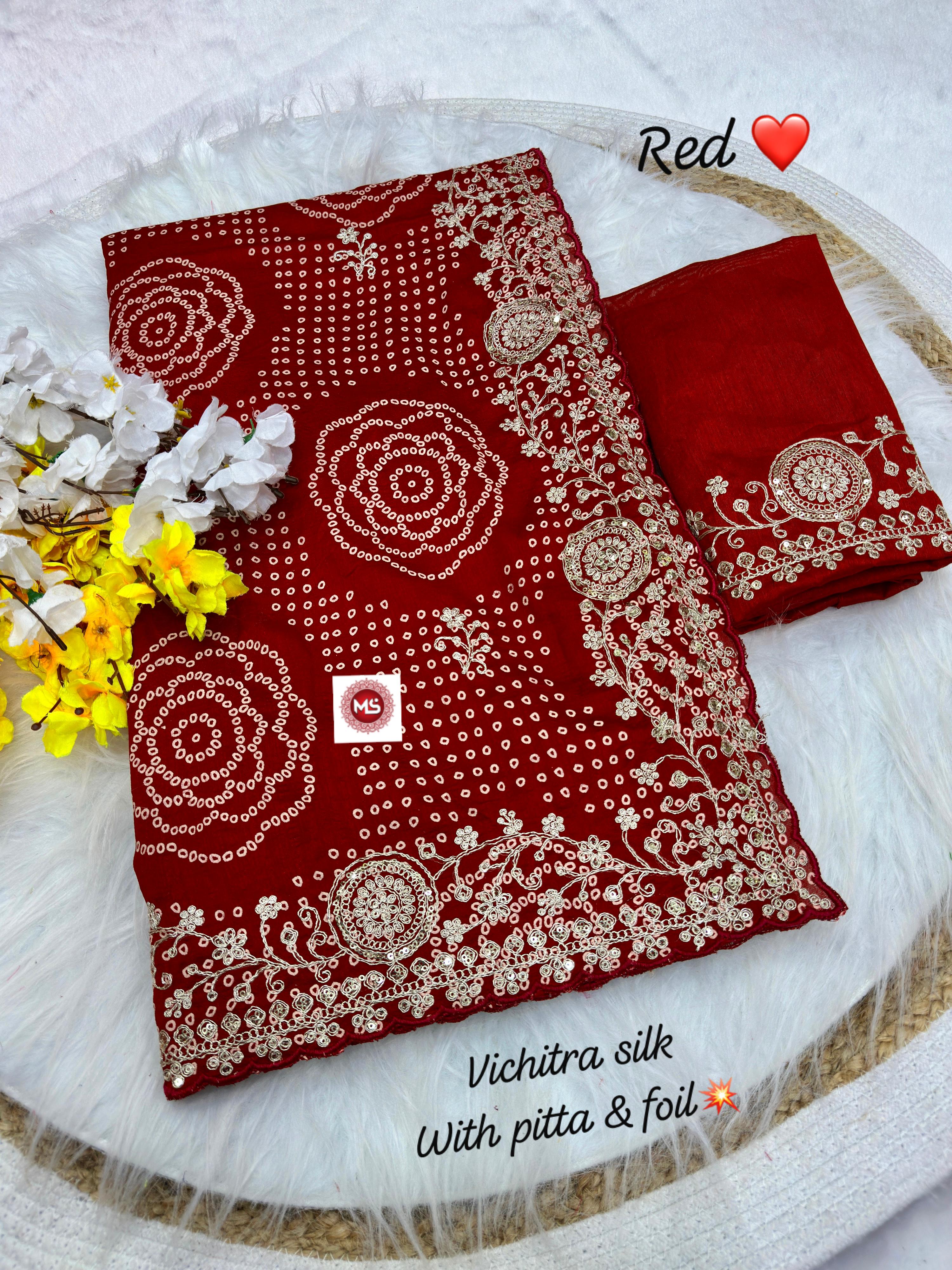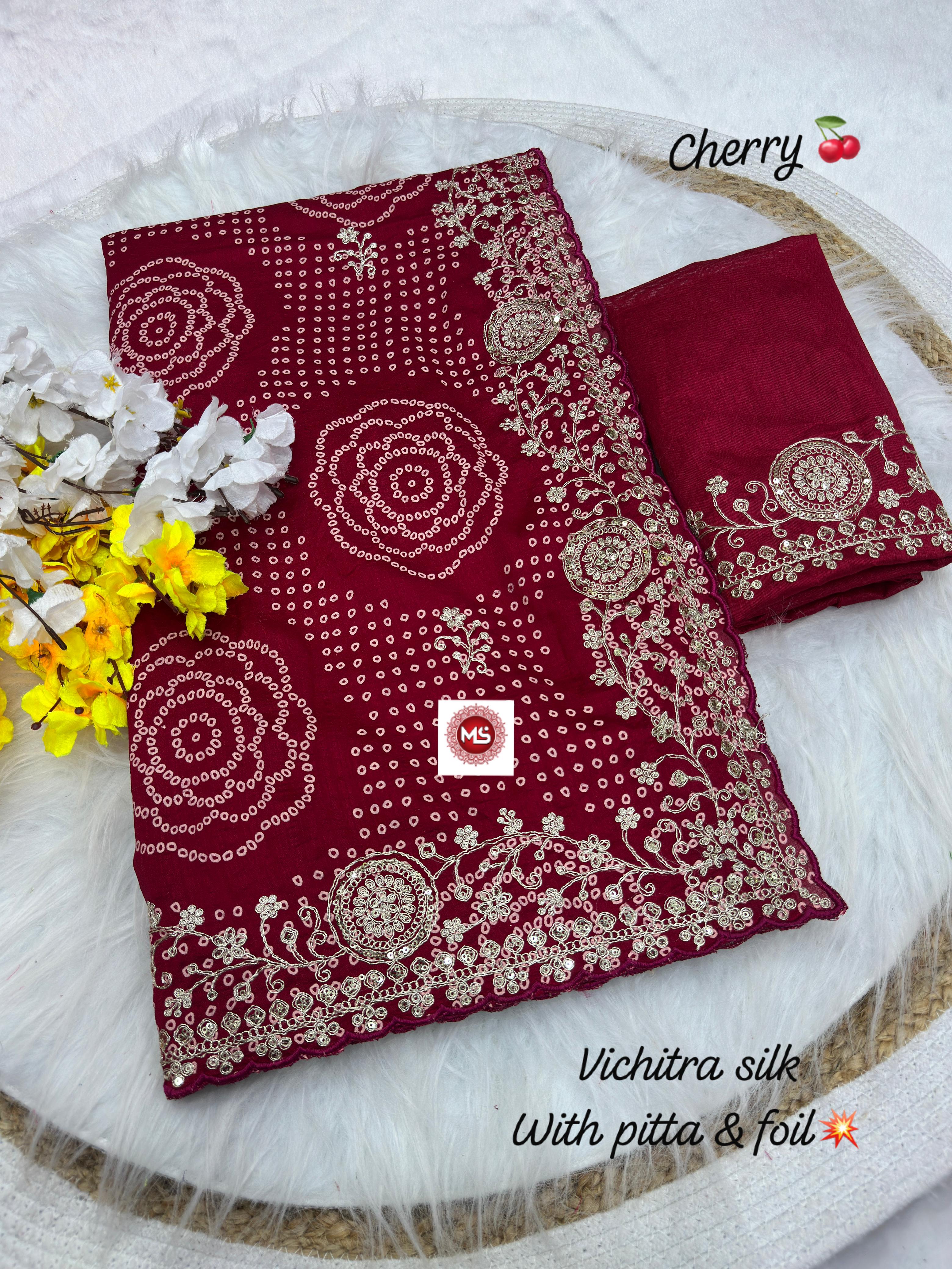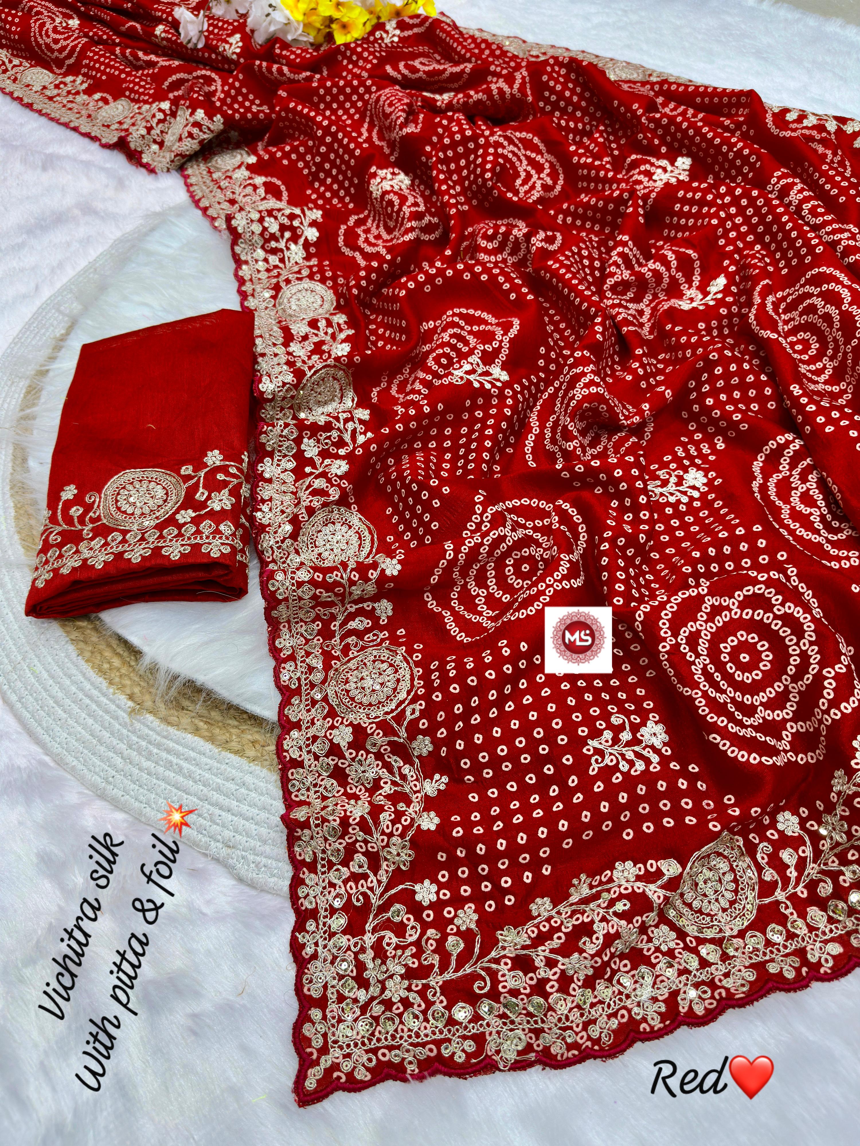 💓Beautiful Natural palty saree VICHITRA SILK WITH FOIL PRINT WITH PITTA work cut work bardar in all saree