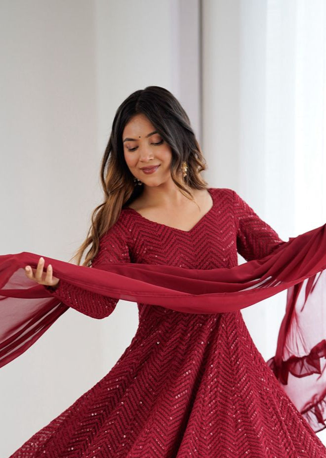Launching this timeless and classic lukhnowi Georgette fabric Anarkali suit set for the upcoming festivities and wedding season