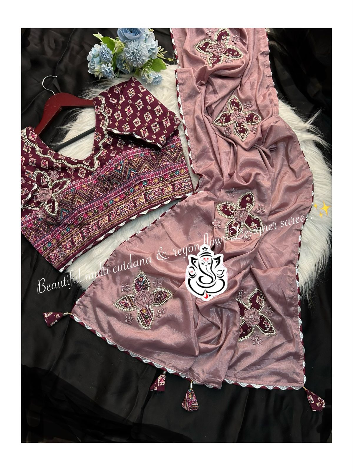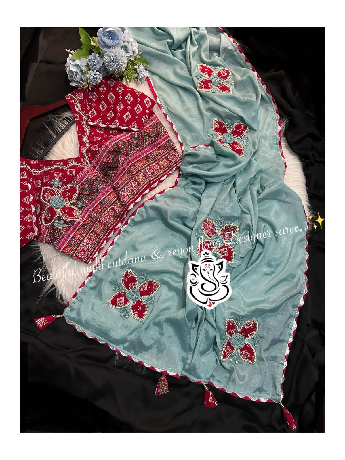 Blouse :- Rayon fabric elegant printed with Moti & cutdana work & butta in ..