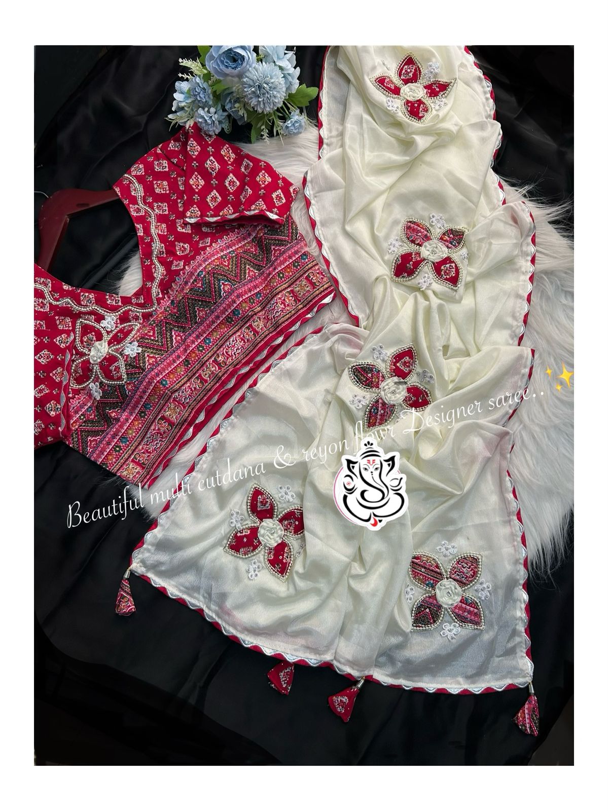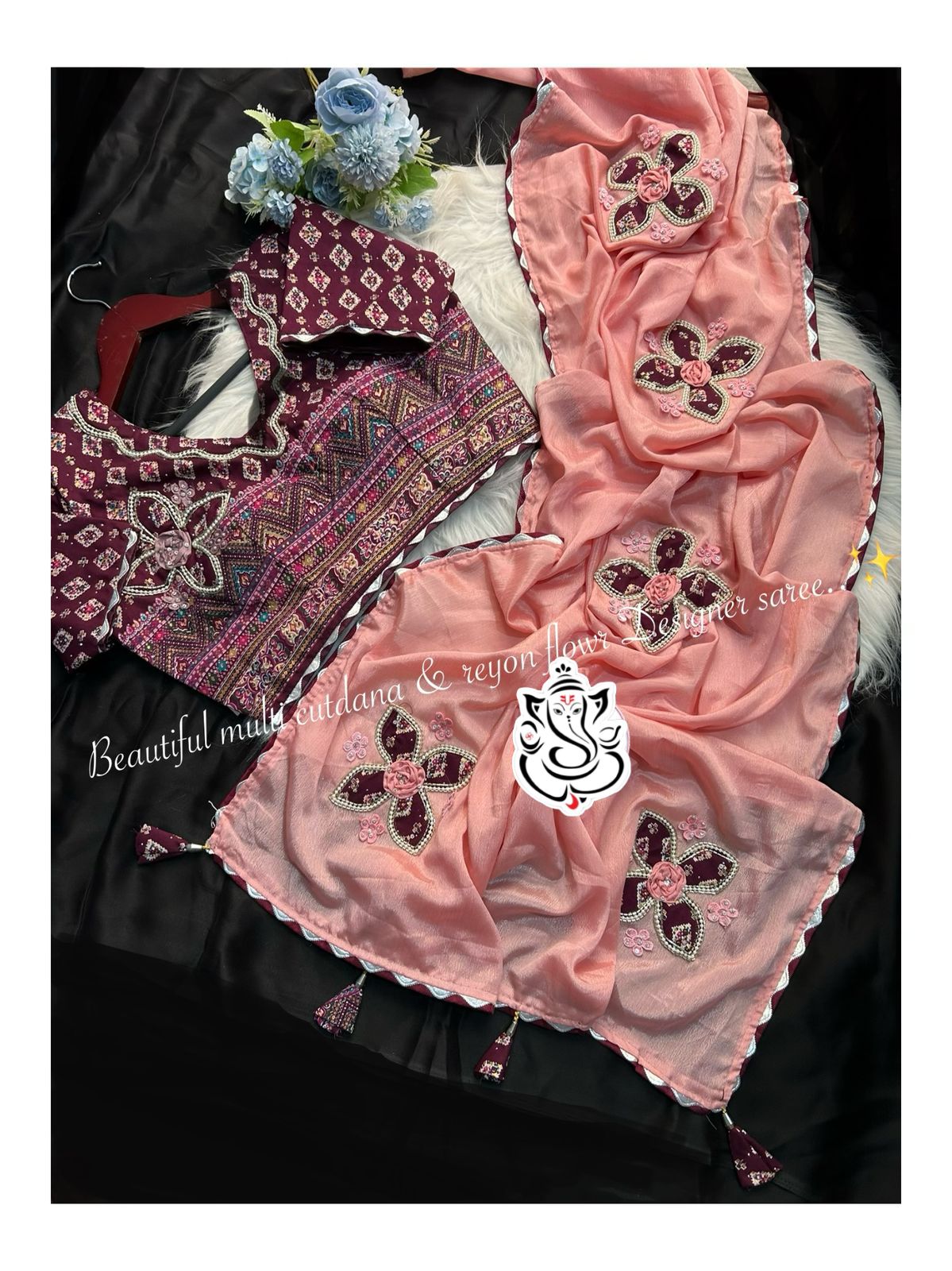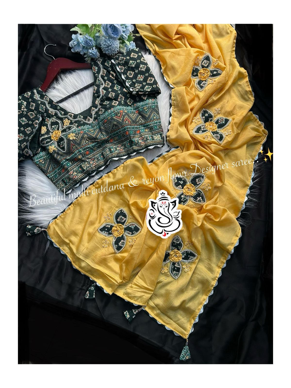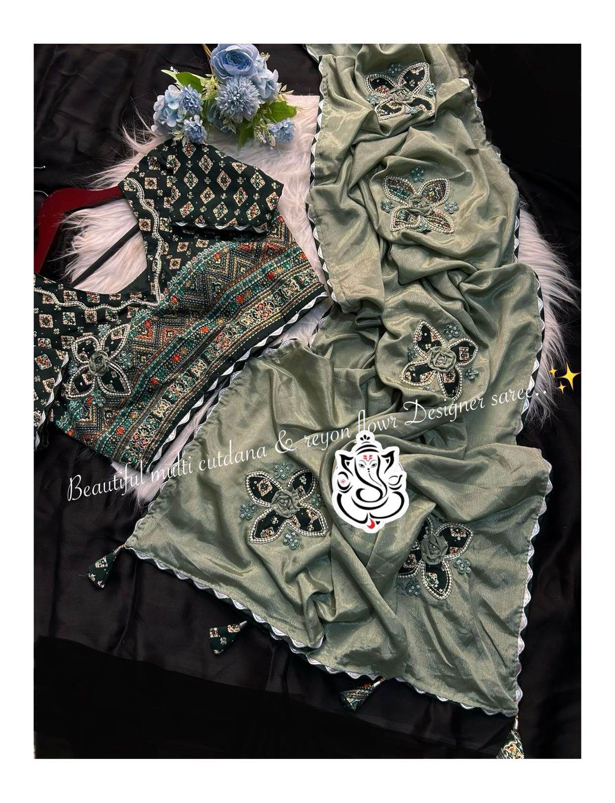 Beautiful mutli cutdana,moti & daymond reyon flower butta Designer saree with gota designer pypin boder..✨
