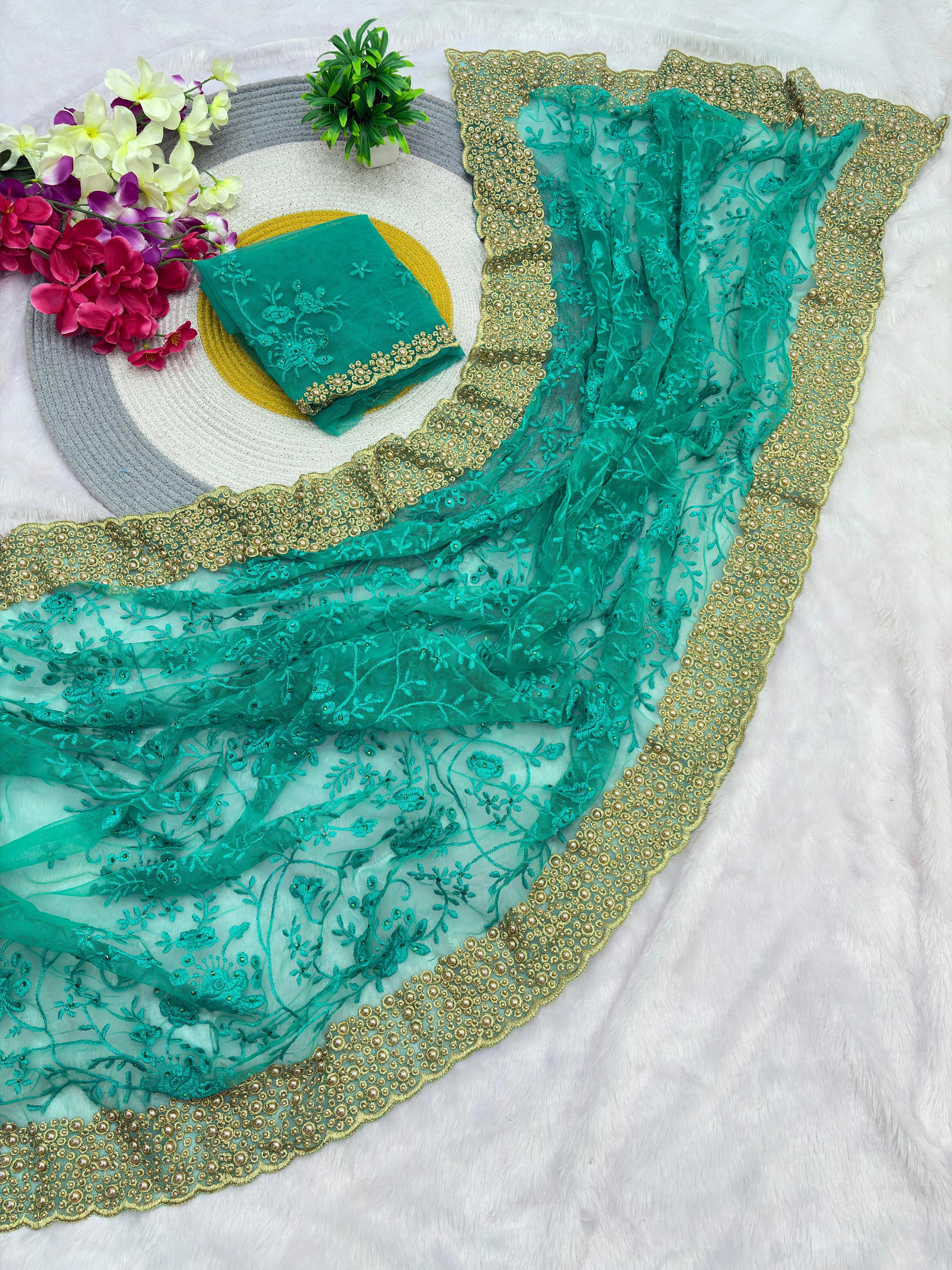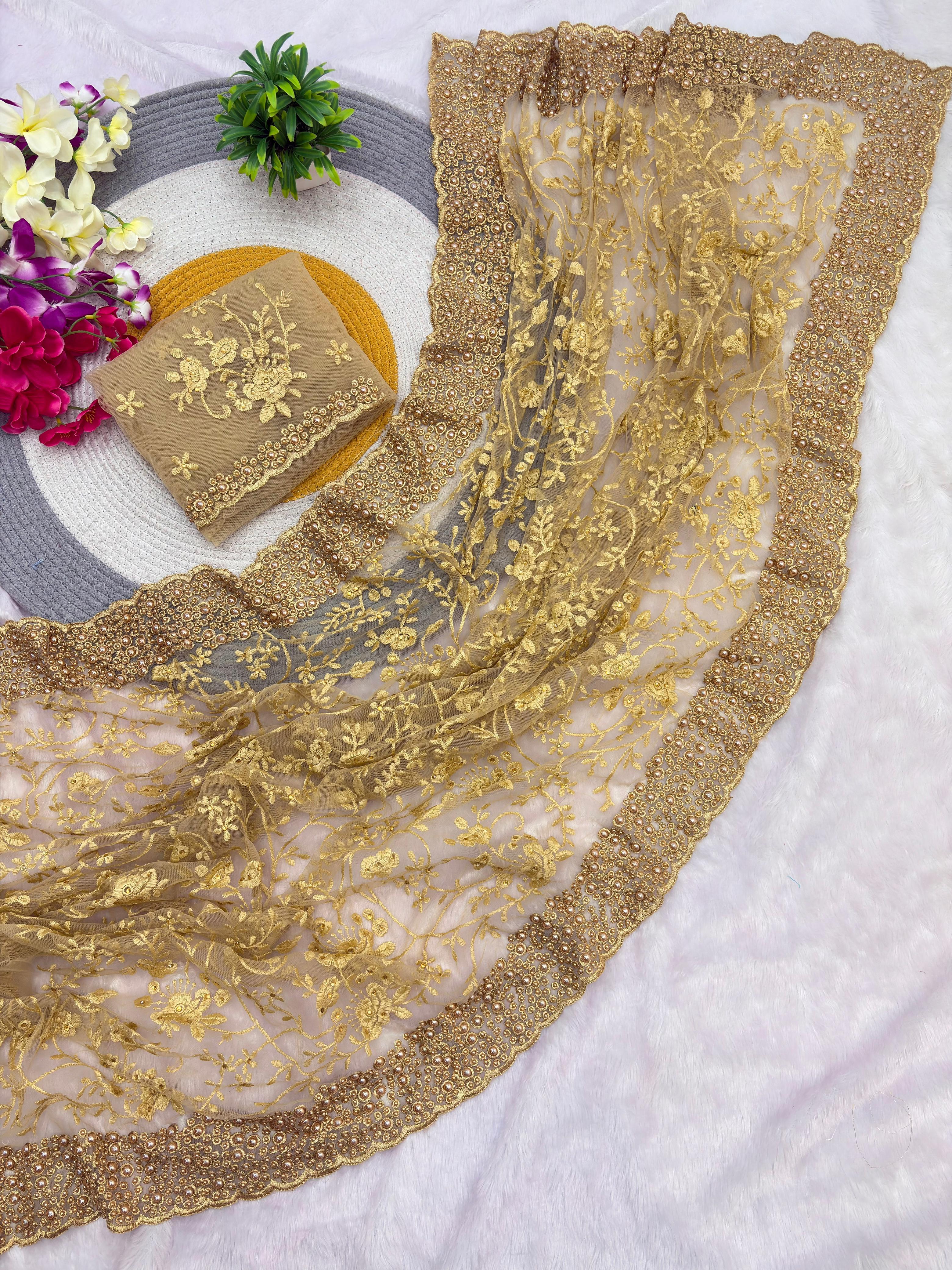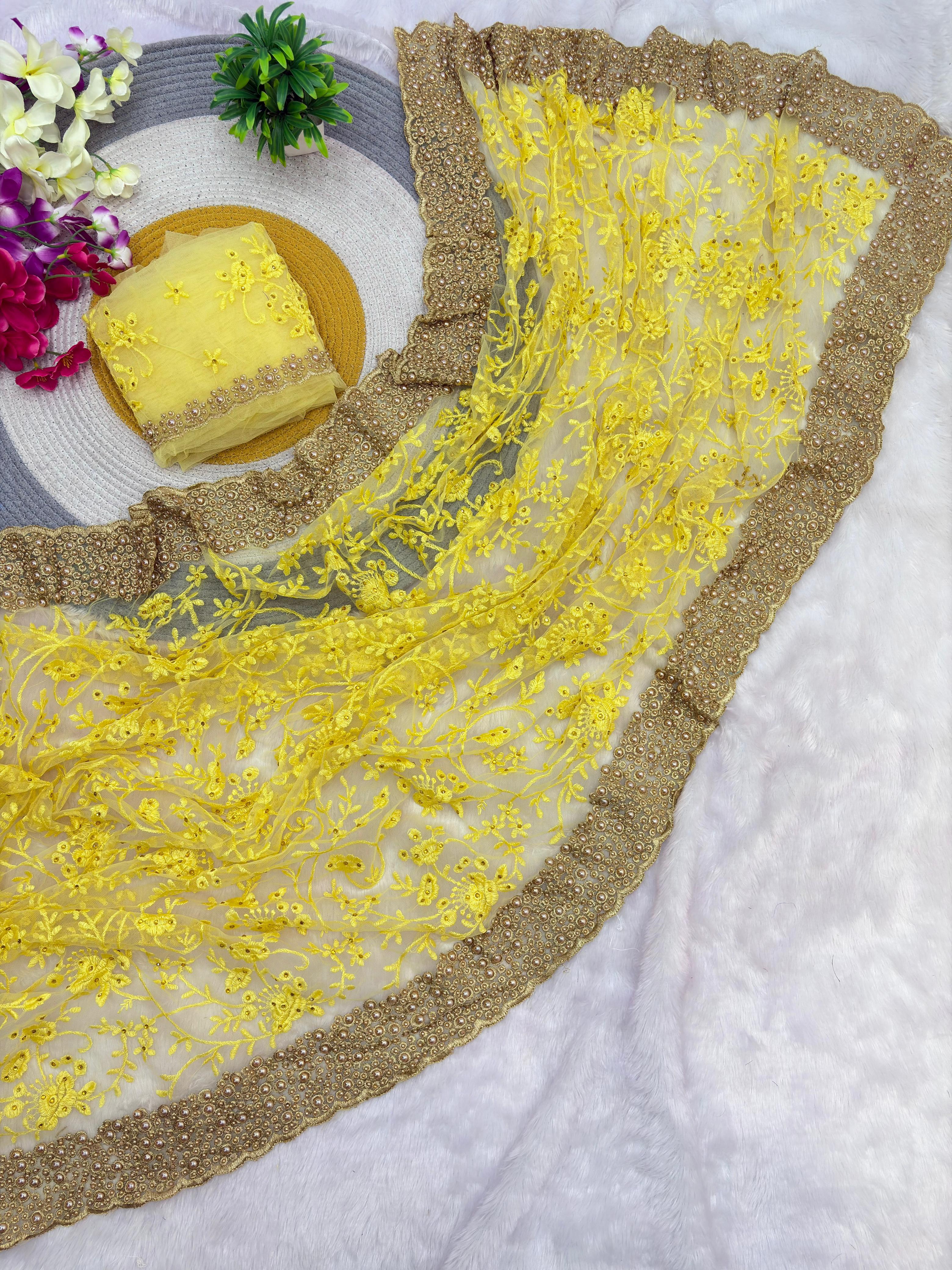 New Launching SUPER HIT Bollywood BlockBuster Sequins Design CODE-DF-3392 Fabric Details Full Saree Of Heavy quality 60 gram Georgette Heavy 3MM multy & Sequins Embroidery work in saree Blouse-Mono silk Fabric With Heavy embroidery multy & sequins front & back work Beautiful Embroidery 3MM...
