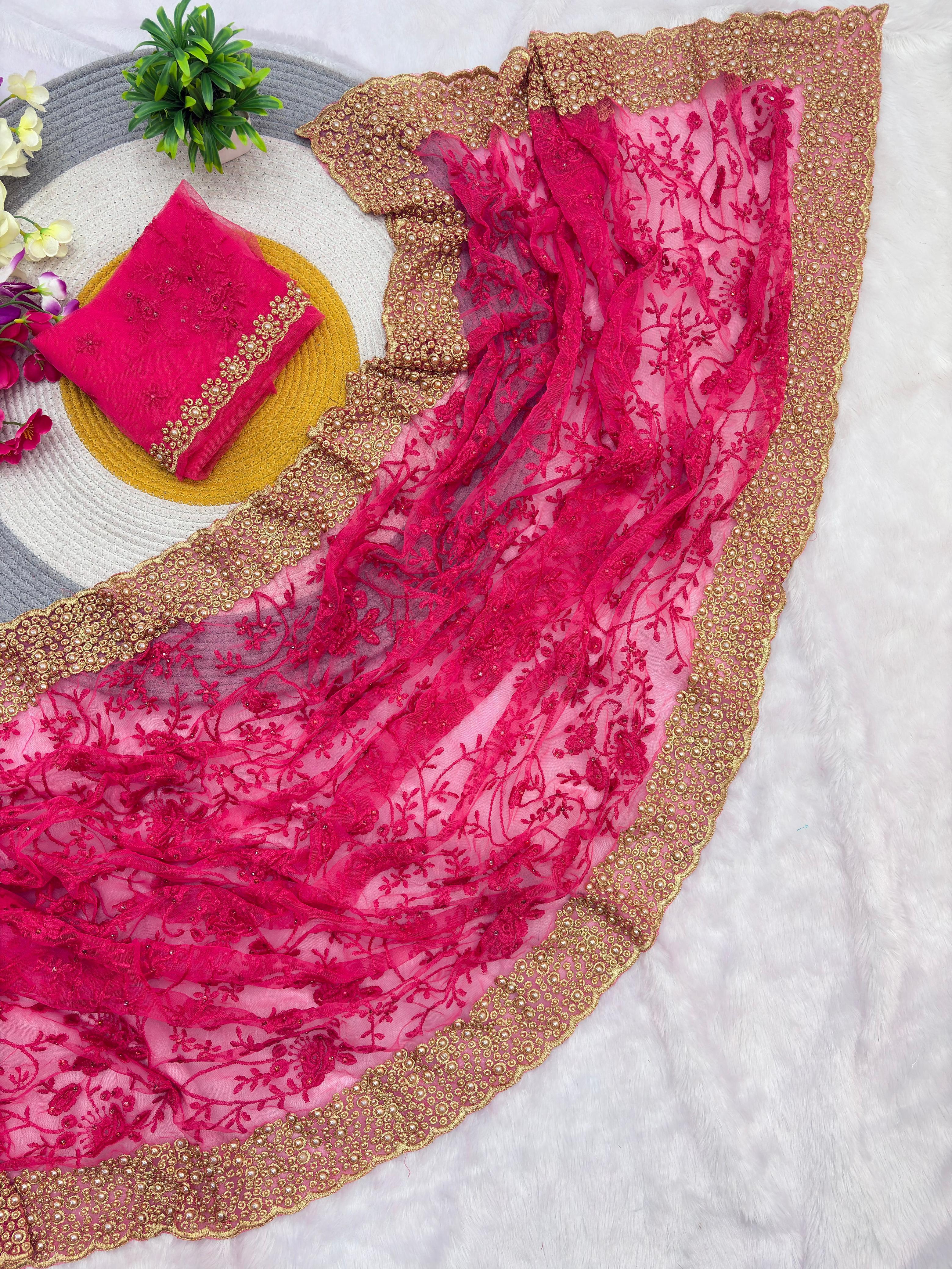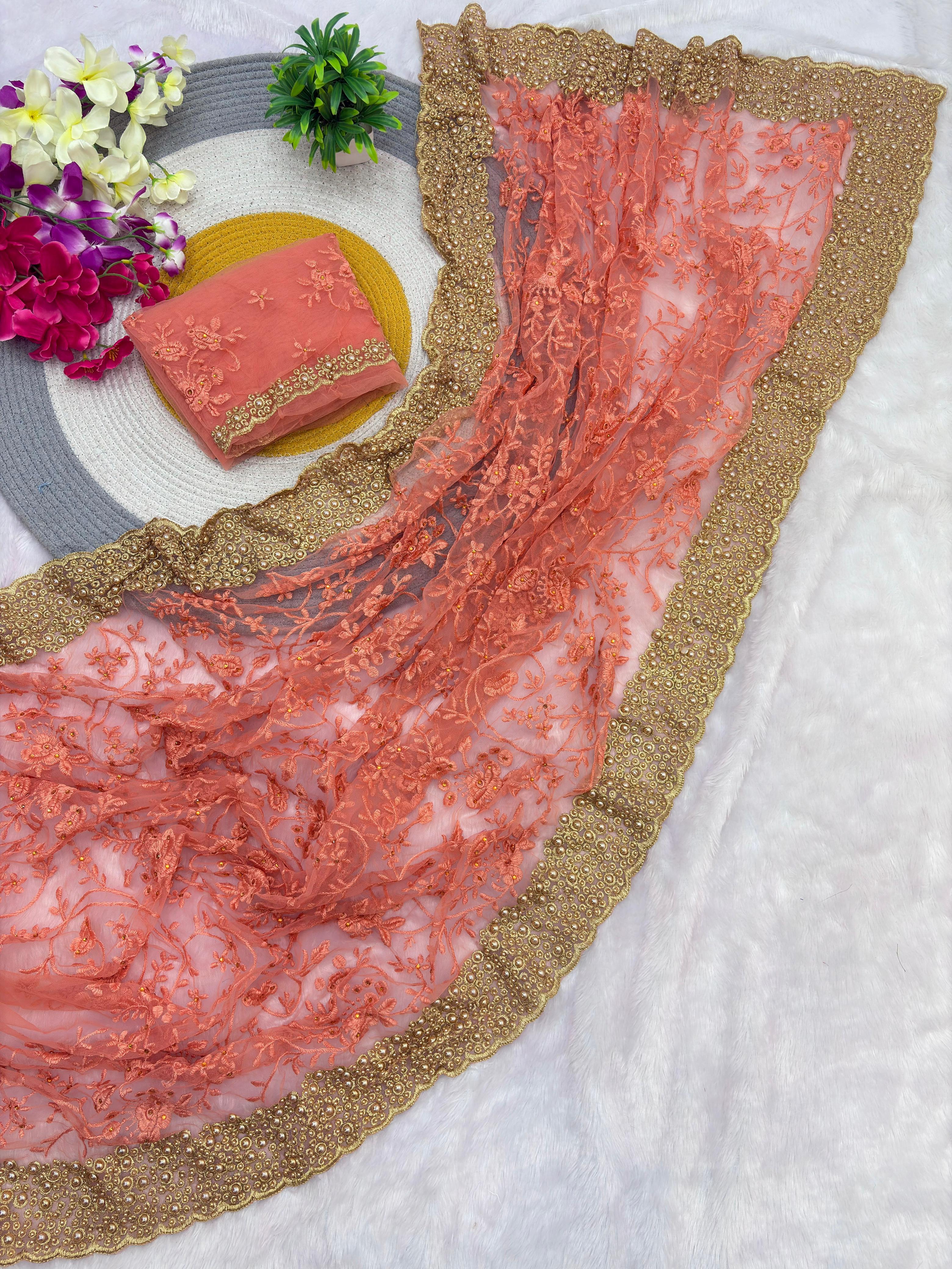 ☘️🛎️🛎️ NEW Launching 🛎️🍀🔖 Catalogue : SC - 1270🧝🥻 Sari Fabric: Premium Georgette With Embroidery Codding & Sequins Work With Piping Border🧷 Blouse : Mono Banglory Silk Unstiched Blause📌 Single Pcs available✏️ We believe in Quality & Fashion🛒 READY IN STOCK 🛒When I Make...