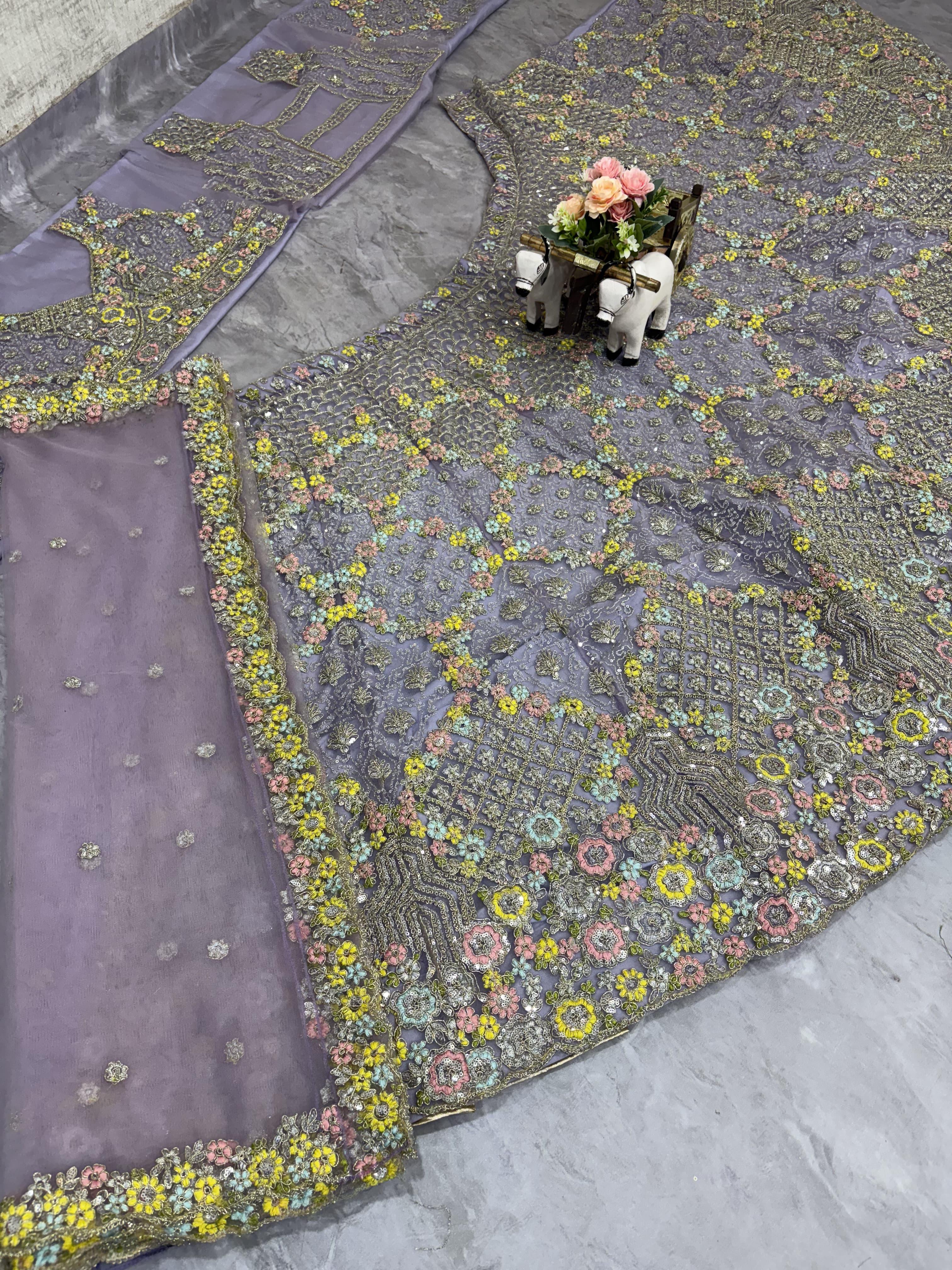 👉 Lehenga work-Embroidery  Sequins Work With Cancan & Canvas Patta