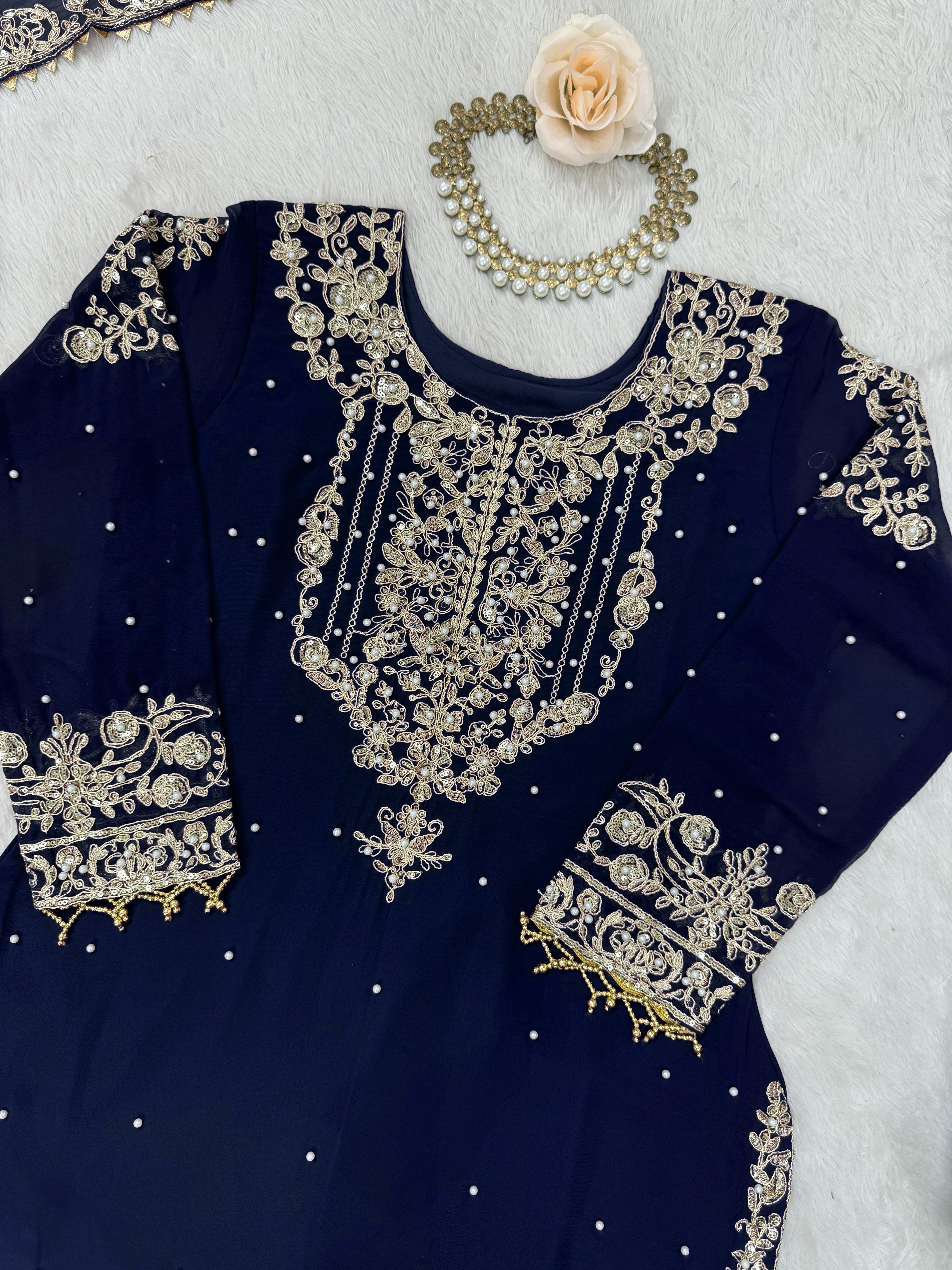 • Work: Cording Dori with Sequin & Thread Embroidery With Peal work