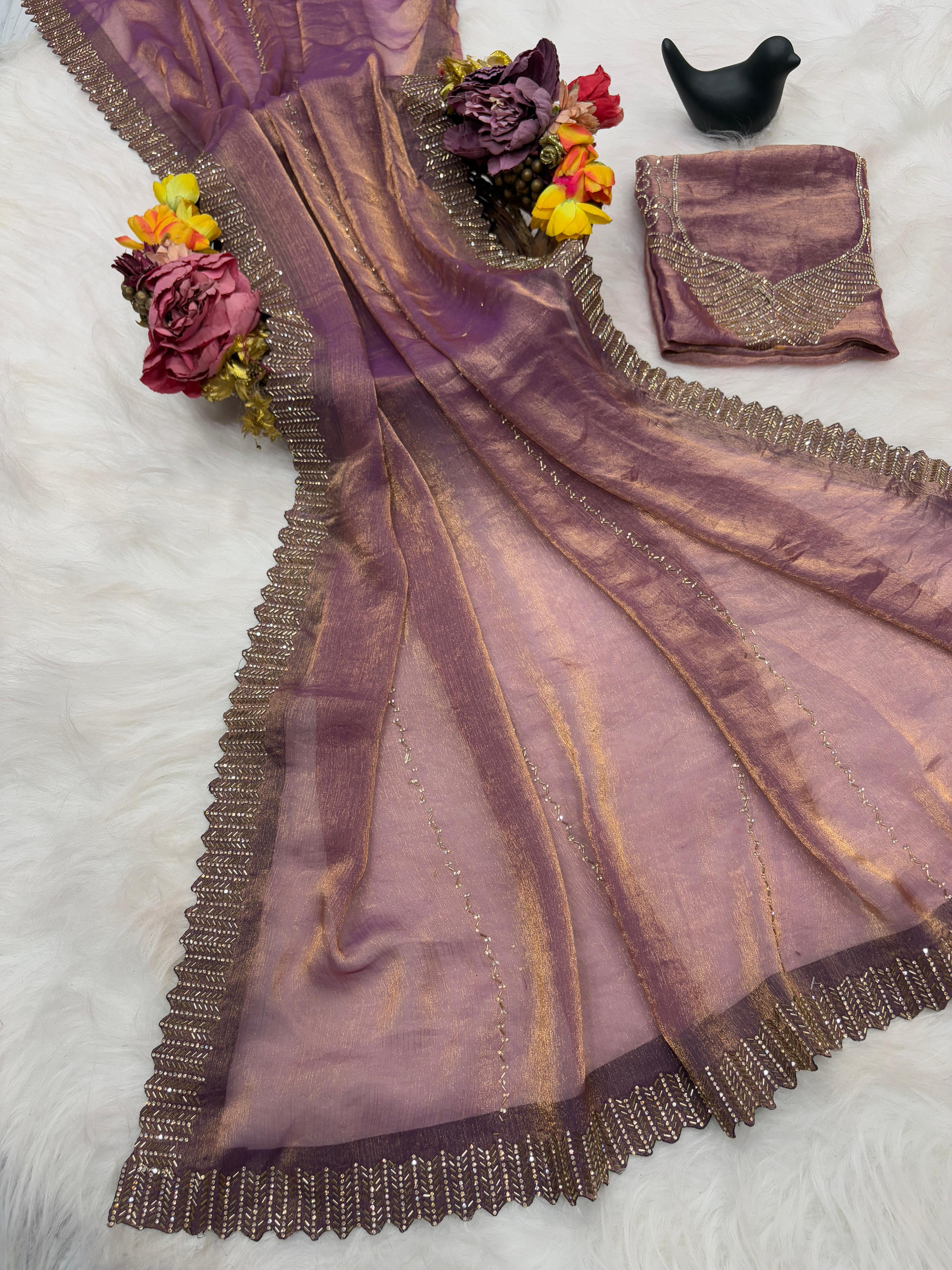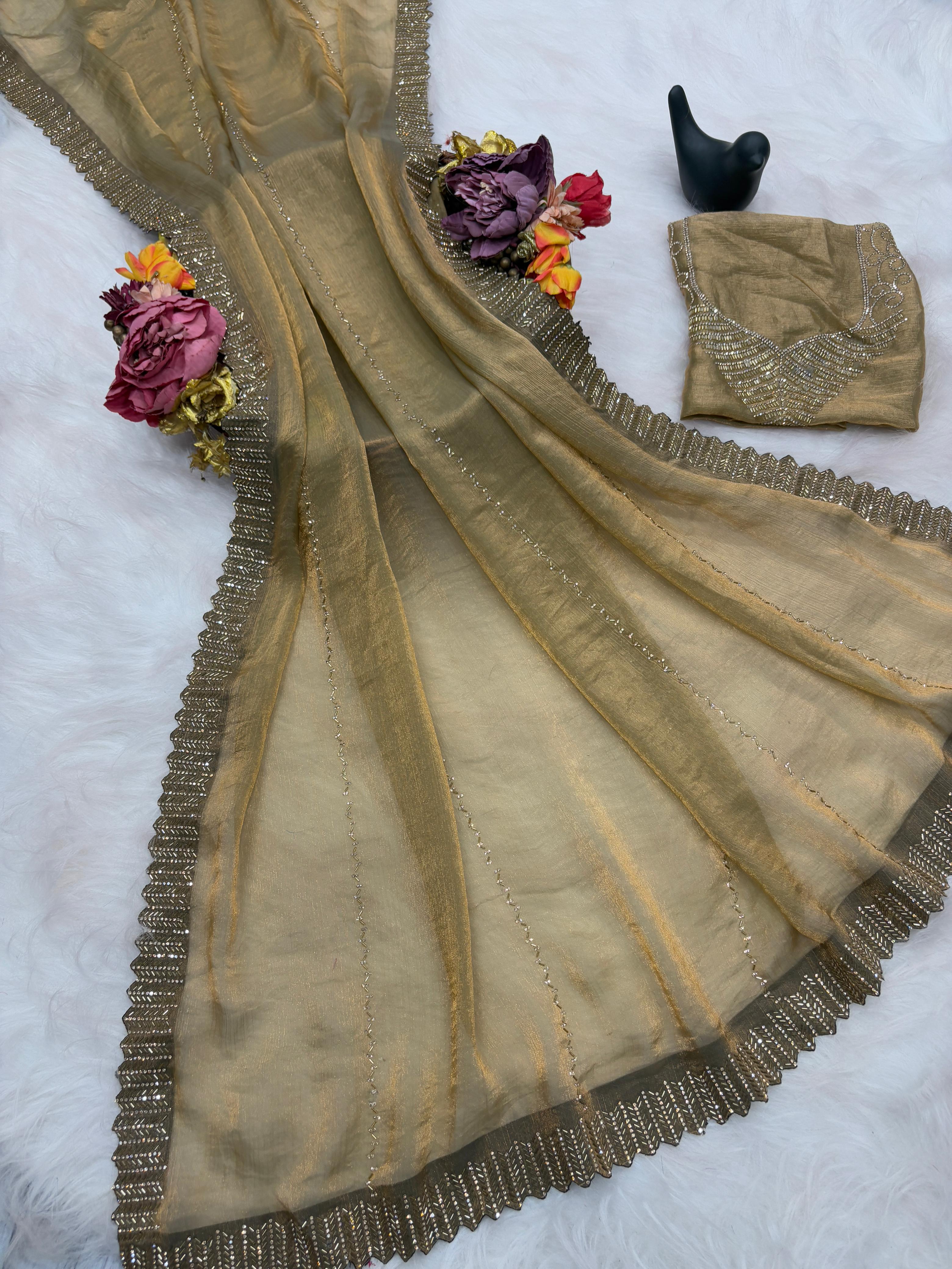 ⭕ WORK : Original Jarkhan Diamond work in saree