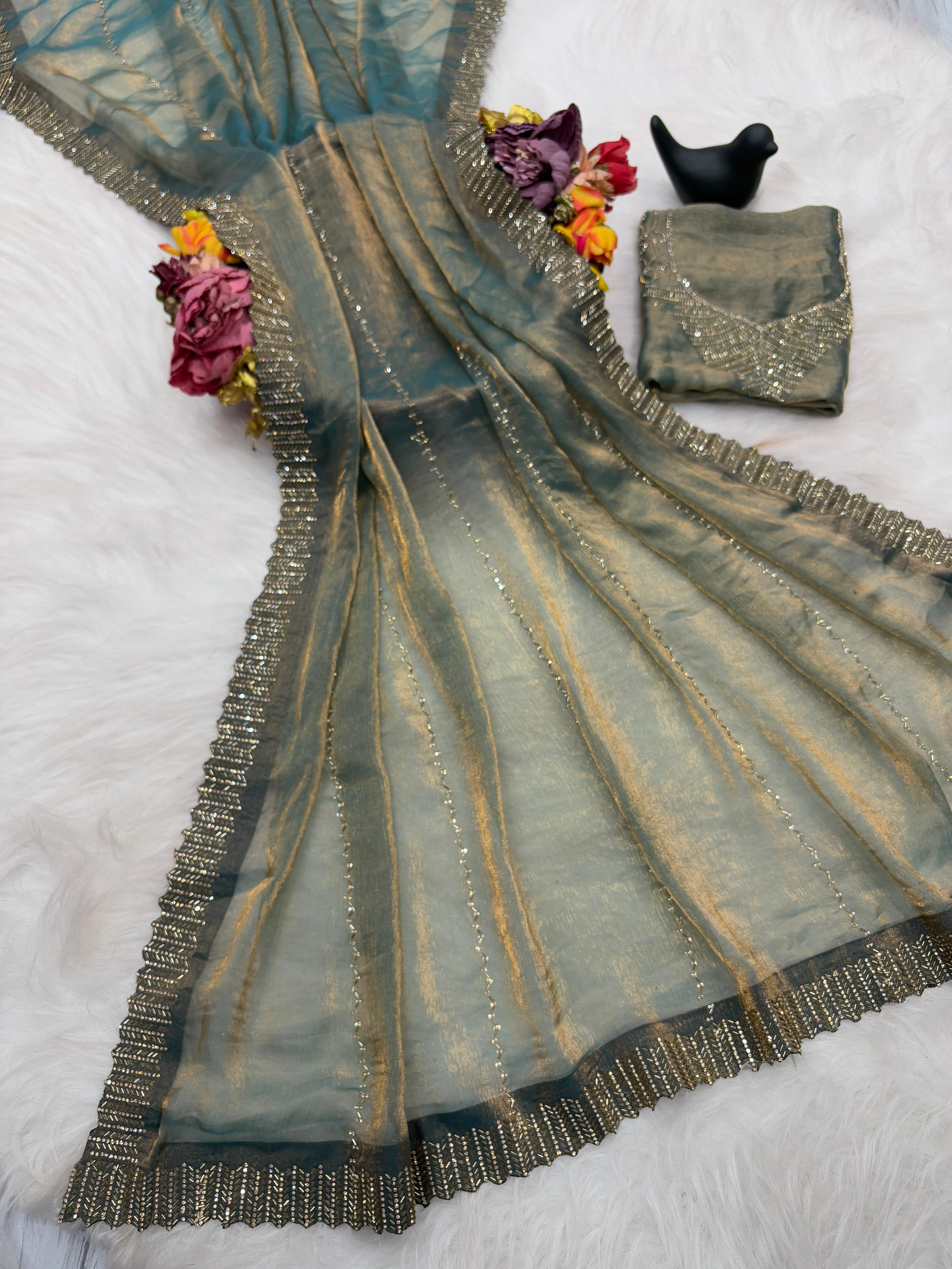 😍Flawless for any sangeet or cocktail party, this designer saree will elevate your style quotient.