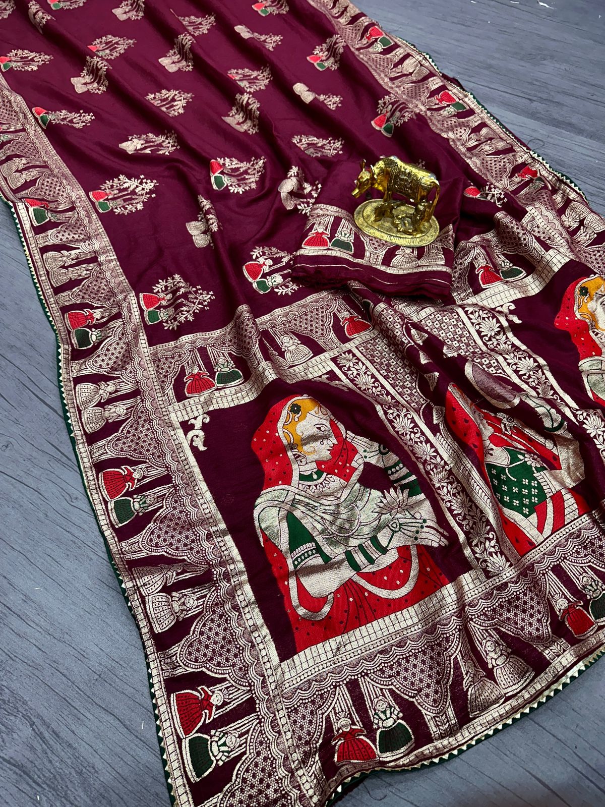 Saree :~ Pure Dola silk with Zari weaving Saree with samosa lace border