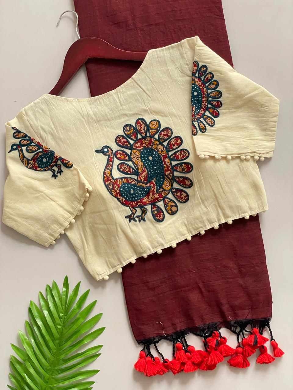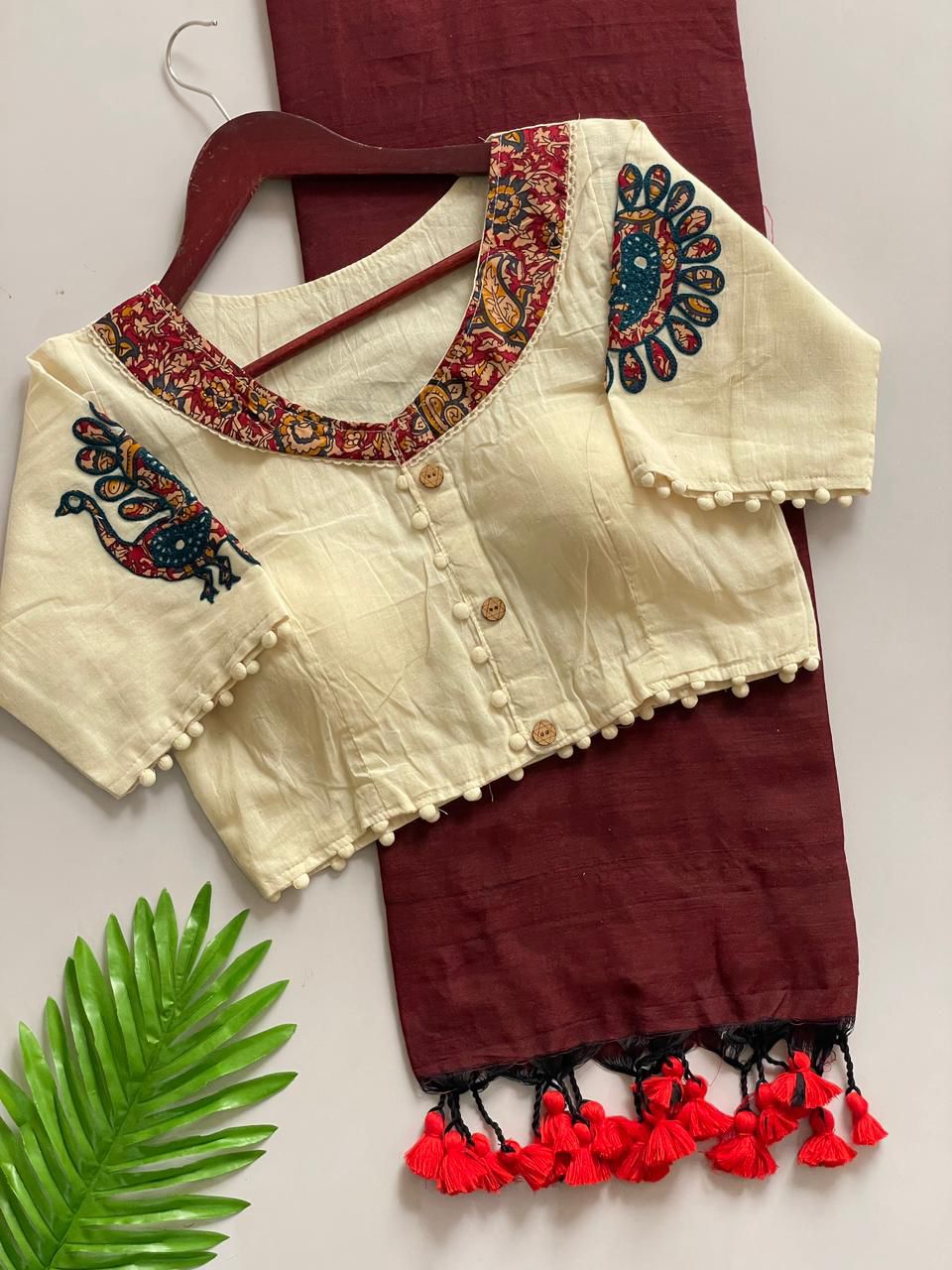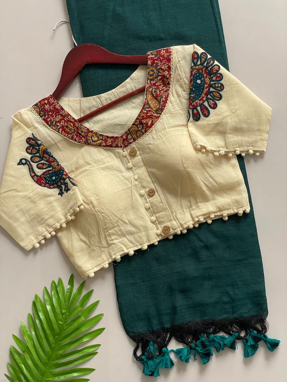 😎 Blouse :- Pure Khadi Cotton with Apllic Work (size 38 alterable upto 40)