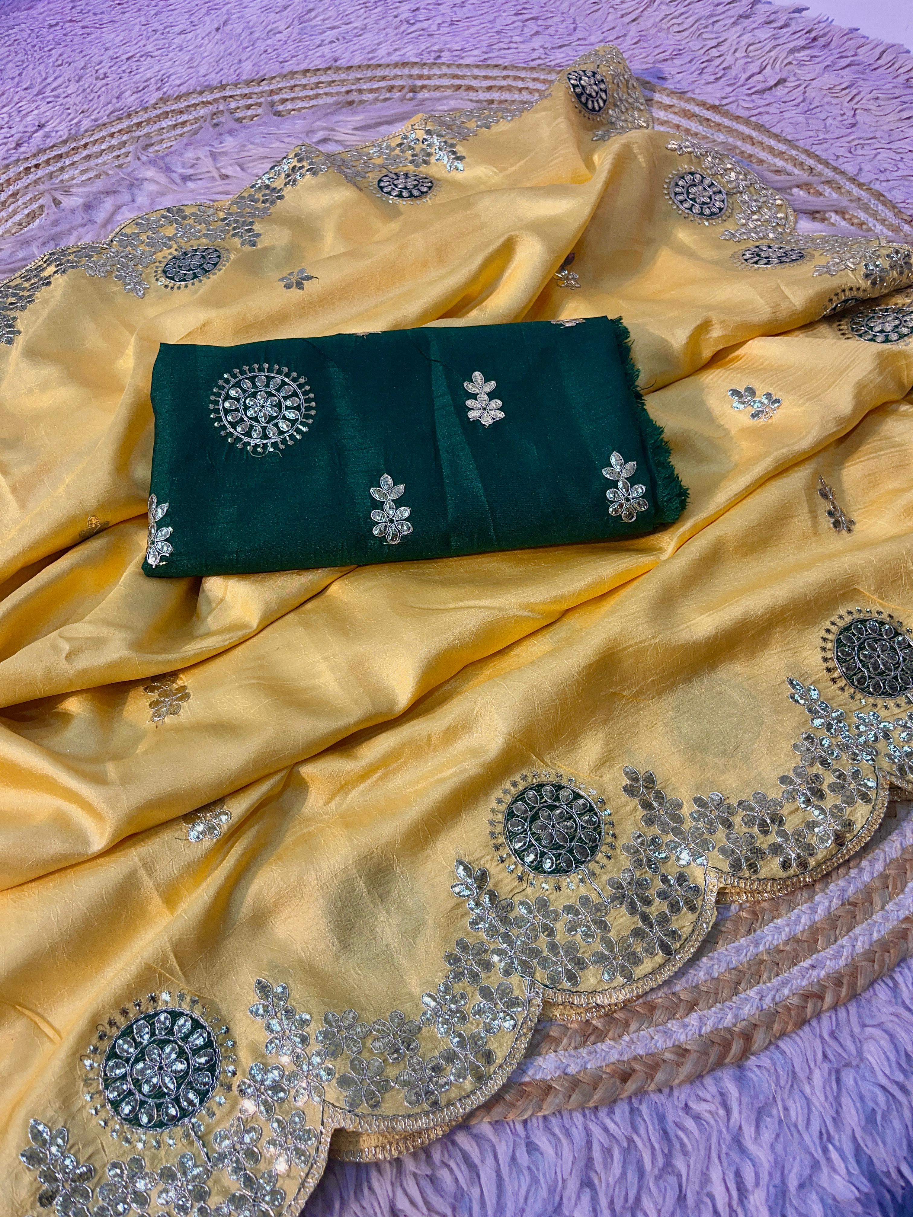 Work :- heavy c-pallu gotapatti foil work + multi butta in whole saree with rich look cut work border 👌