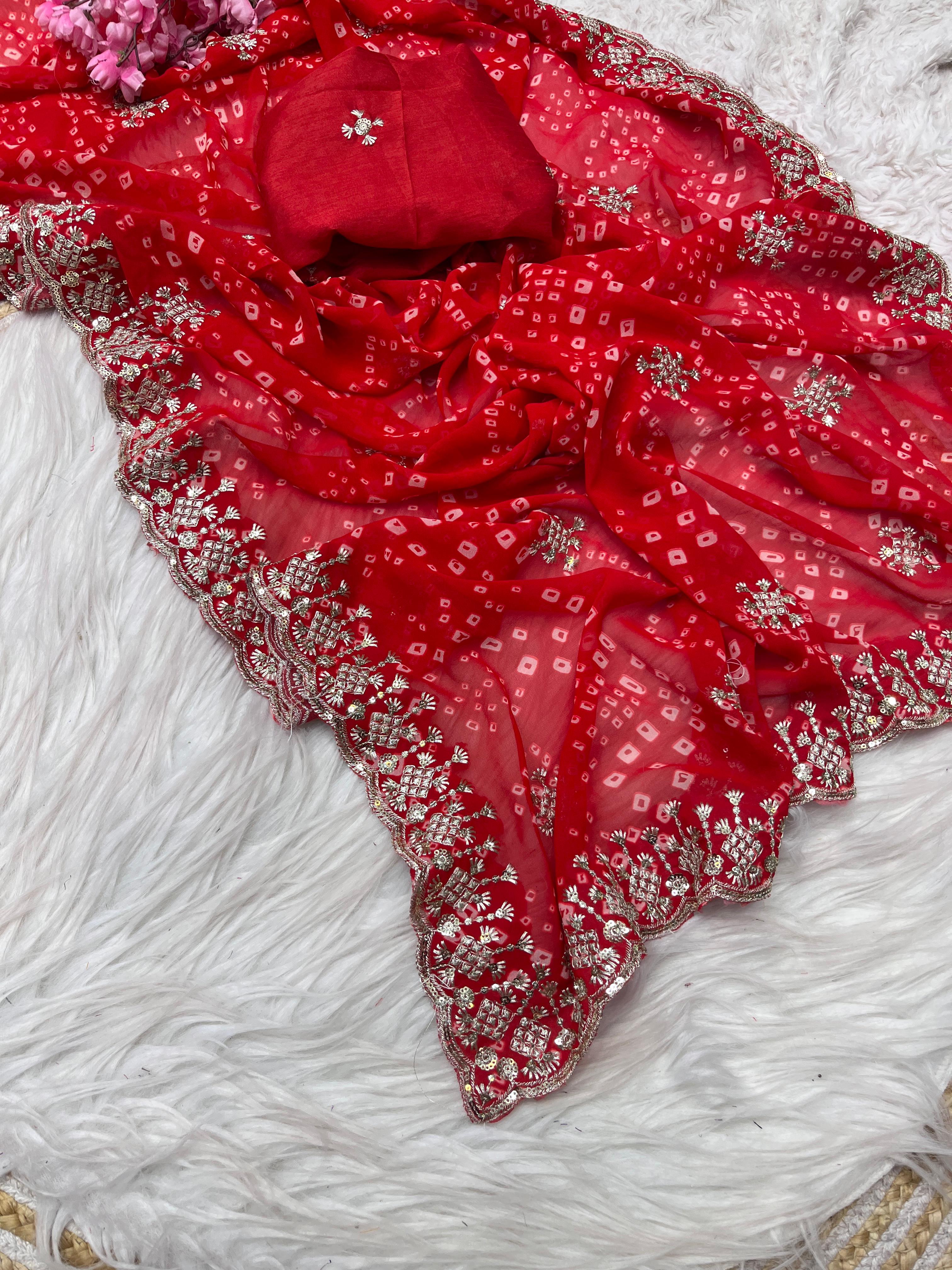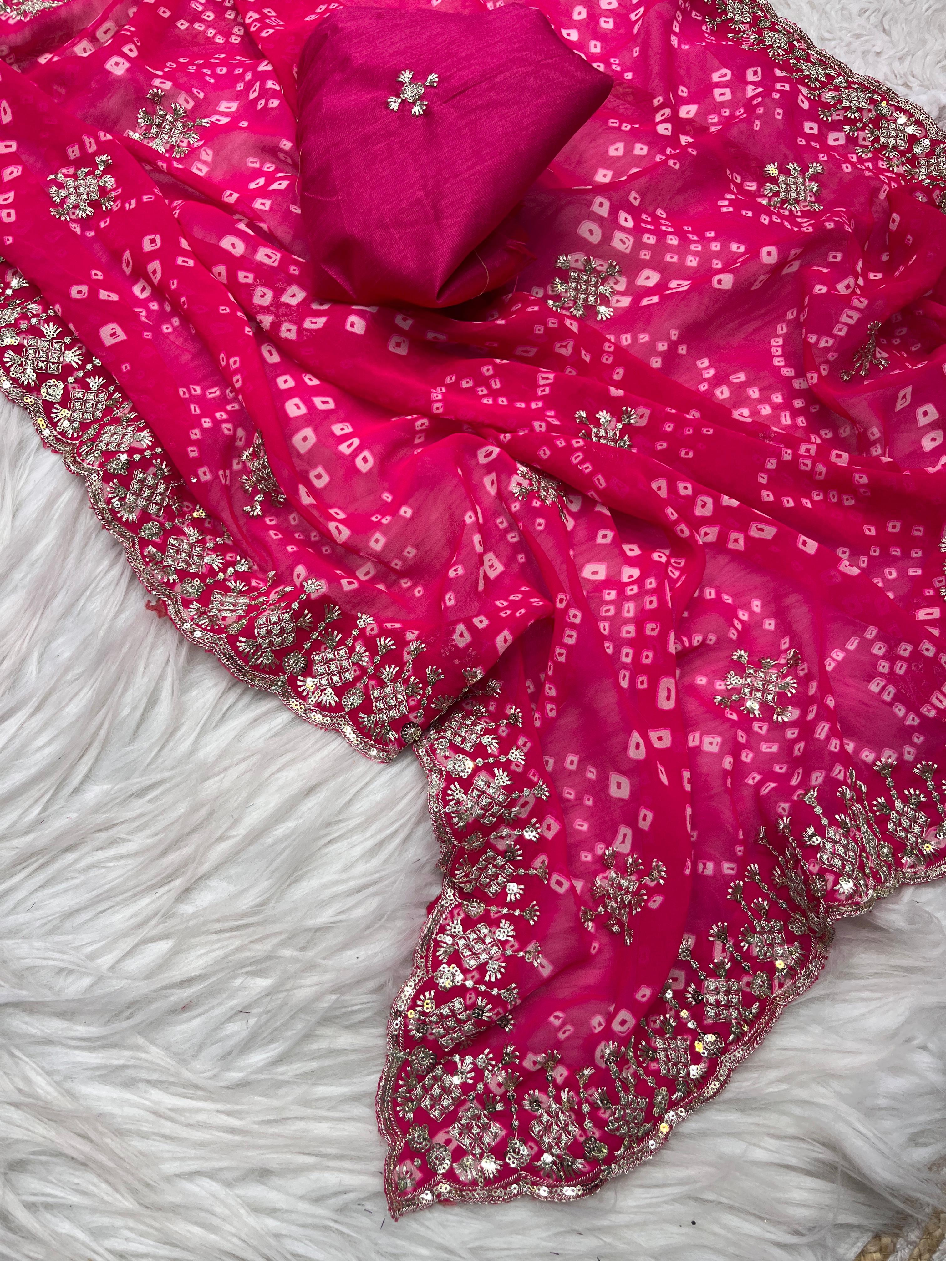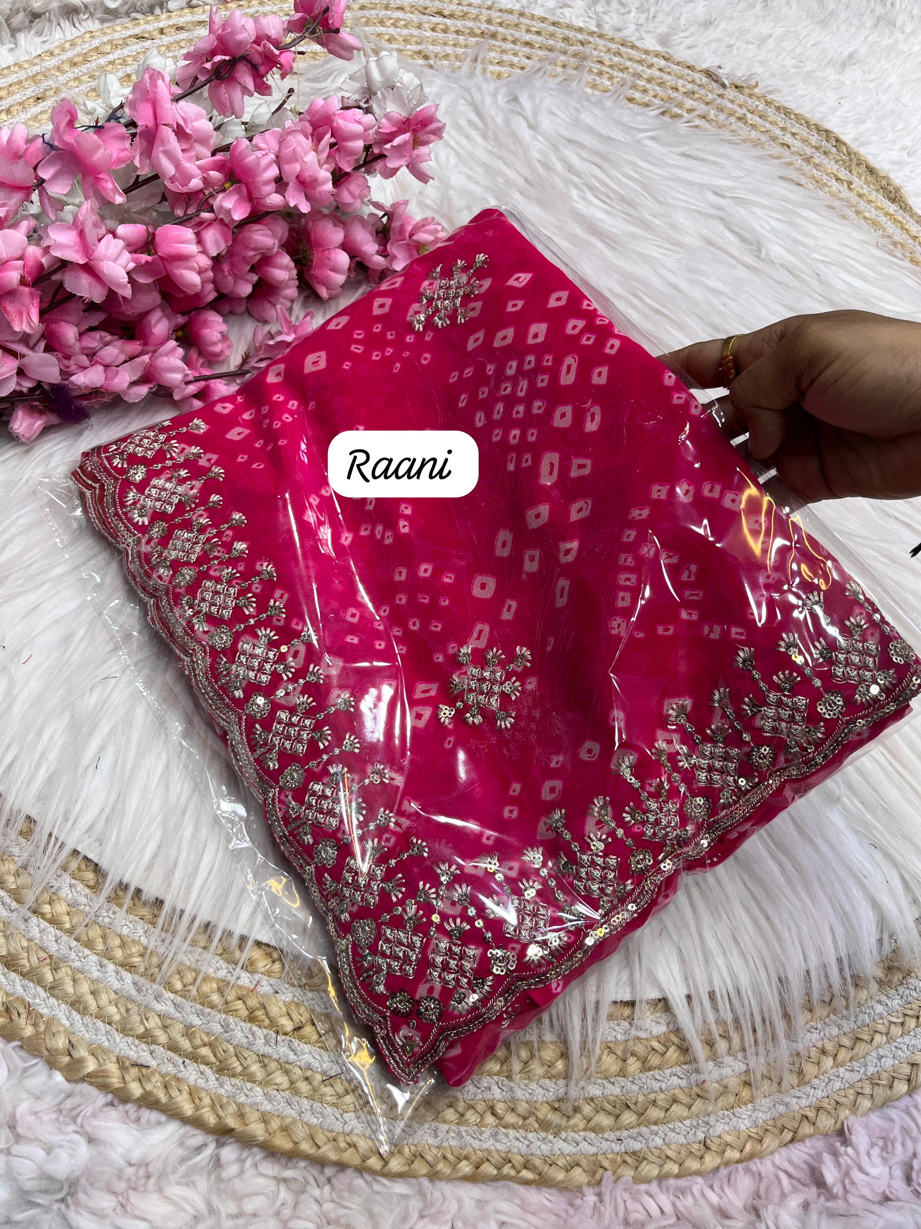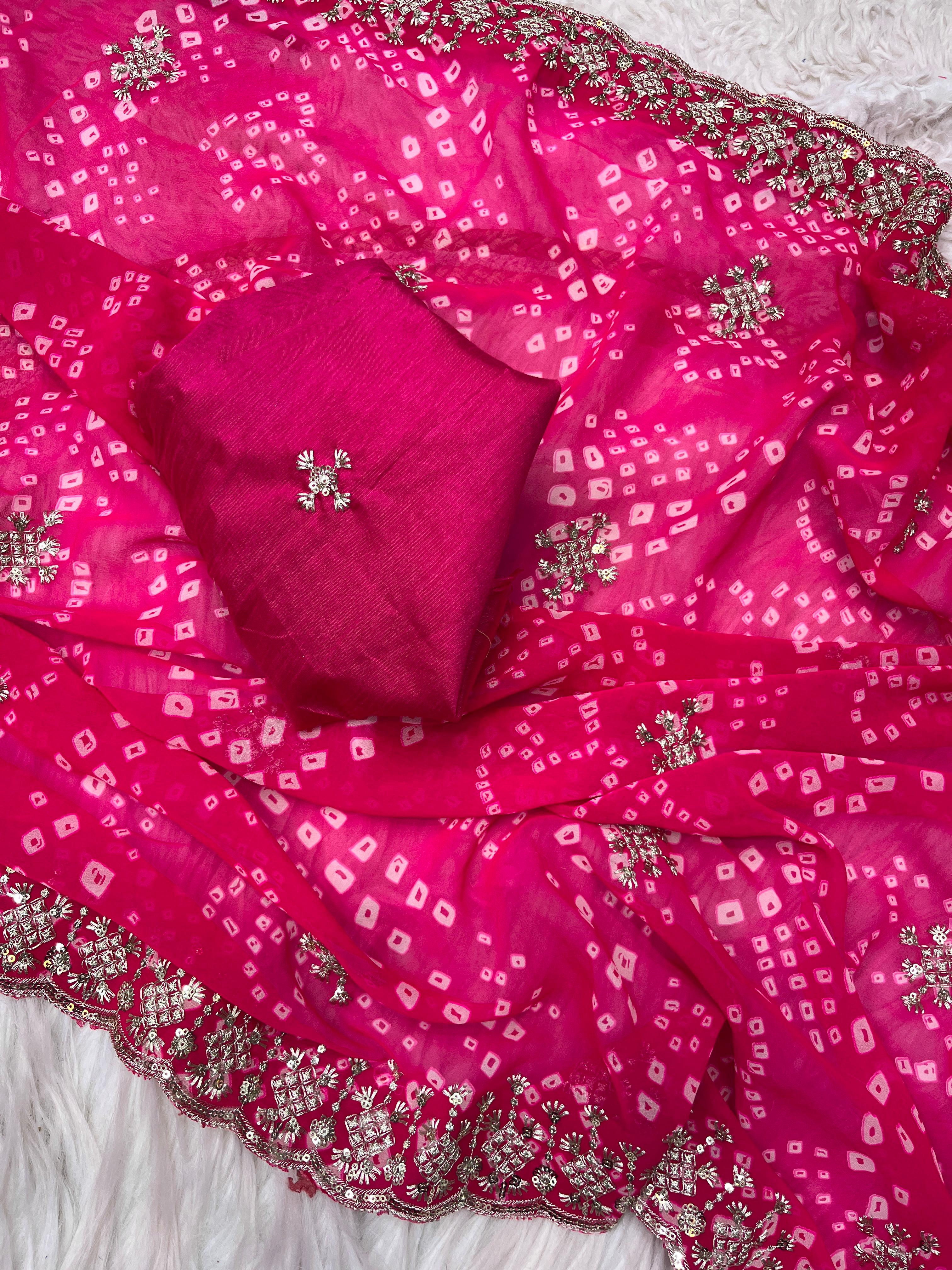 Details :- soft c*c Georgette bandej saree with beautiful c-pallu sequence thread work & butti in whole saree
