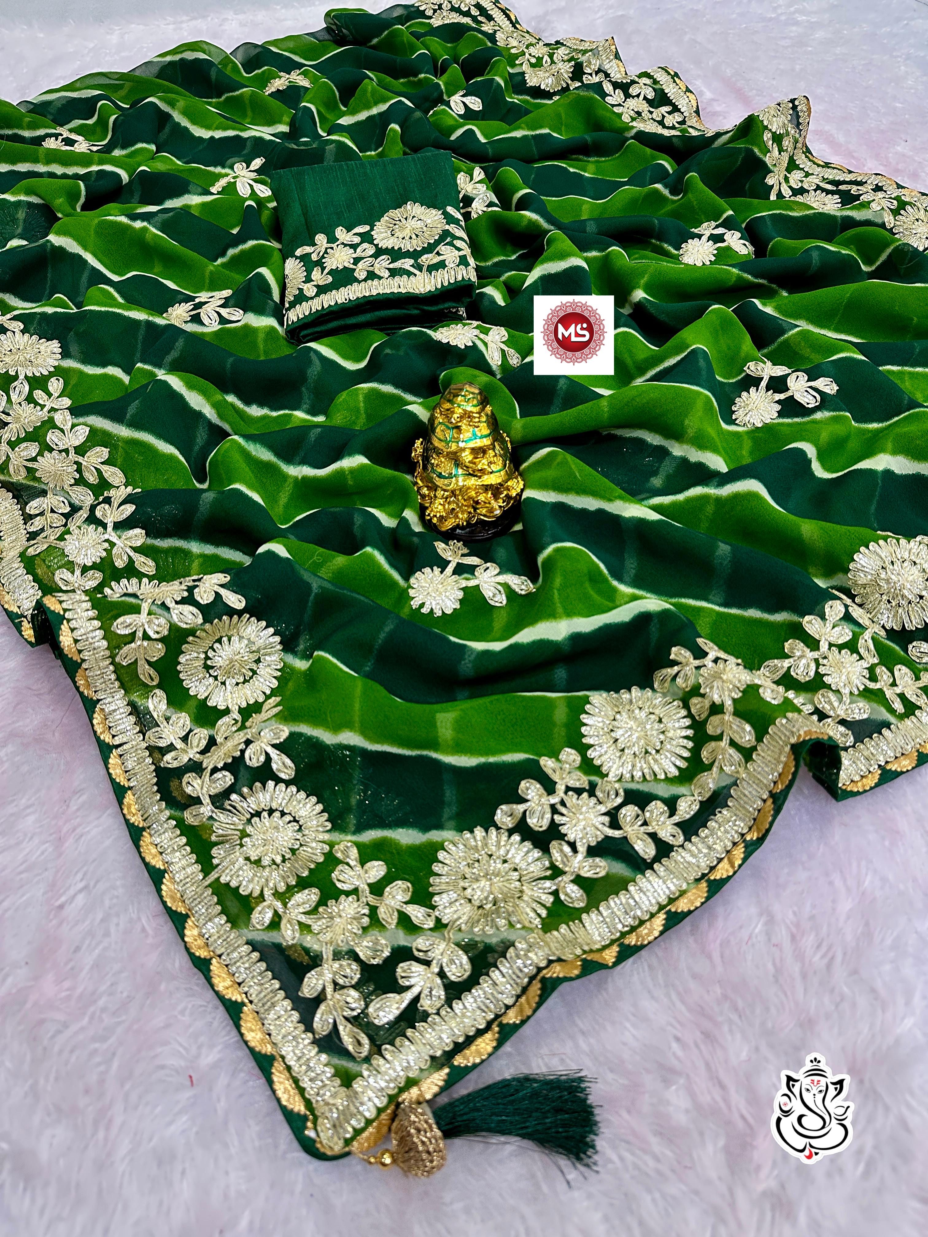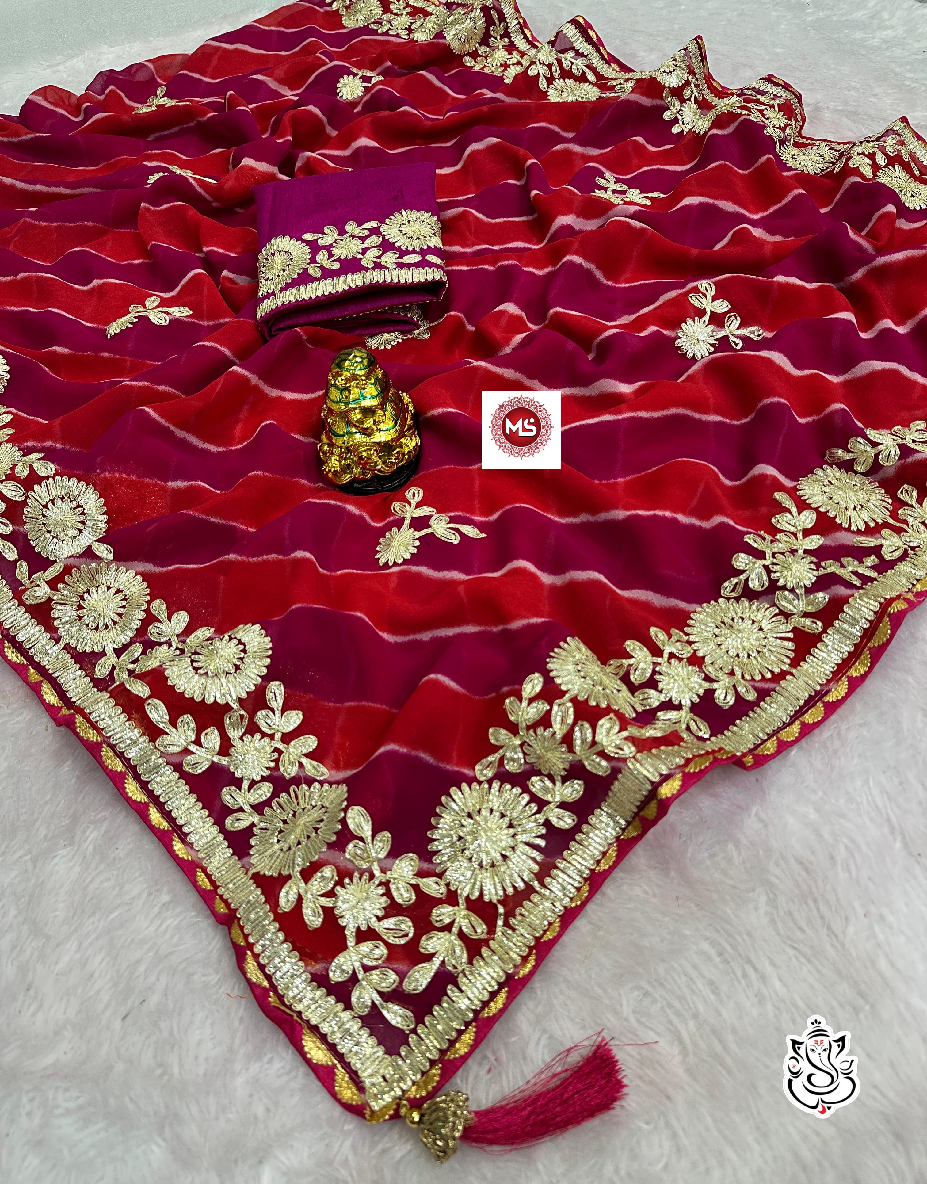 Fabric & details :- beautiful soft georgette lehriya multi saree with heavy c Pallu ribbon gota work nd butti in whole saree