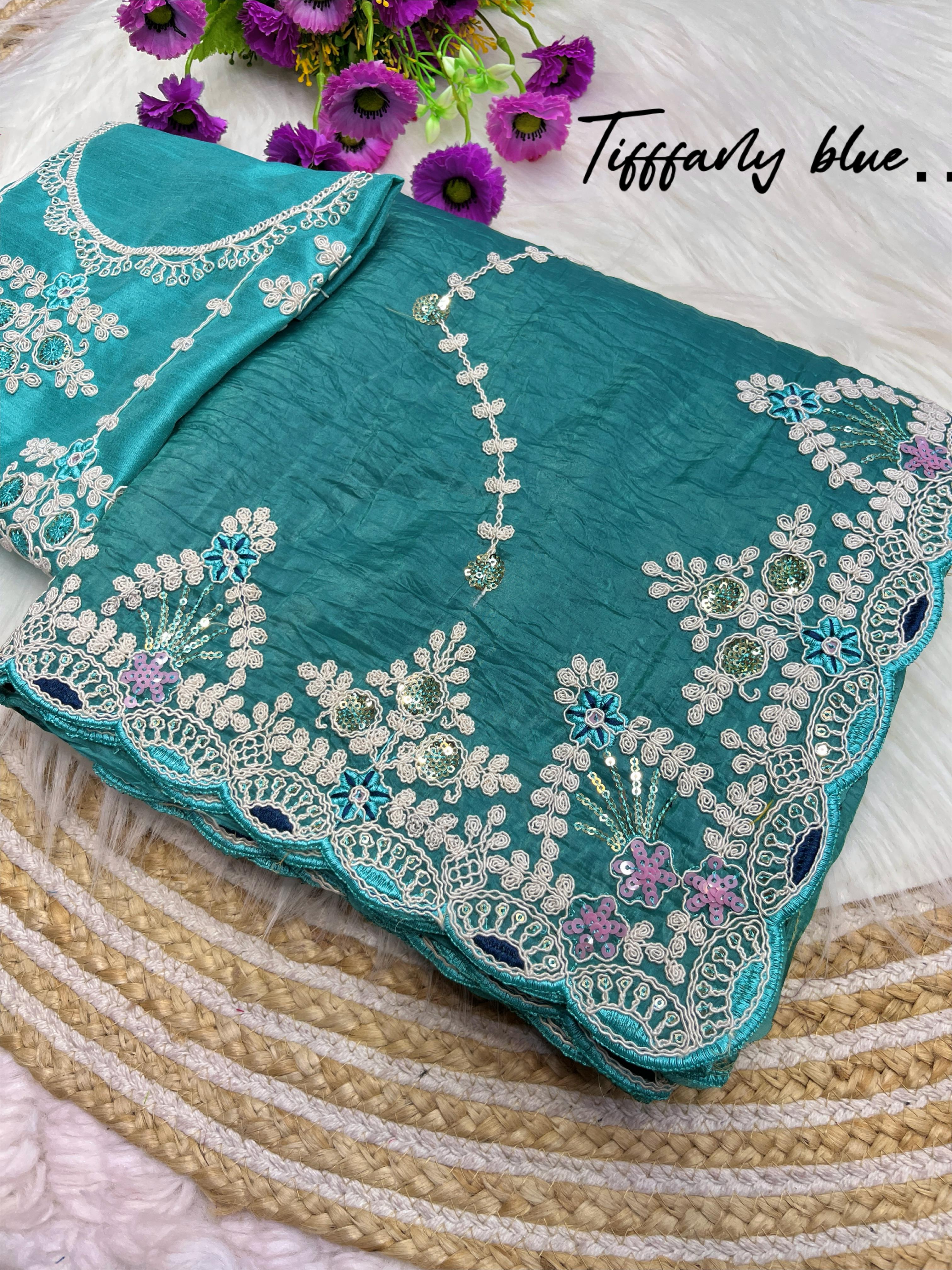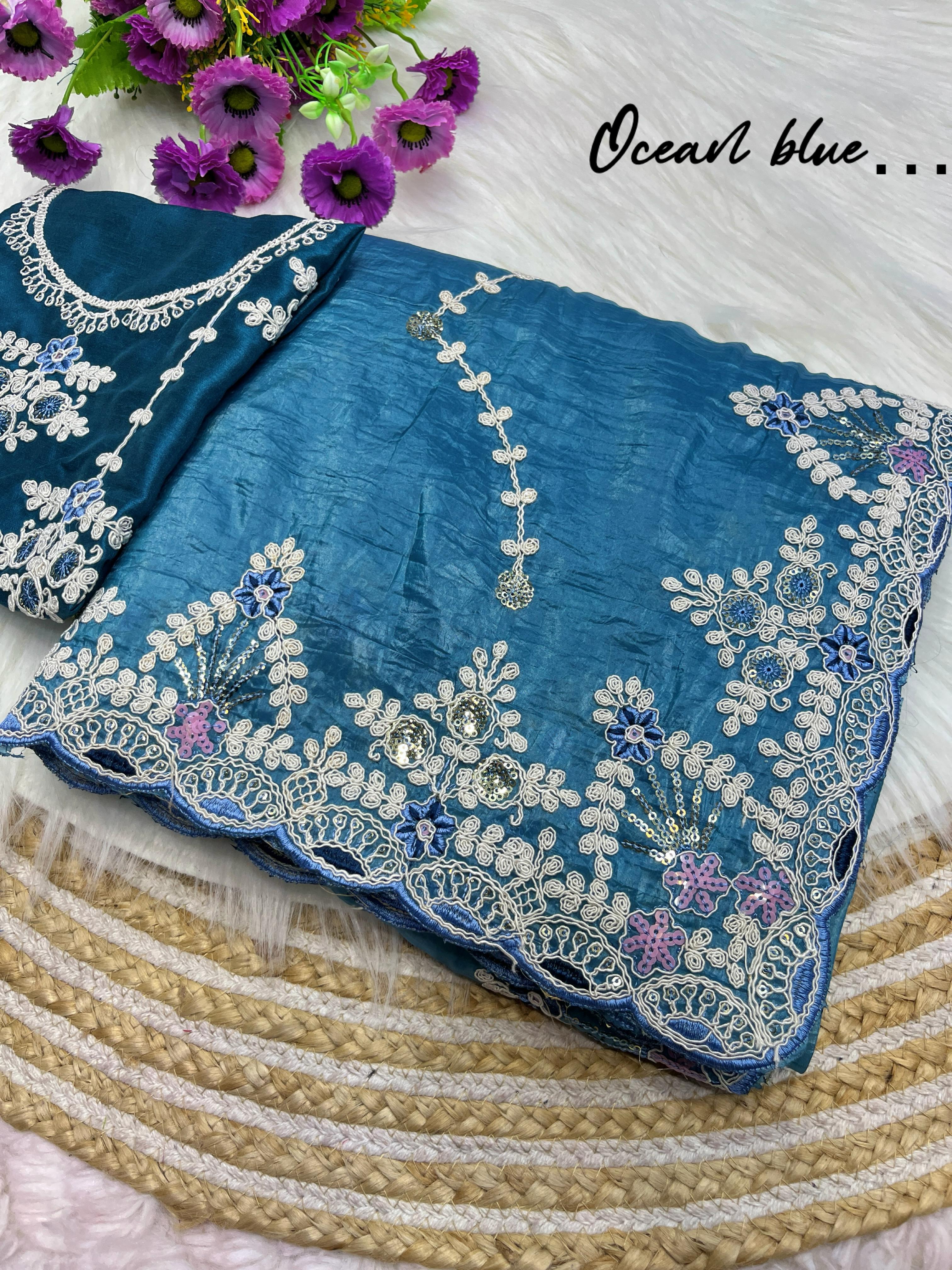 Fabric & details :- beautiful soft gold crush saree with heavy c-pallu pittacoding work with 2 mm + 5mm sequence work along with multi thread work & whole saree zaal work