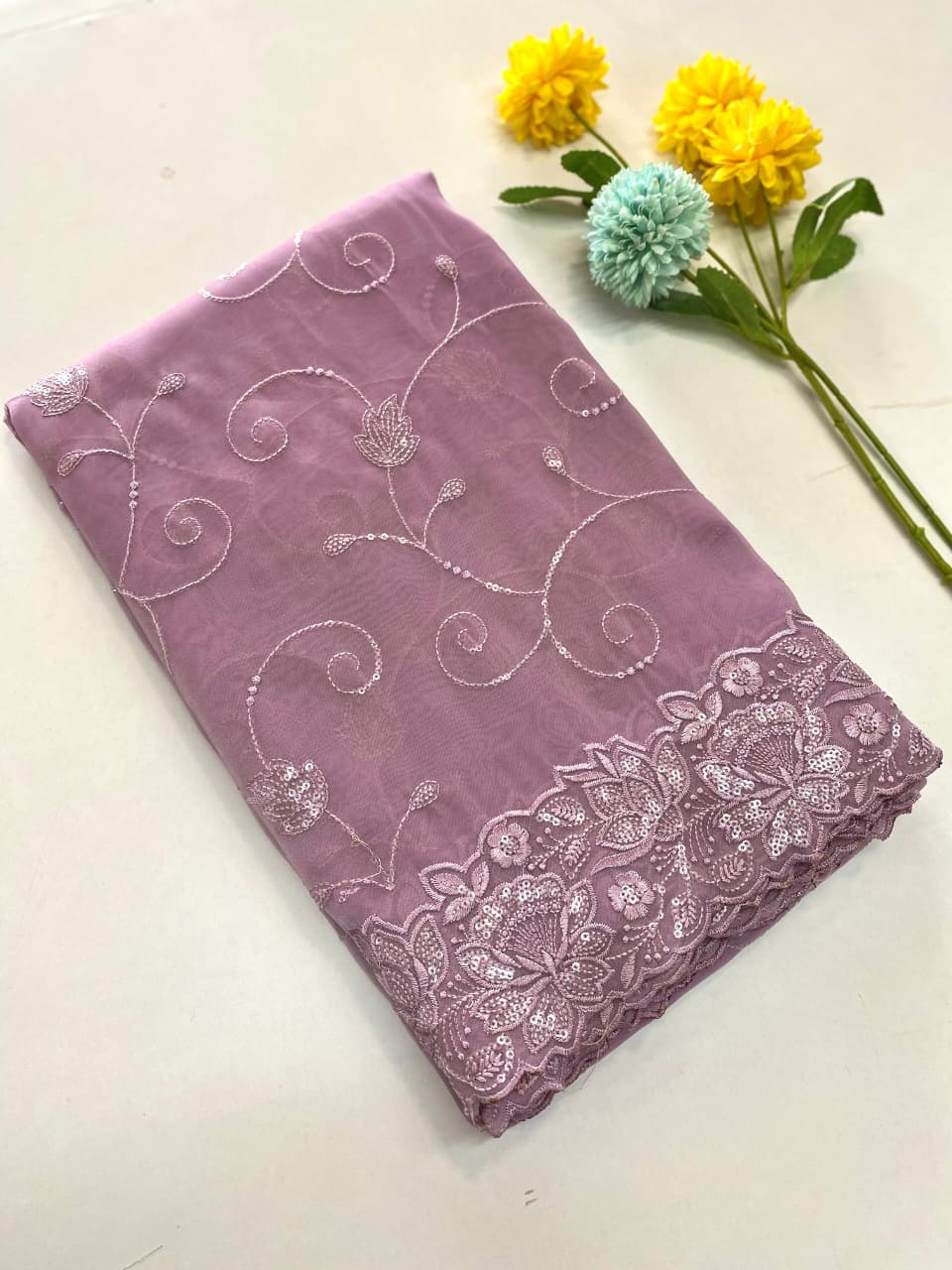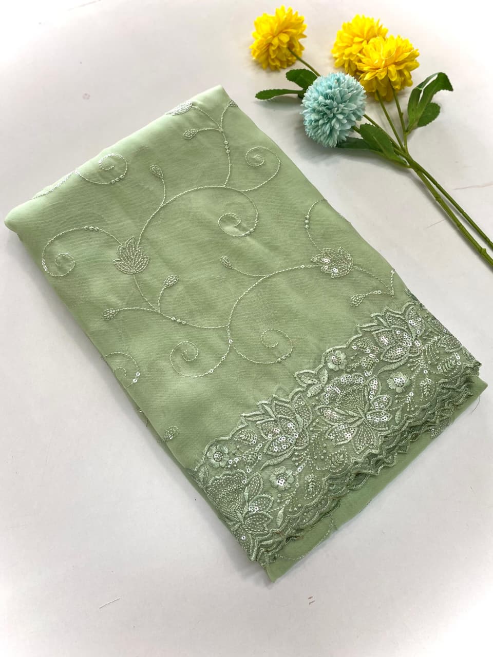 Description - soft organza chex weaves silk sarees with super fine embroidered pattern with cutwork, beautiful sequins work all over the saree.