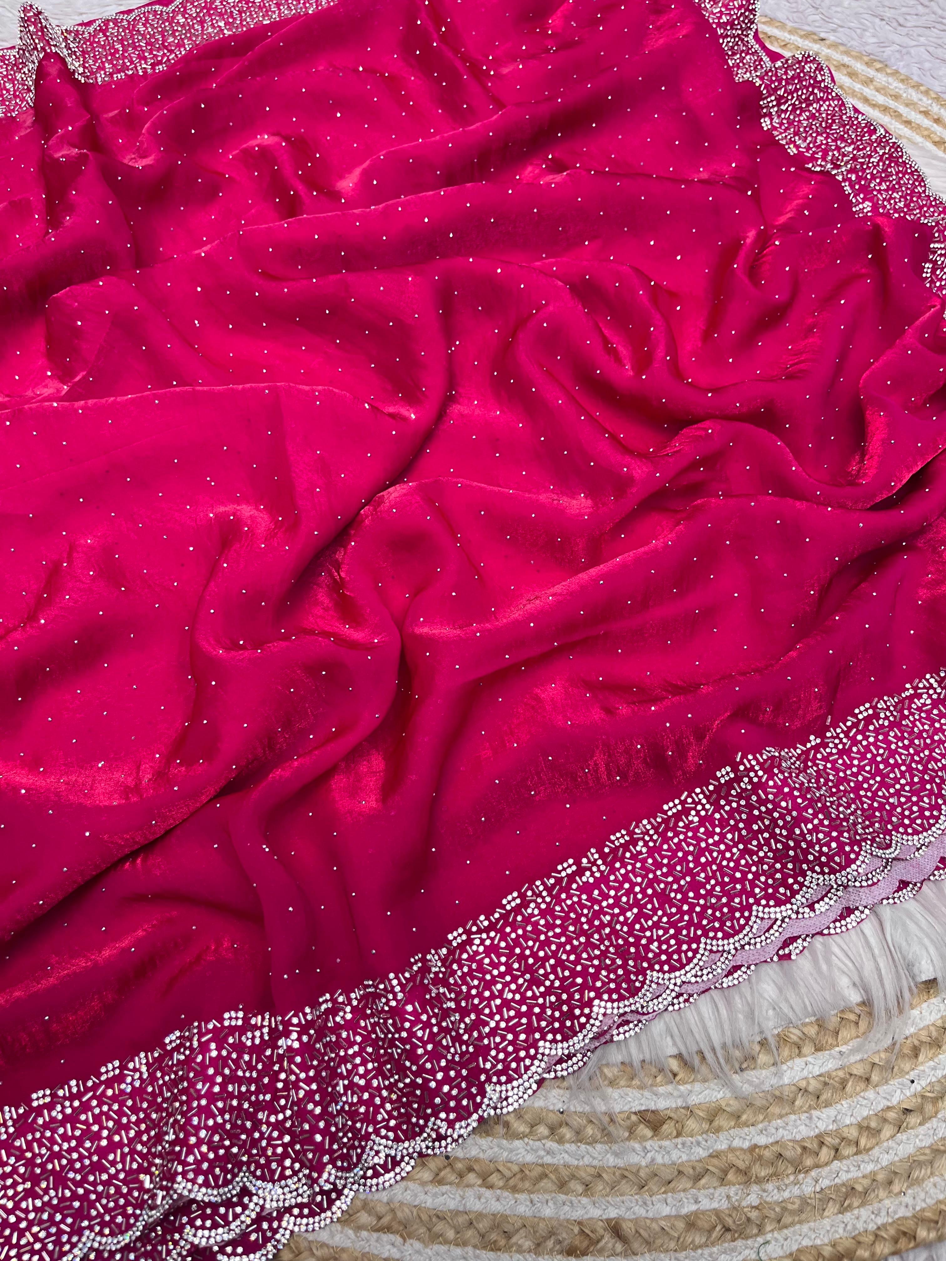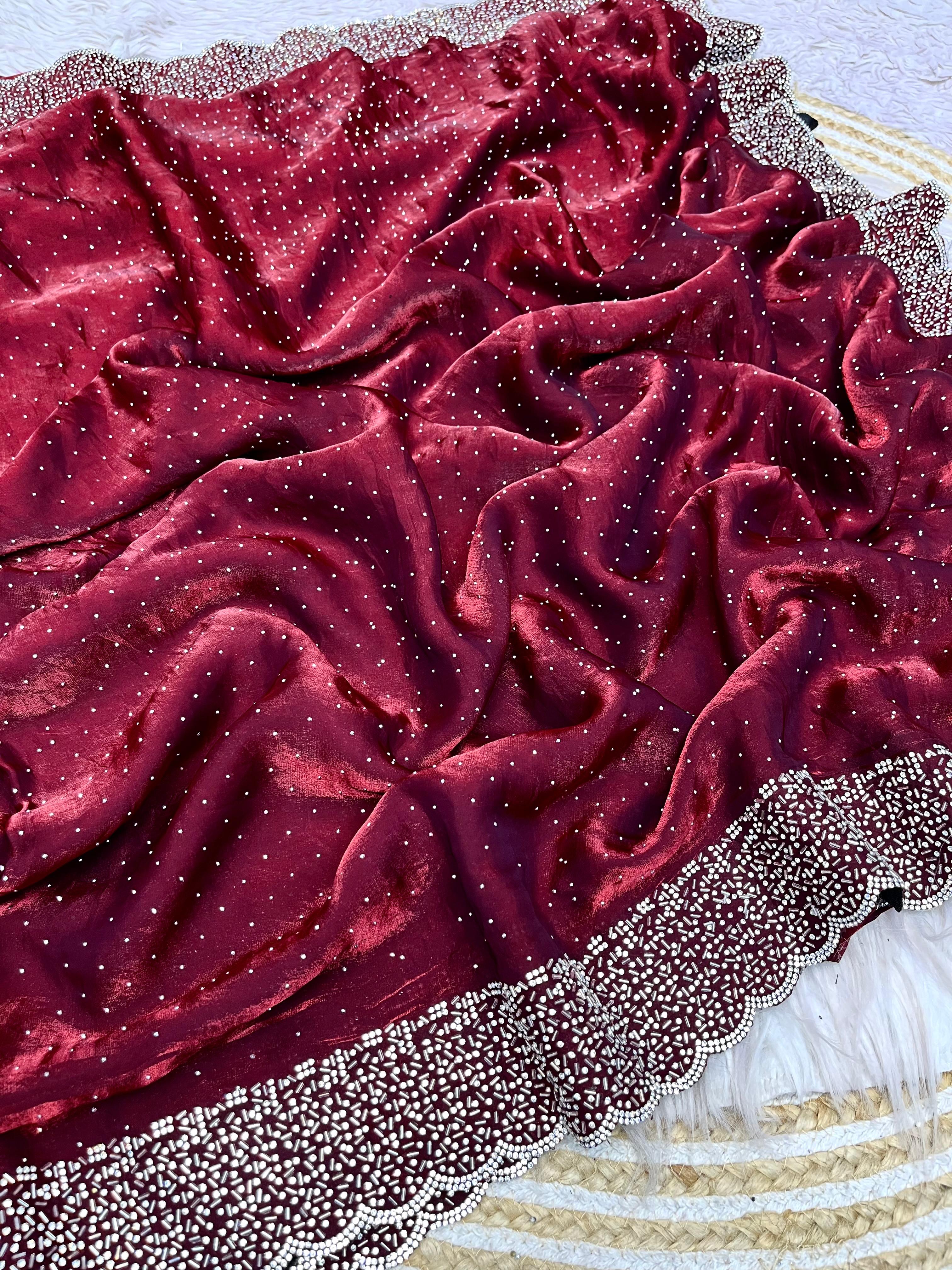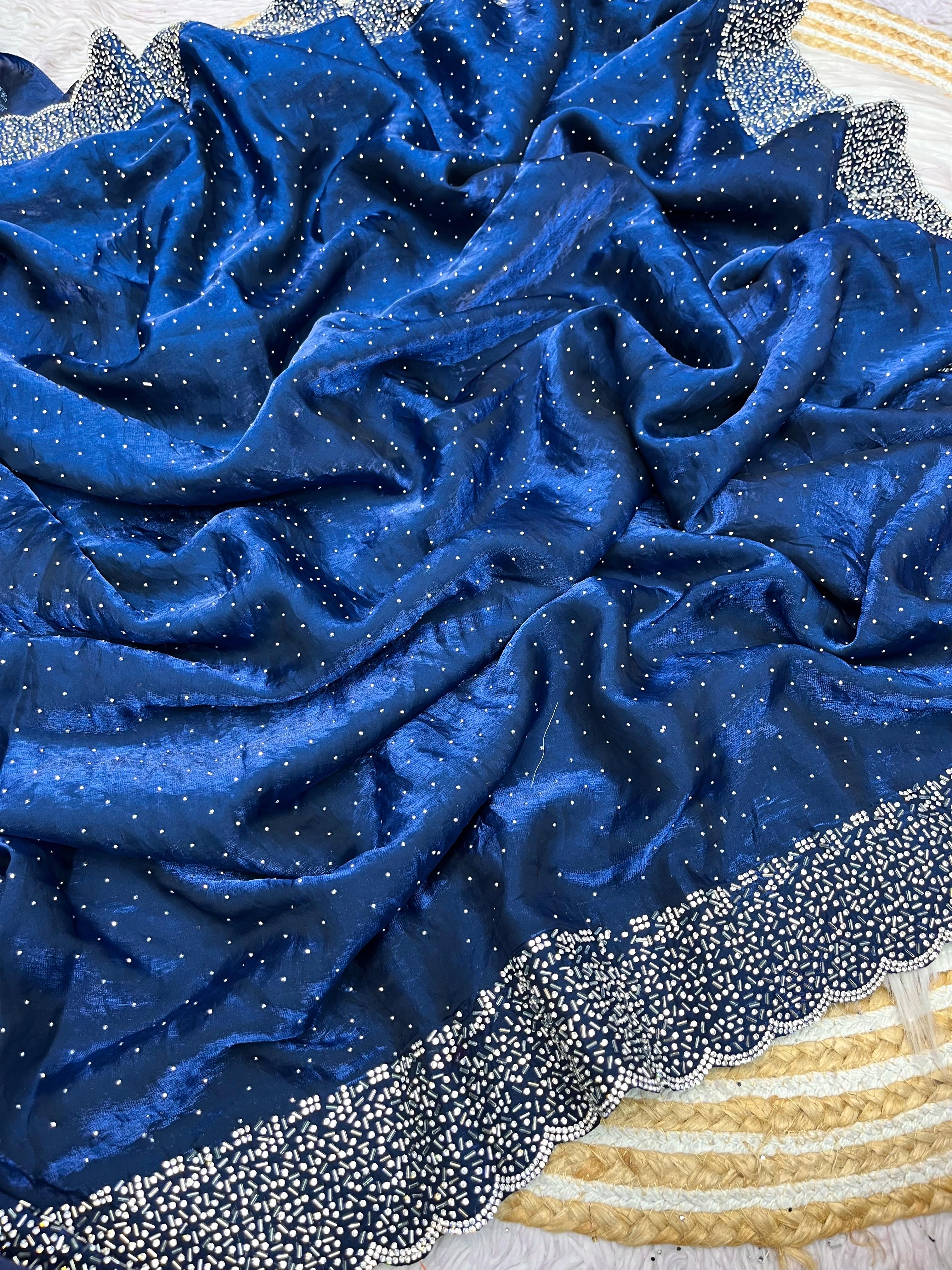 Space soft Silk Blooming With Beautiful jarkhan Work With Siroski Work*