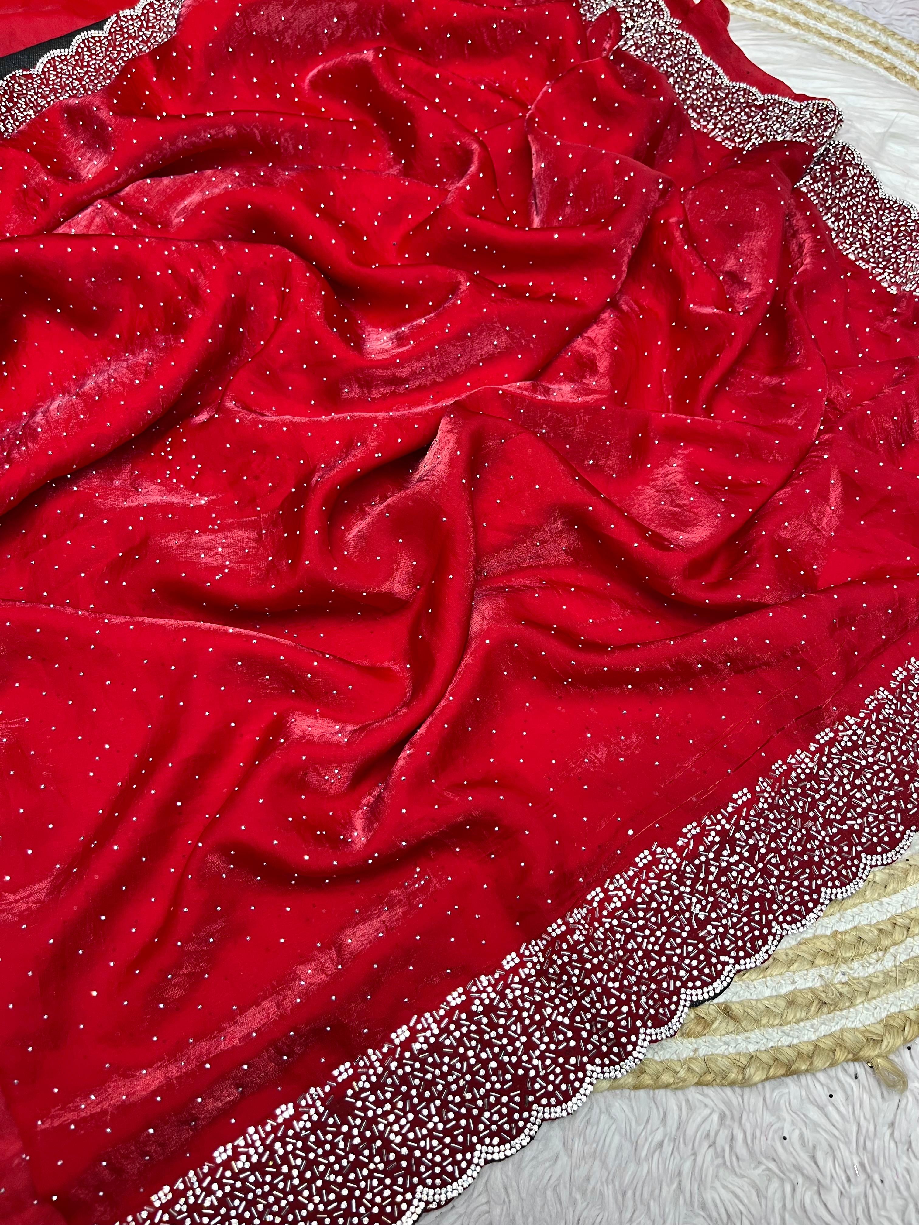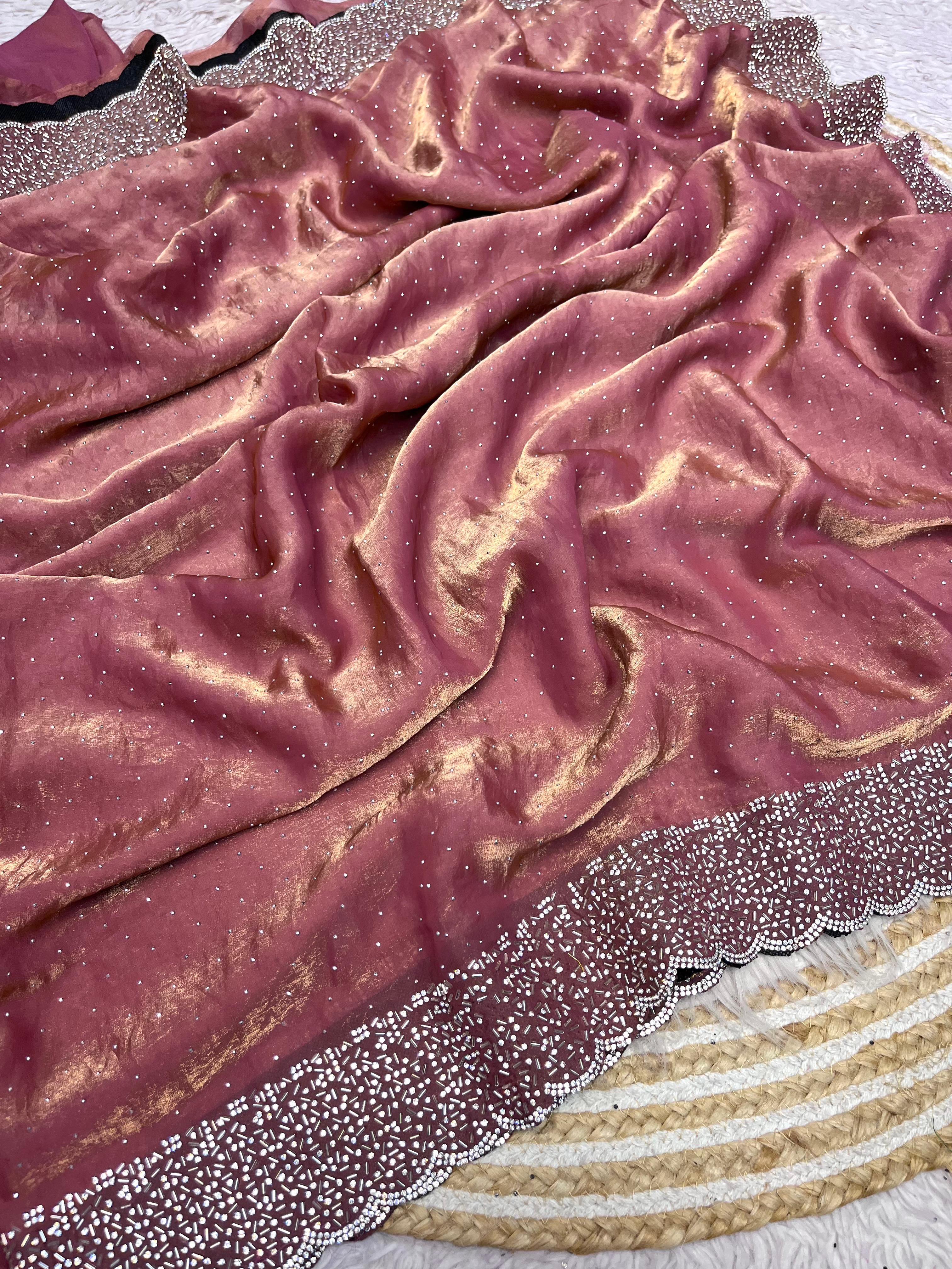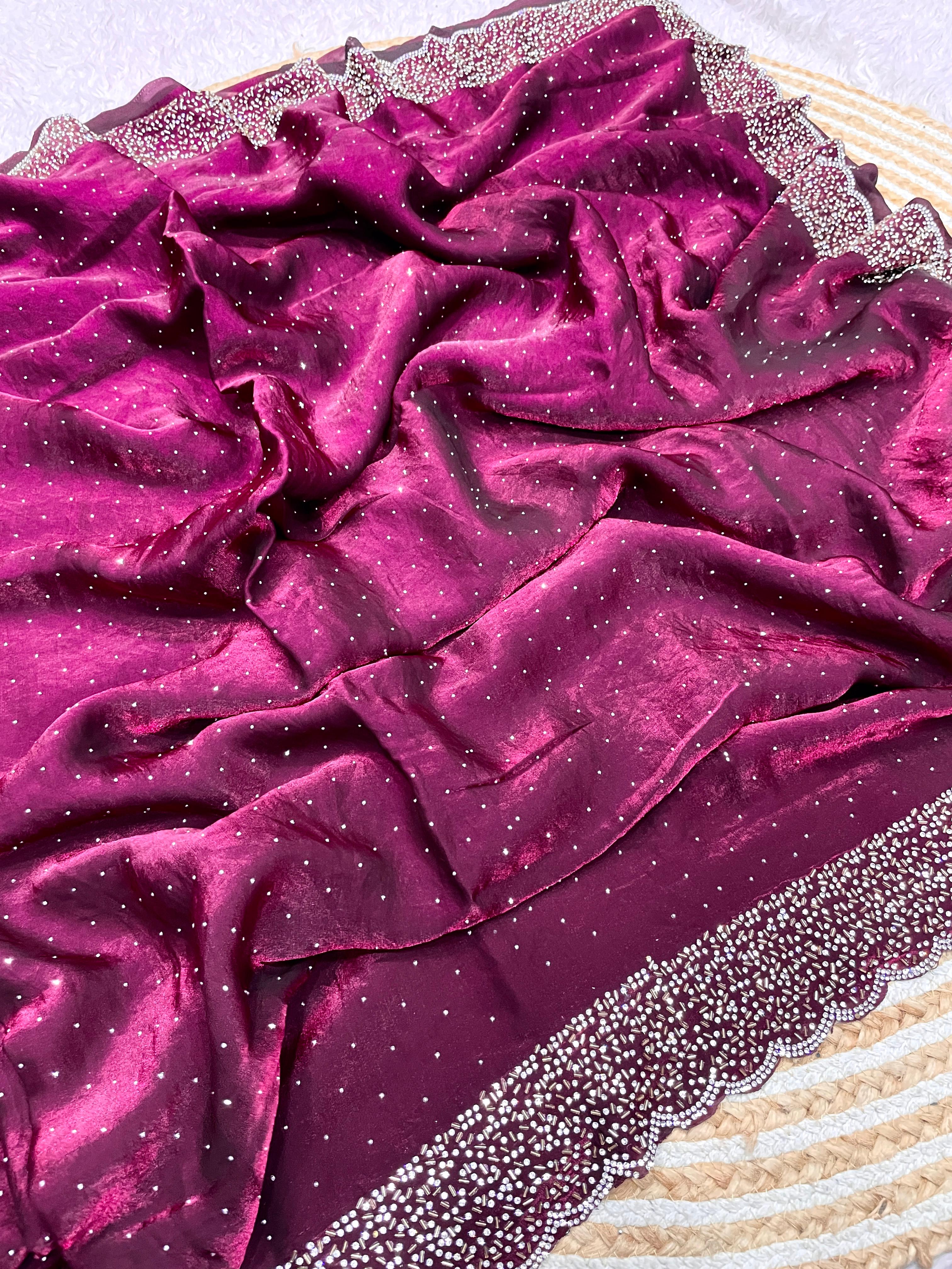 Space soft Silk Blooming With Beautiful jarkhan Work With Siroski Work*
