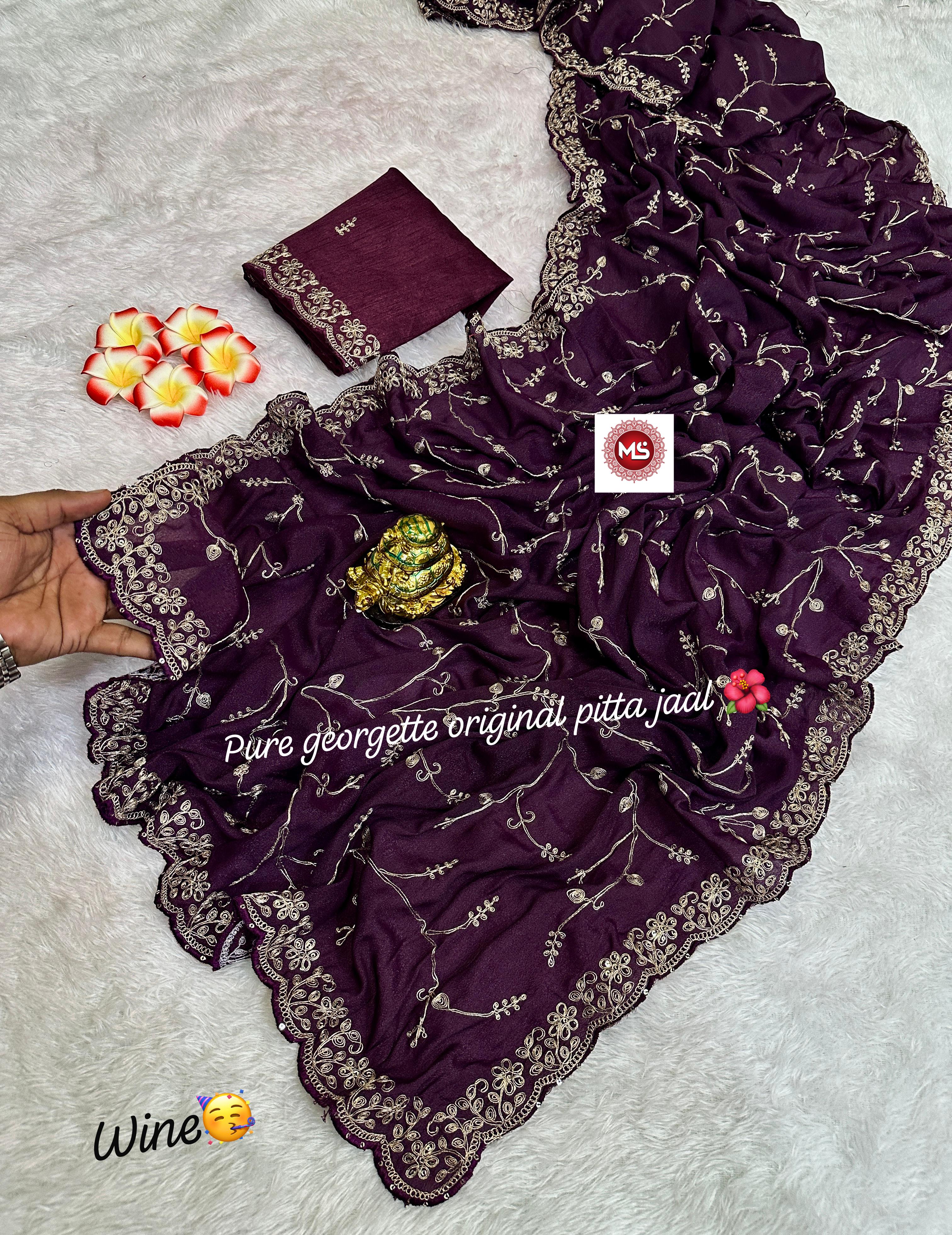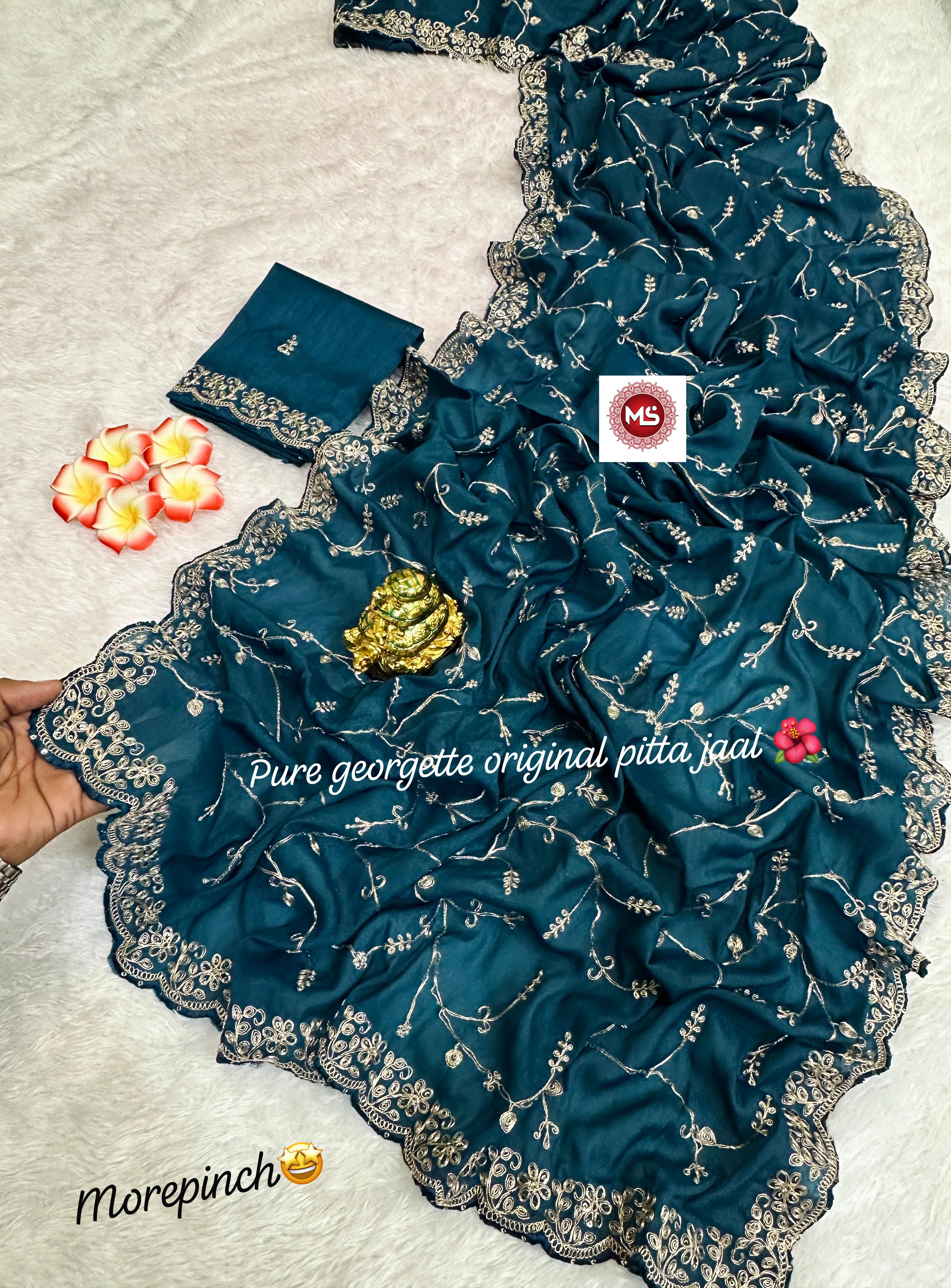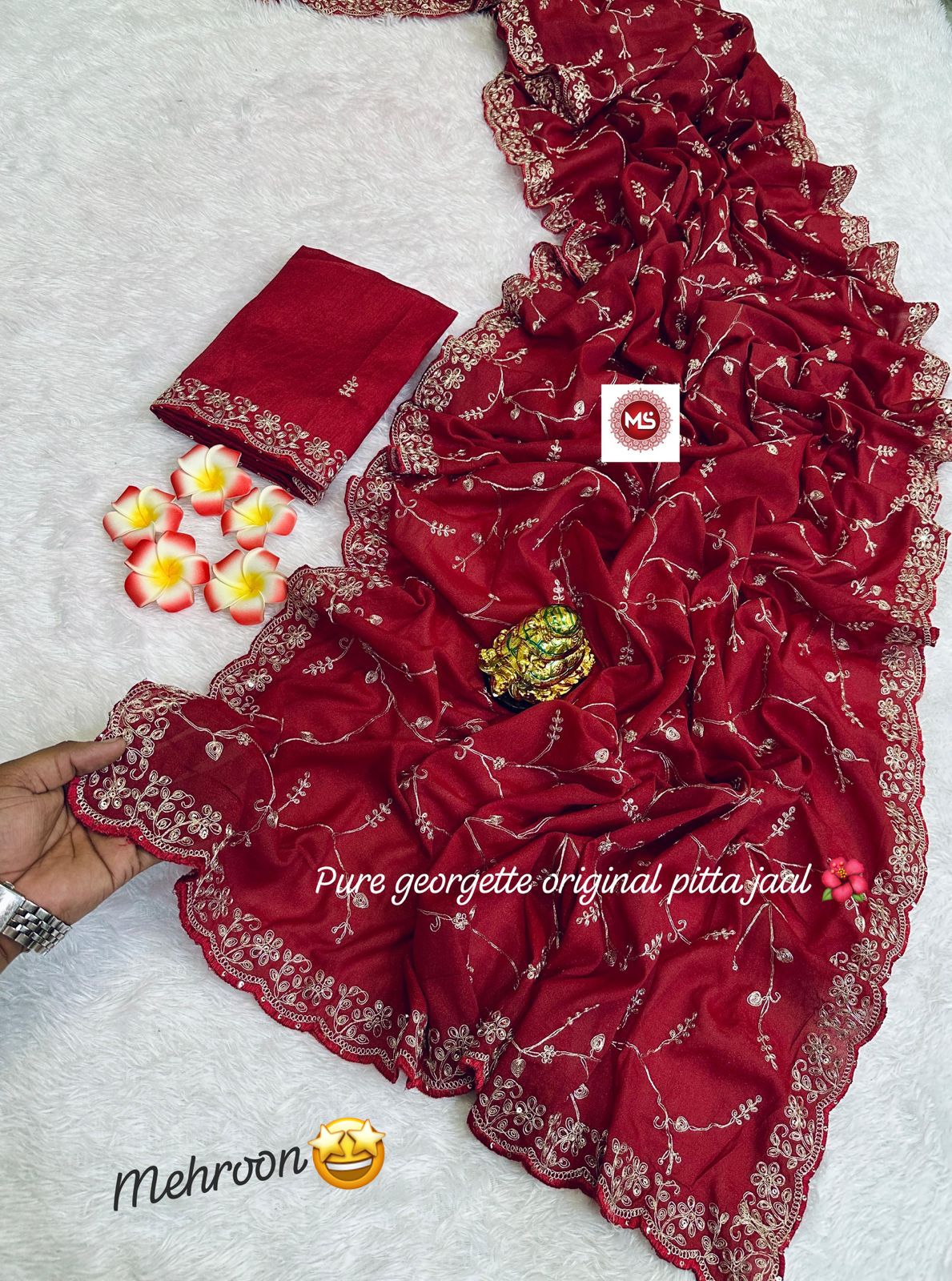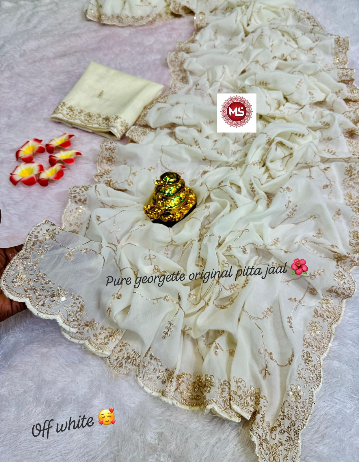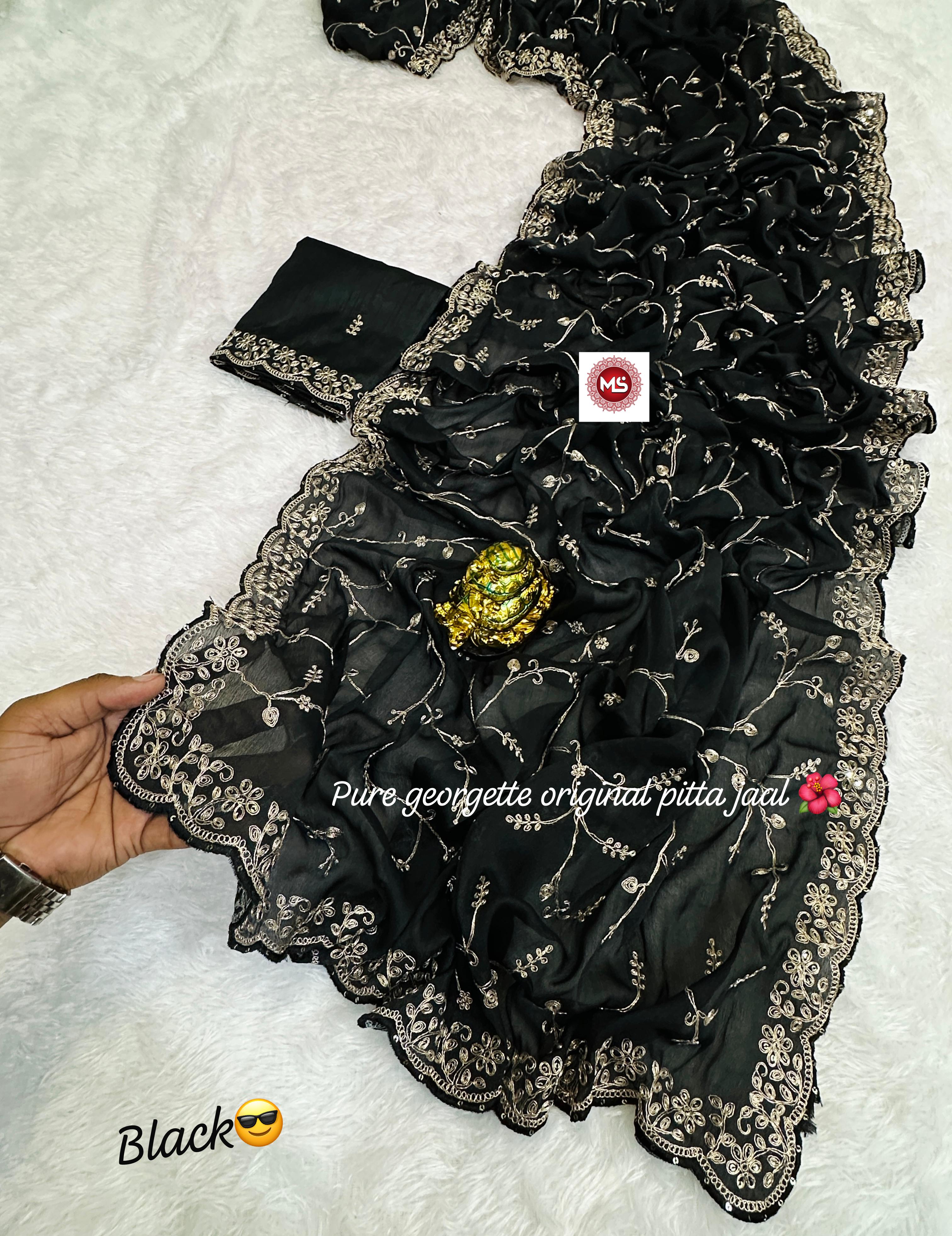 fabric -: pure star georgette silk with pitta jaal with sequins work best quality