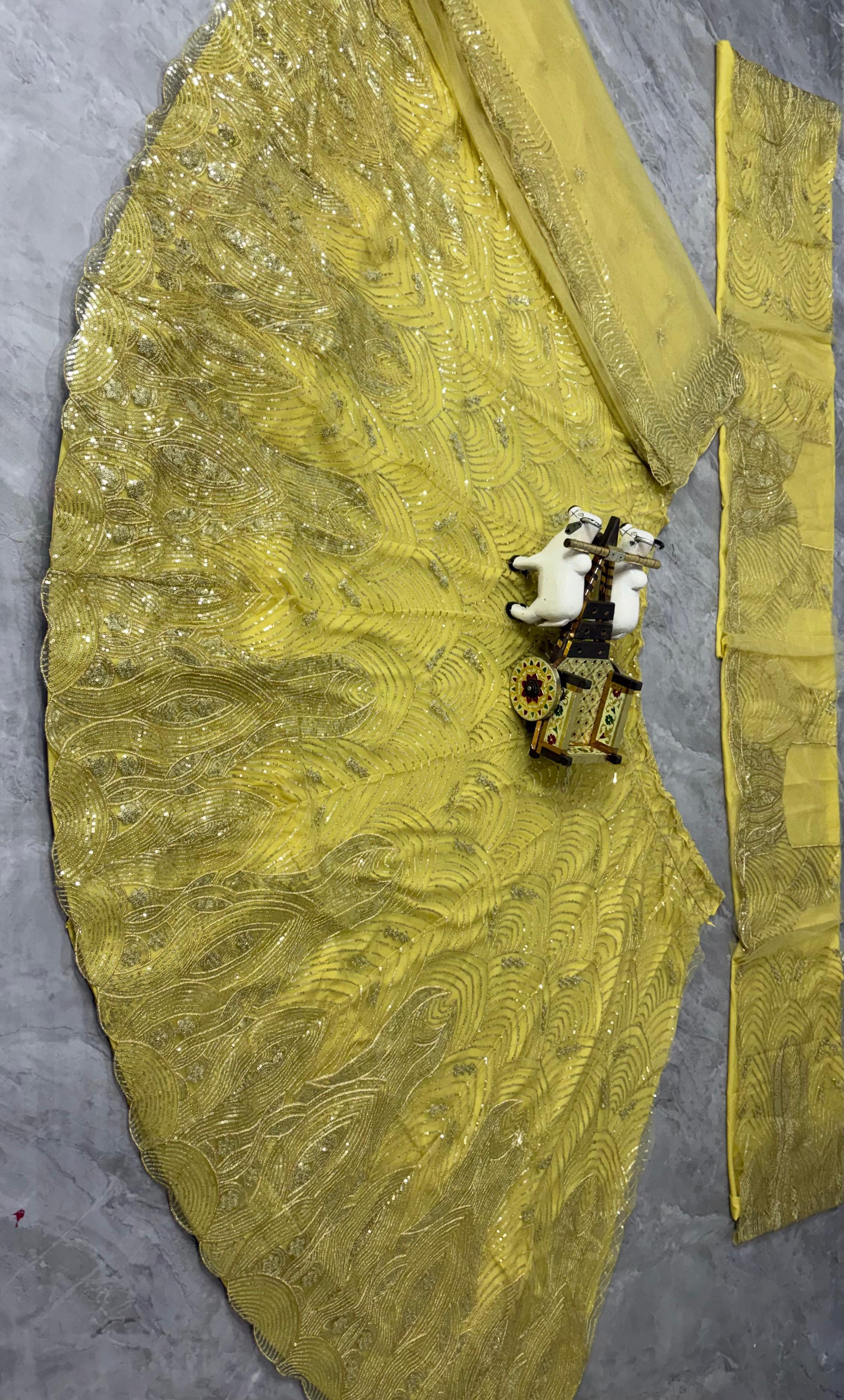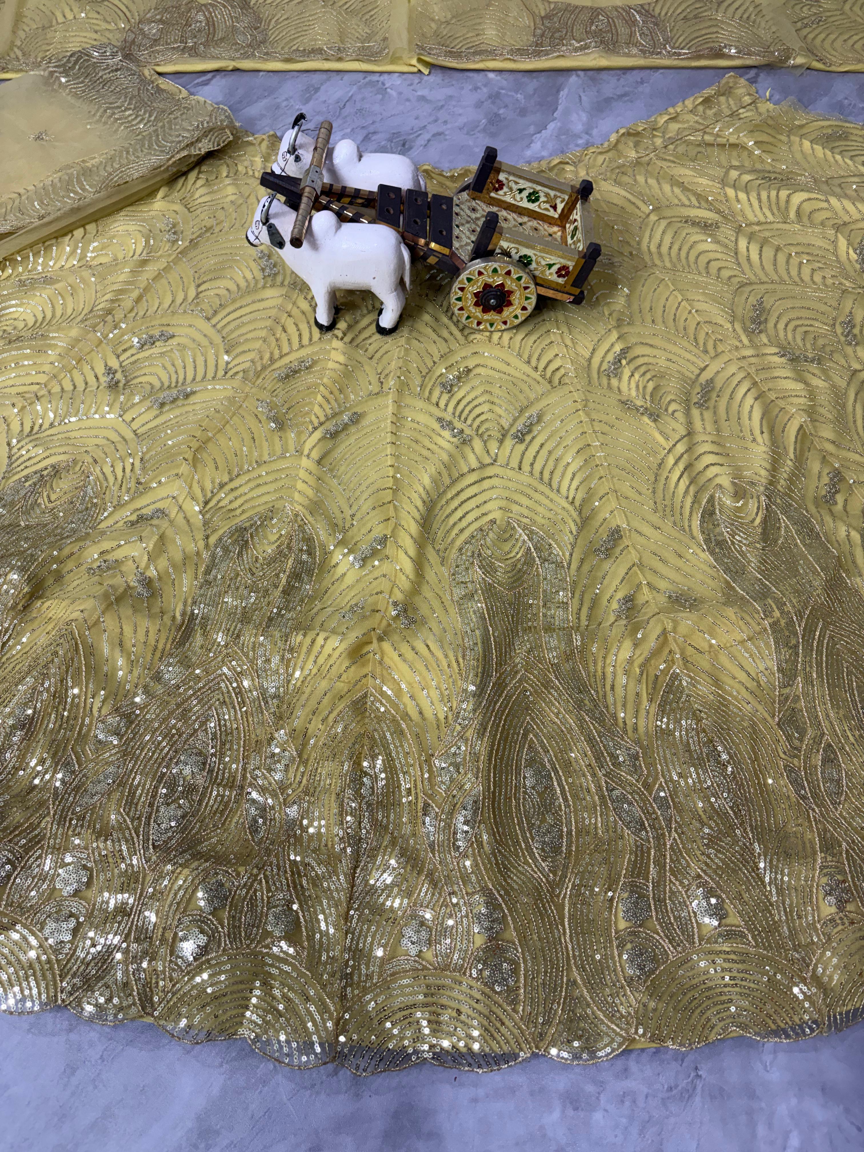 👉 Lehenga work- Embroidery Sequins Work With Cancan & Canvas Patta