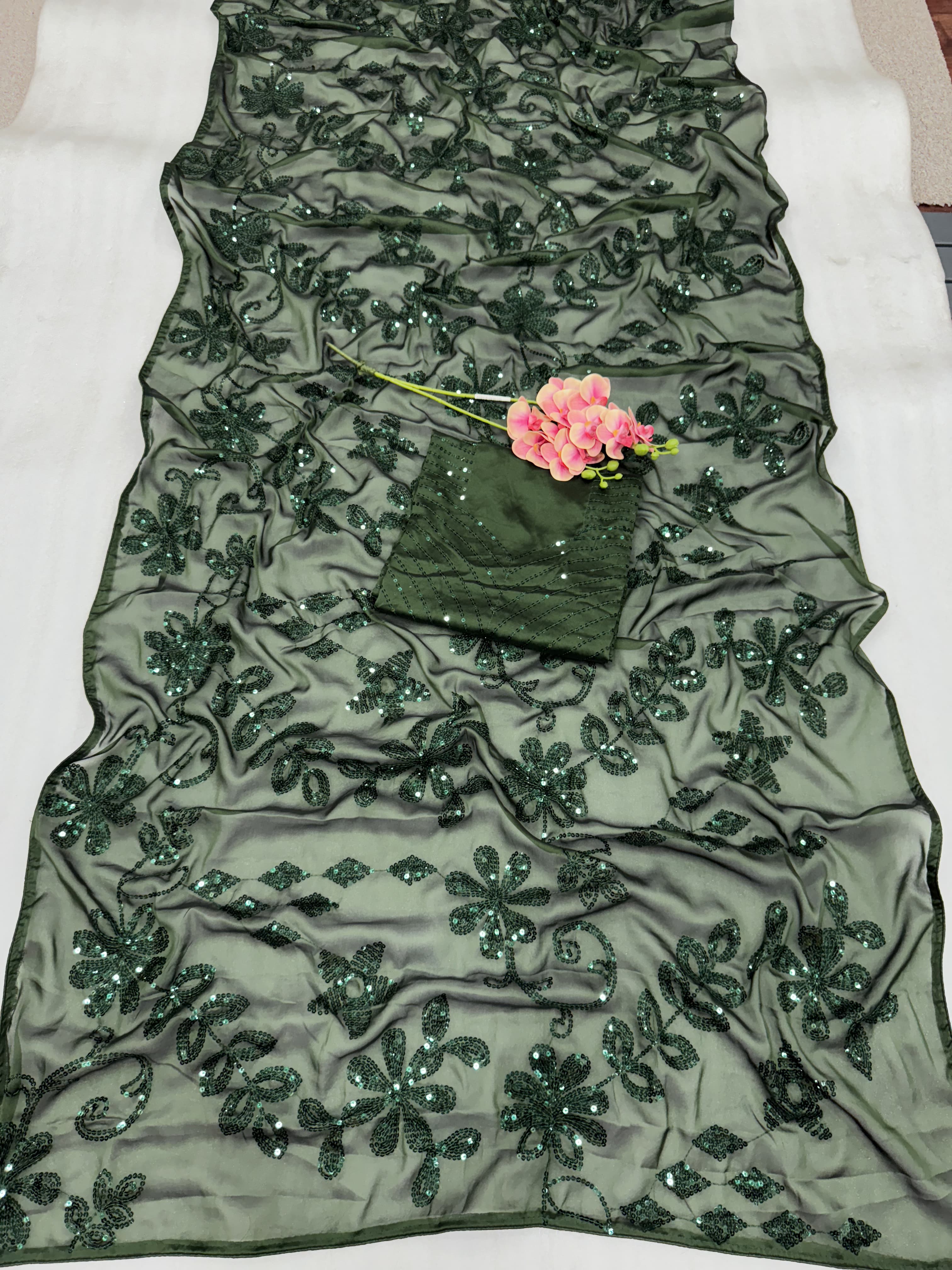 BLOUSE-RANGOLI SILK FABRIC WITH HEAVY FRONT & BACK EMBROIDERY 5MM SEQUINS WORK