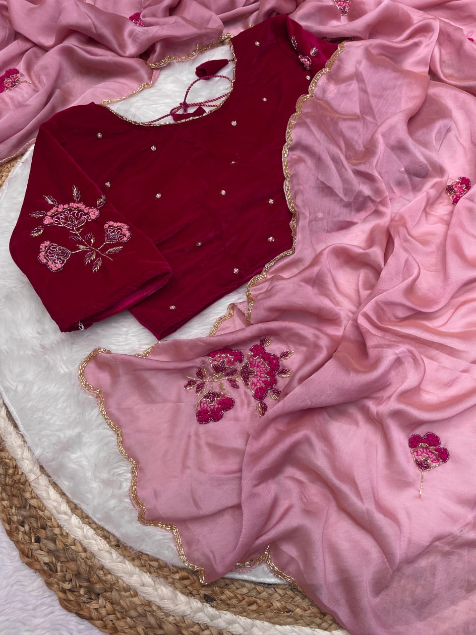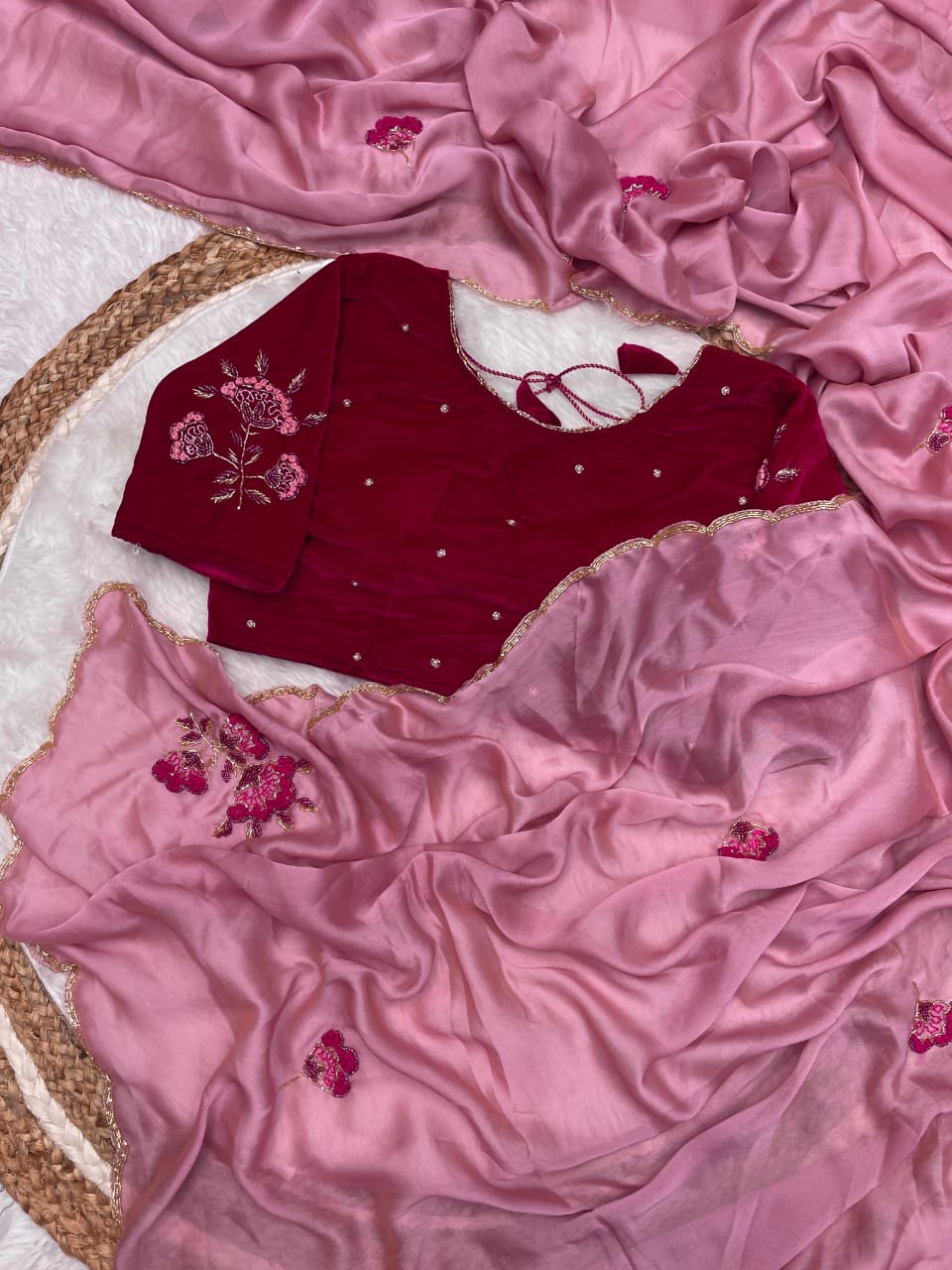 *Blouse- velvet 9000 Designer blouse having 2 butta