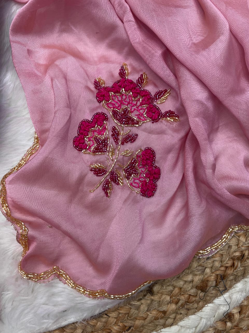 Work- : cover with three layer cutdana. Boder And double layer Arco Border Having Butta All Over Saree Run With cutdana, Moti And Resham Thread