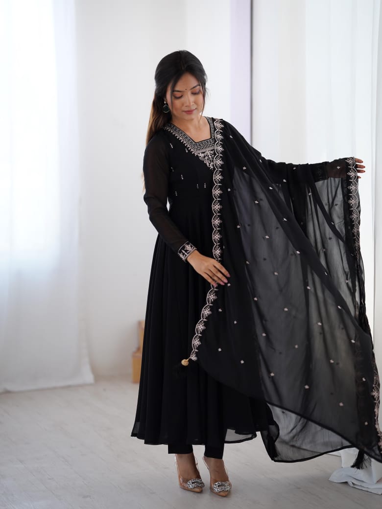 PURE SOFT FOX GEORGETTE FABRIC FULLY FLAIR ANARKALI,WITH DUPPTA SET,PENT READY TO WEAR