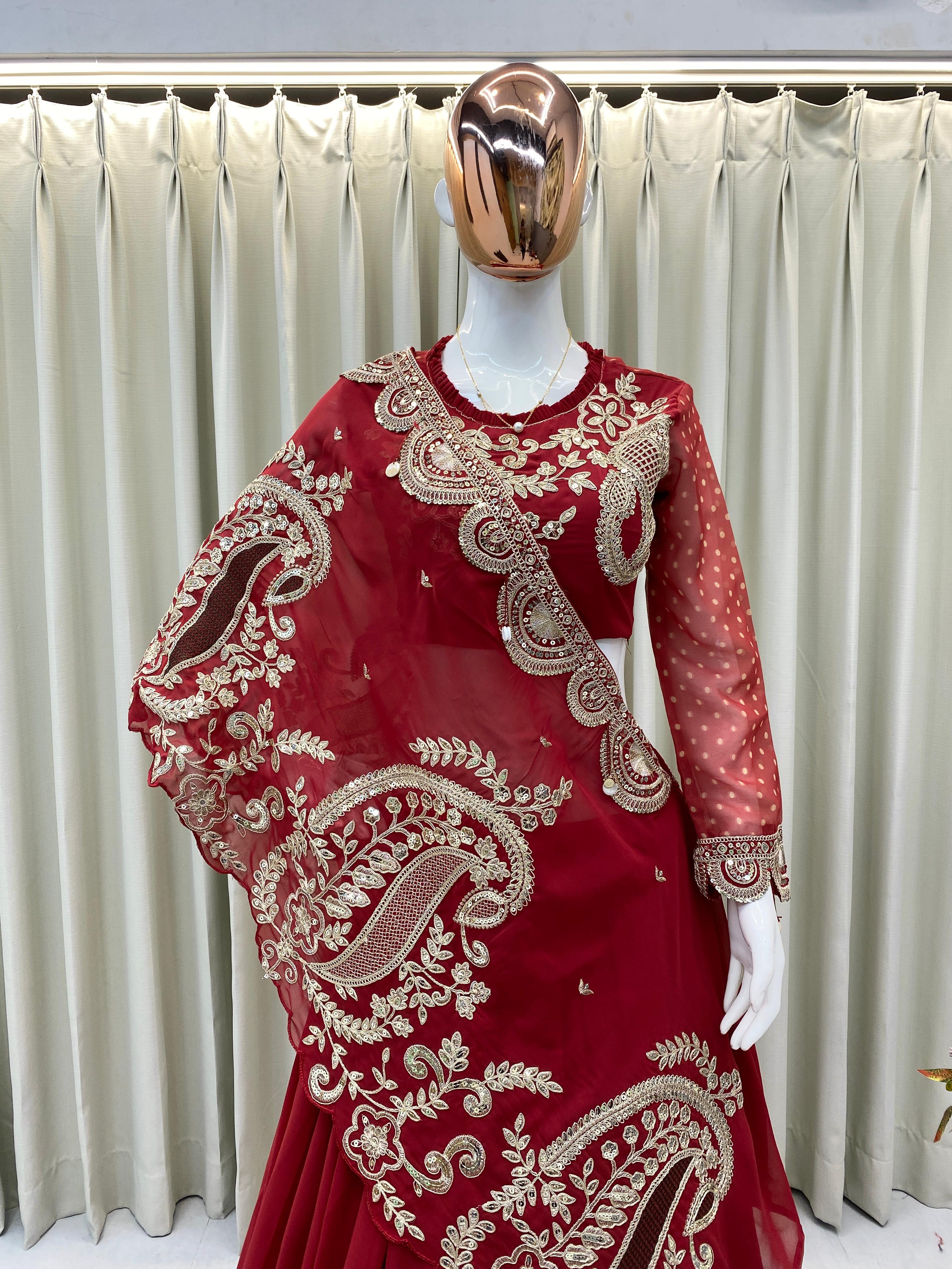 DESIGNER WEAR EMBROIDERED LEHENGA BLOUSE AND SHRUGE 💝