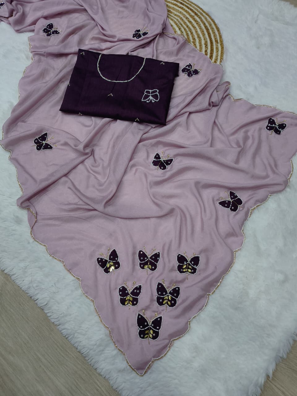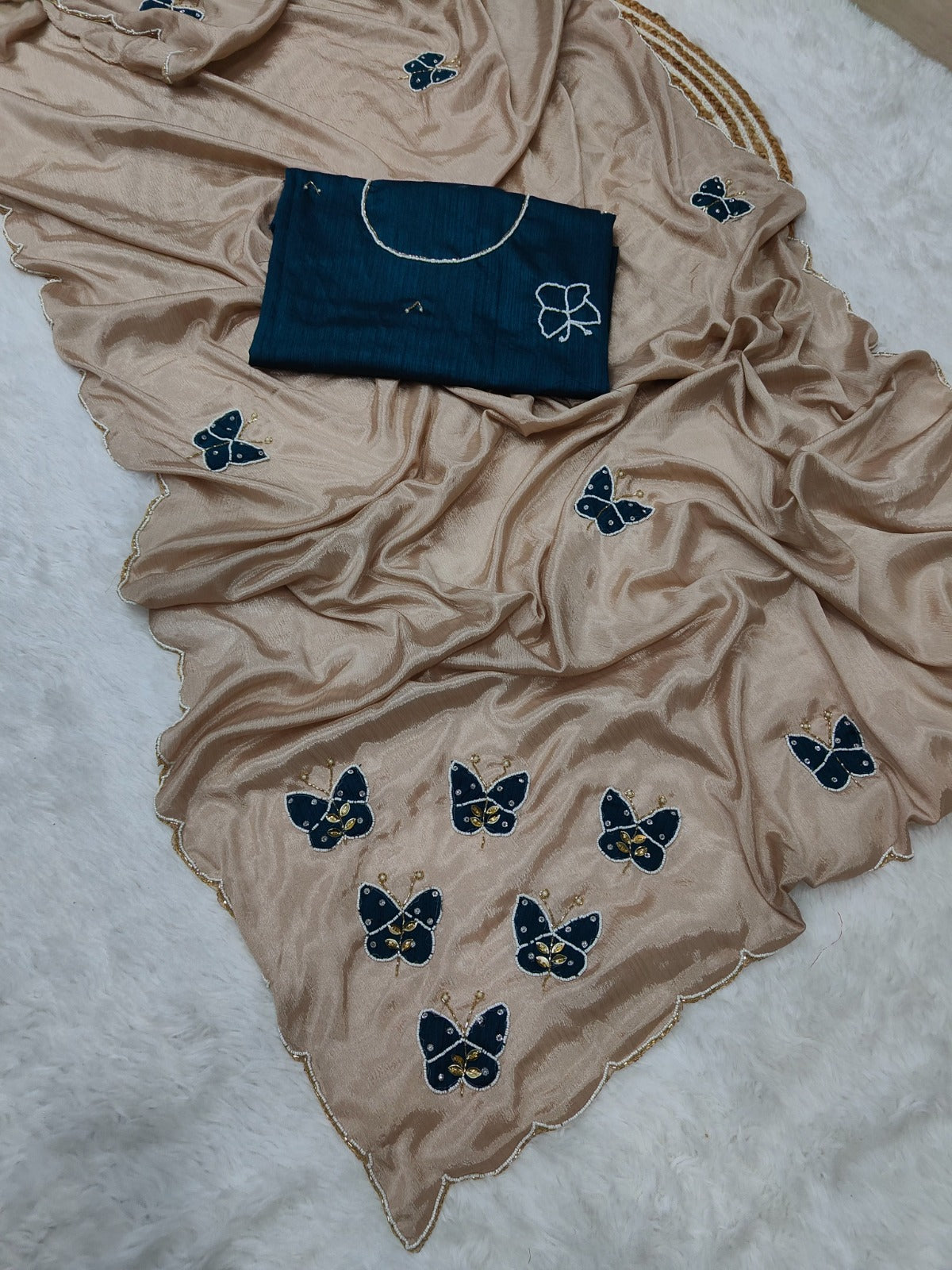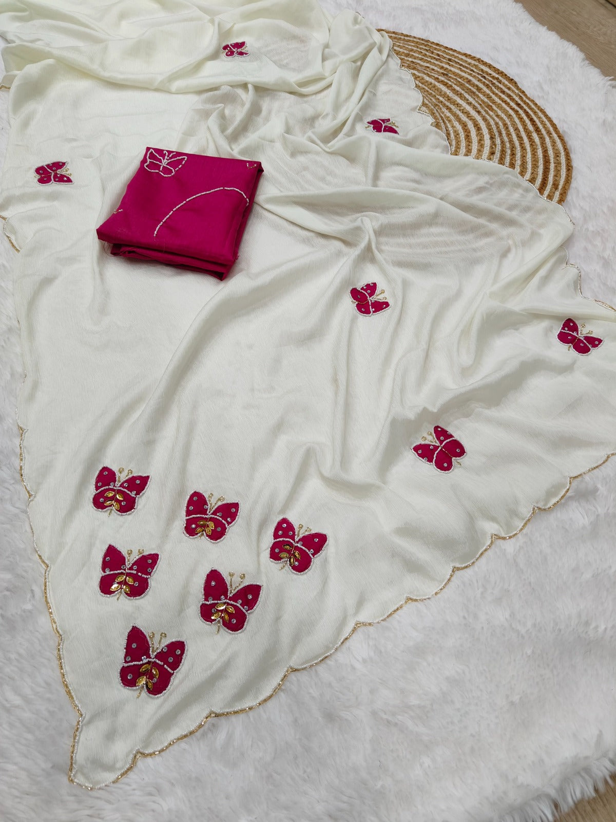 Fabric :- Elegance Premium Chinon silk with Beautiful elegance Khatli work with butterfly butta😍