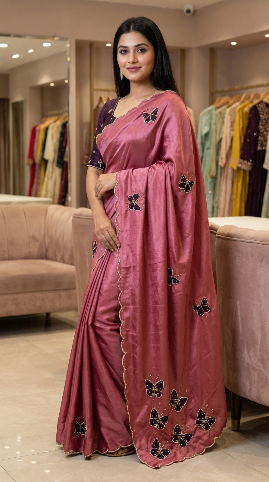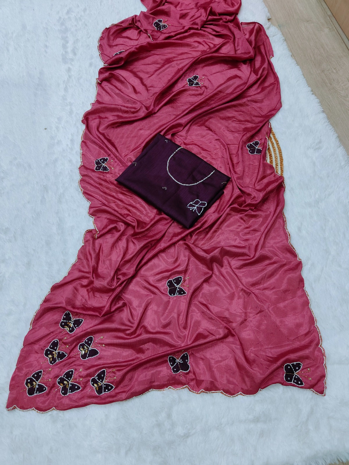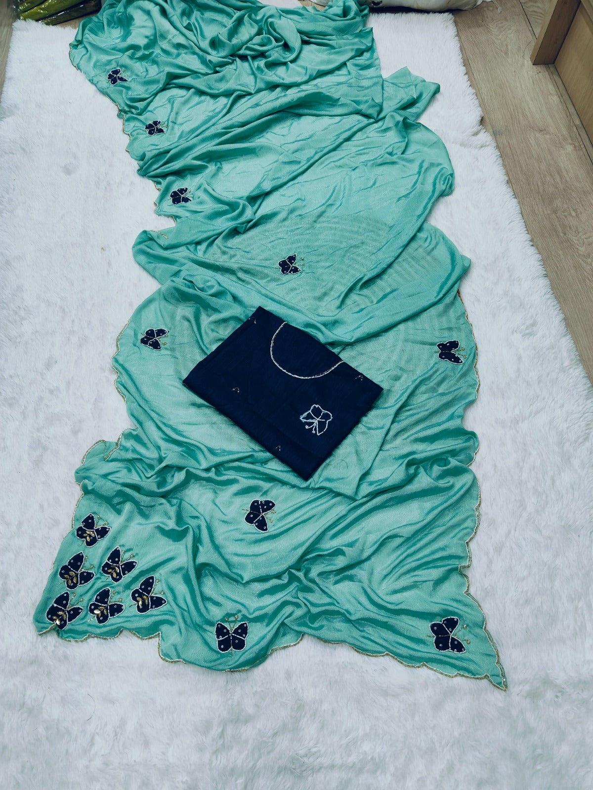Fabric :- Elegance Premium Chinon silk with Beautiful elegance Khatli work with butterfly butta😍
