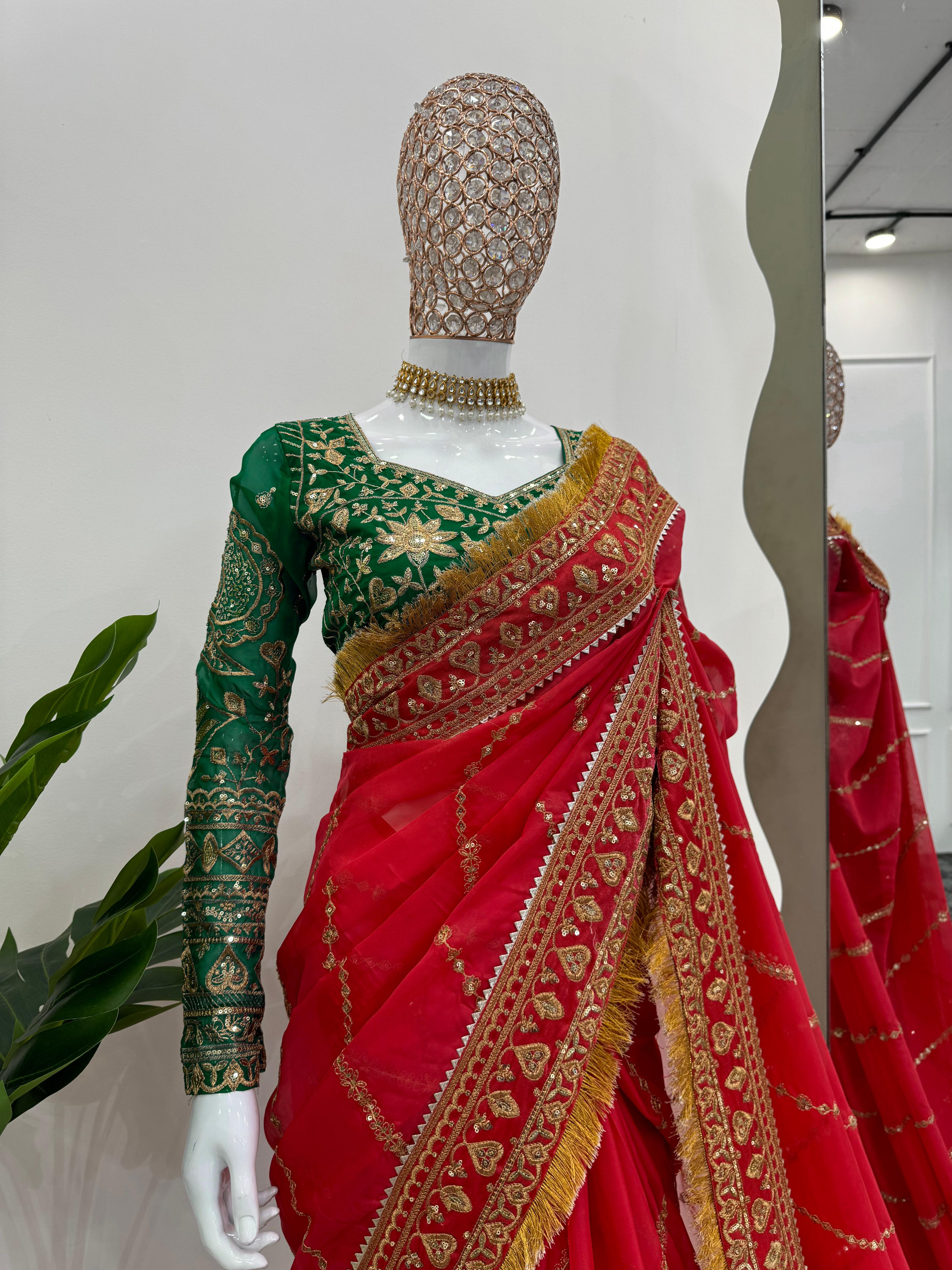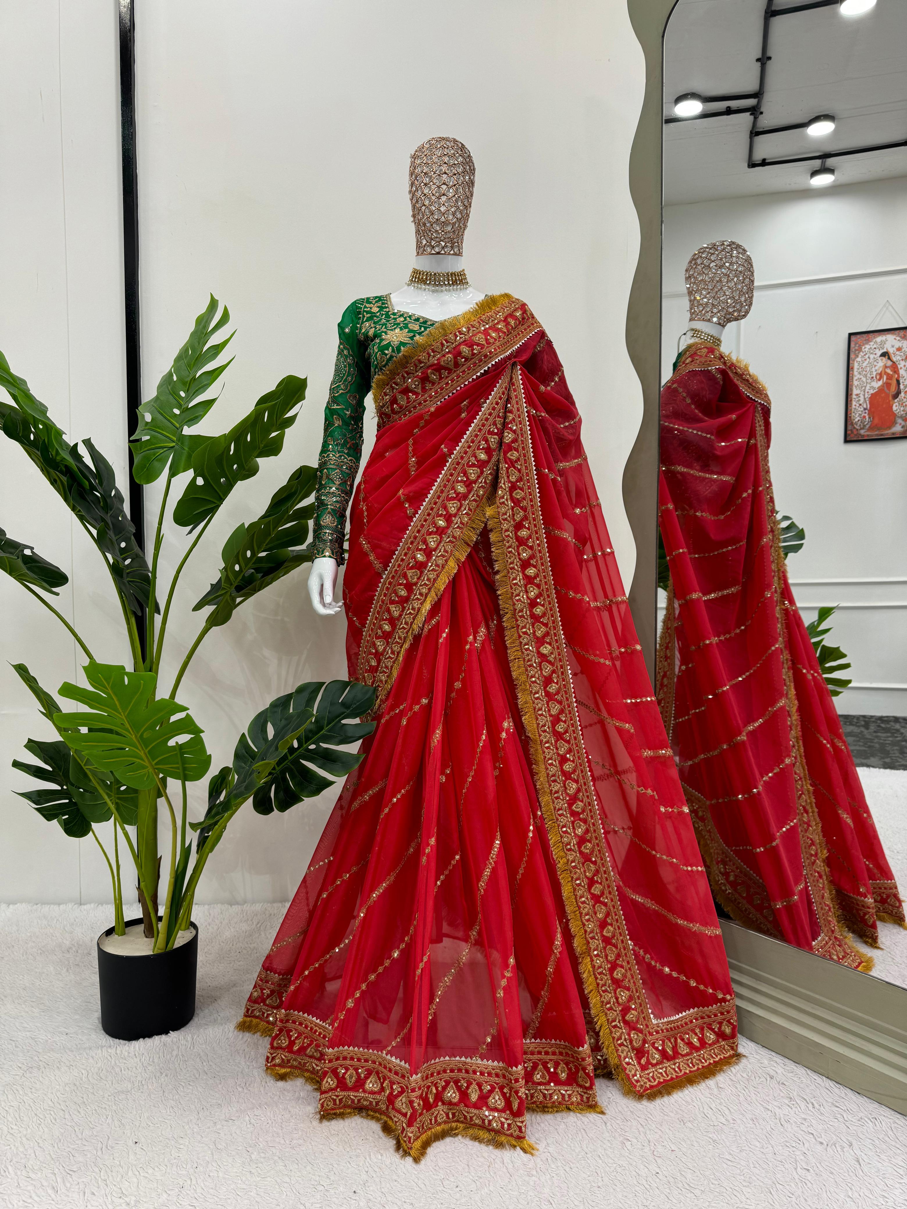 Looking some one for this same colour beautiful Designer Saree on Organza silk Fabric with Thread & Sequence work and Blouse on also Organza Silk Fabric with Thread & Sequence work.