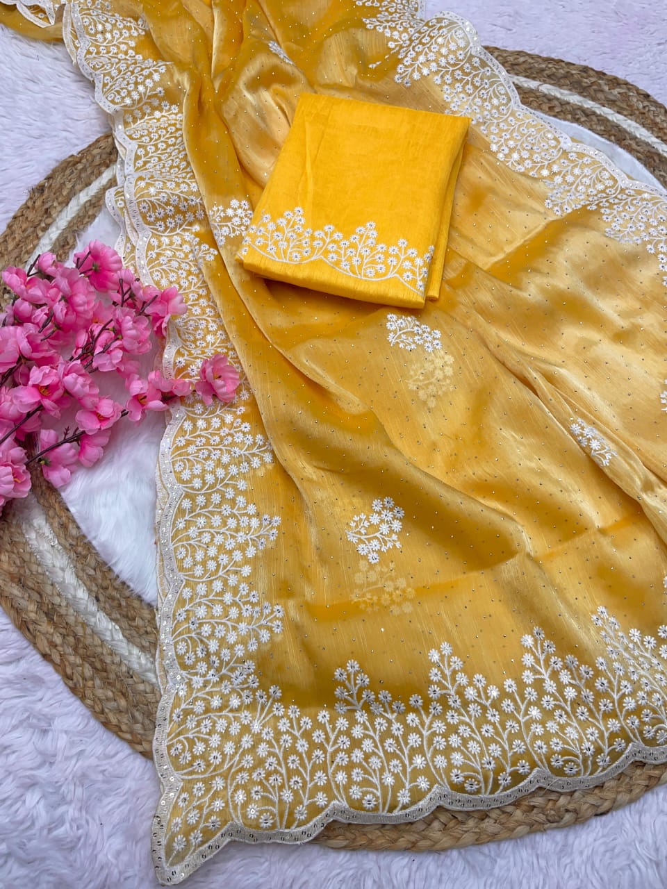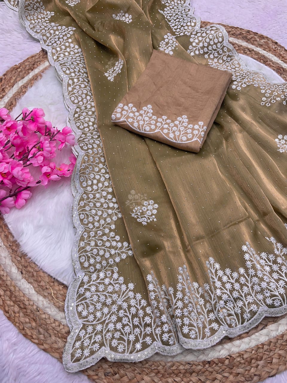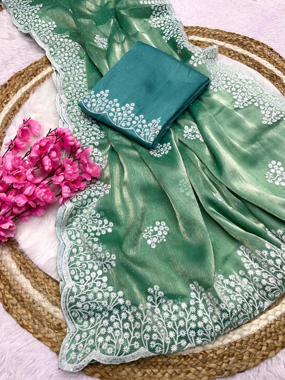 👗Fabric : Zimmy Choo Saree With Beautiful 5MM Sequence Embroidery C-Pallu Work*