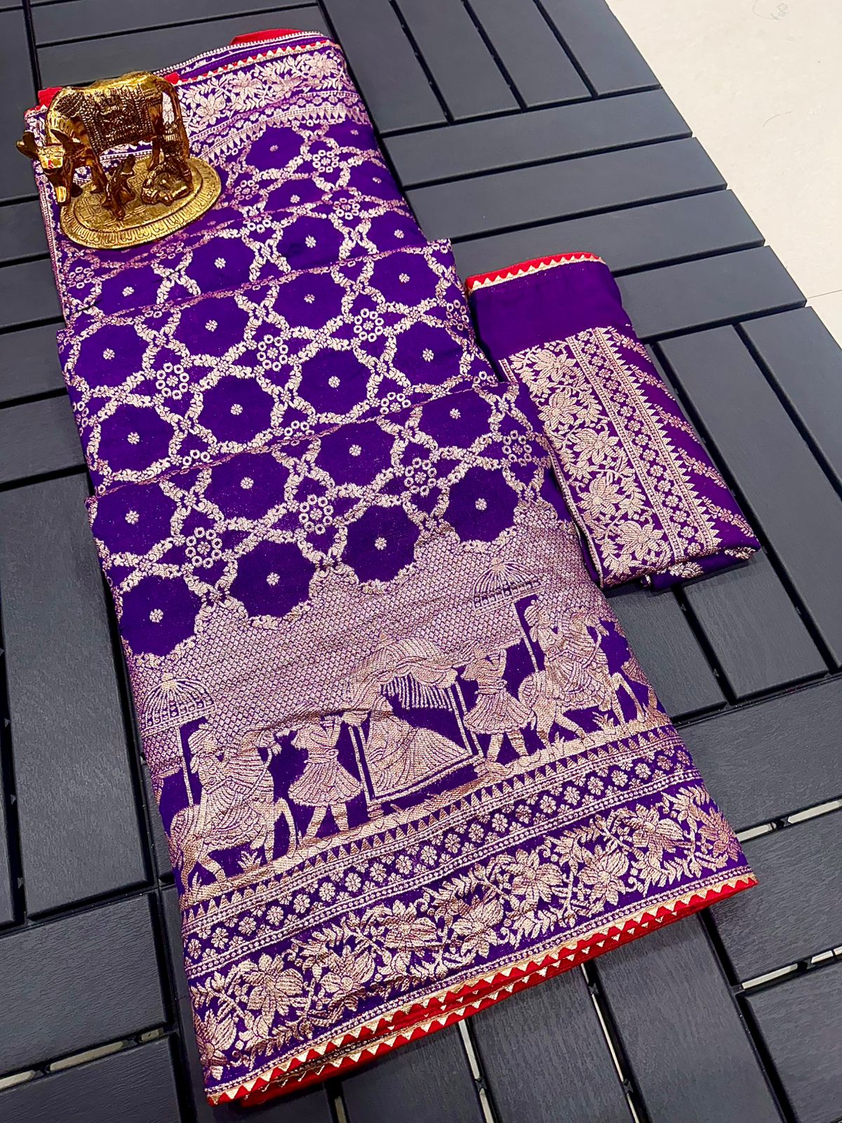 BLOUSE :~ Running Luxury Dola Silk Nack Zari Weaving Zari in Blouse