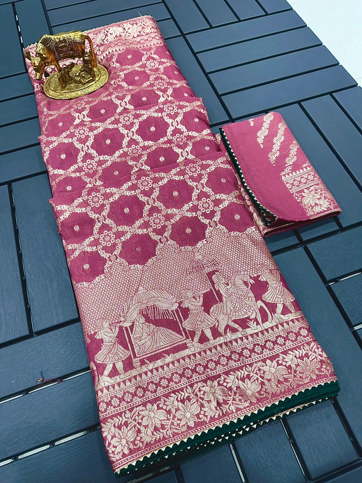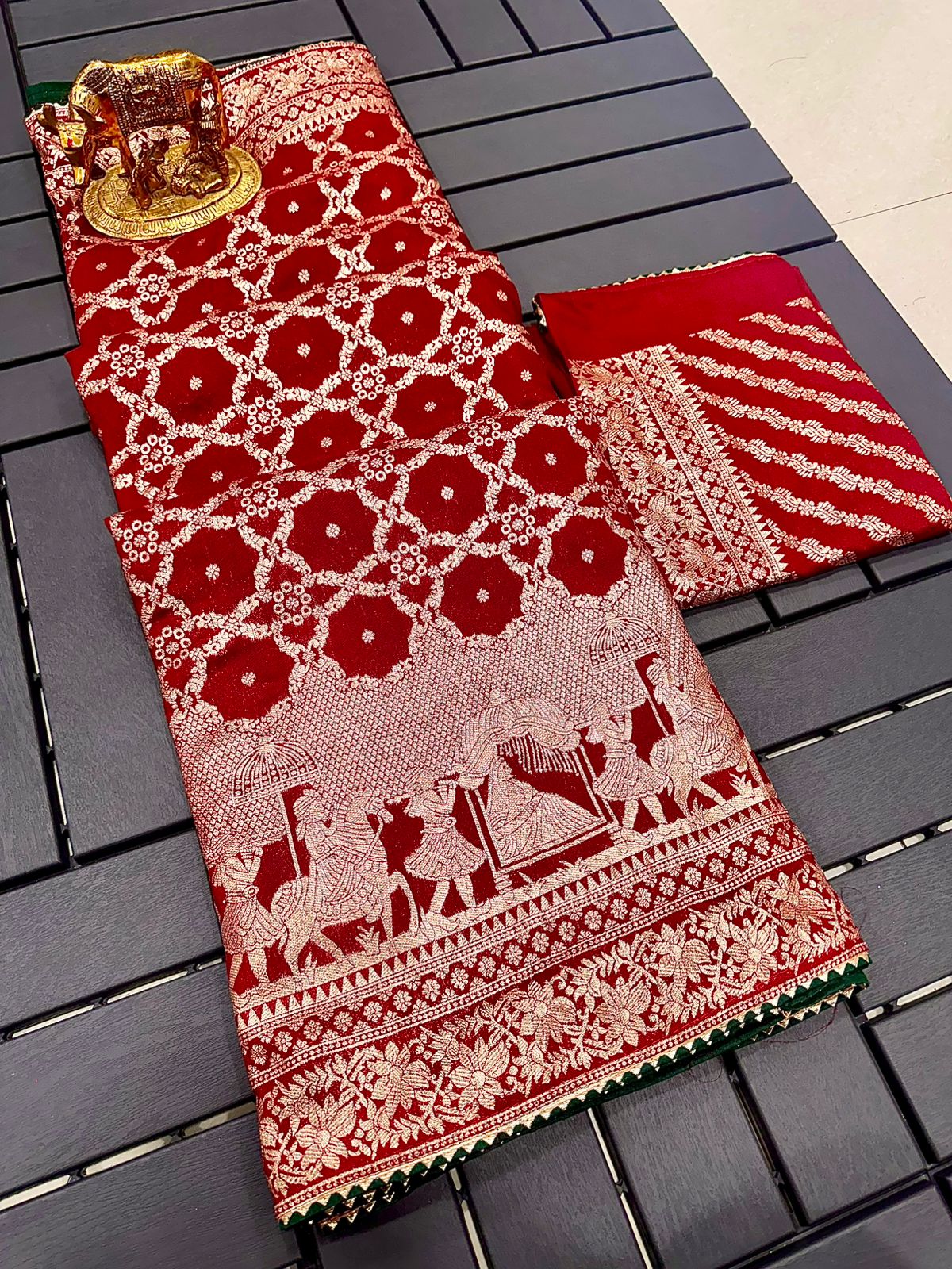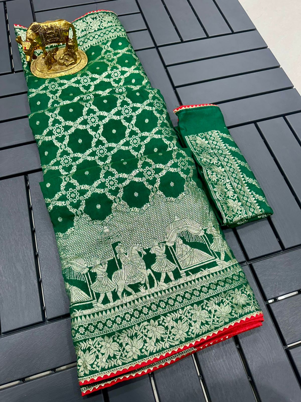 SAREE :~ Luxury Pure Dola Silk Viscose Weaving Beautiful Karvachauth Zari Weaving in Saree