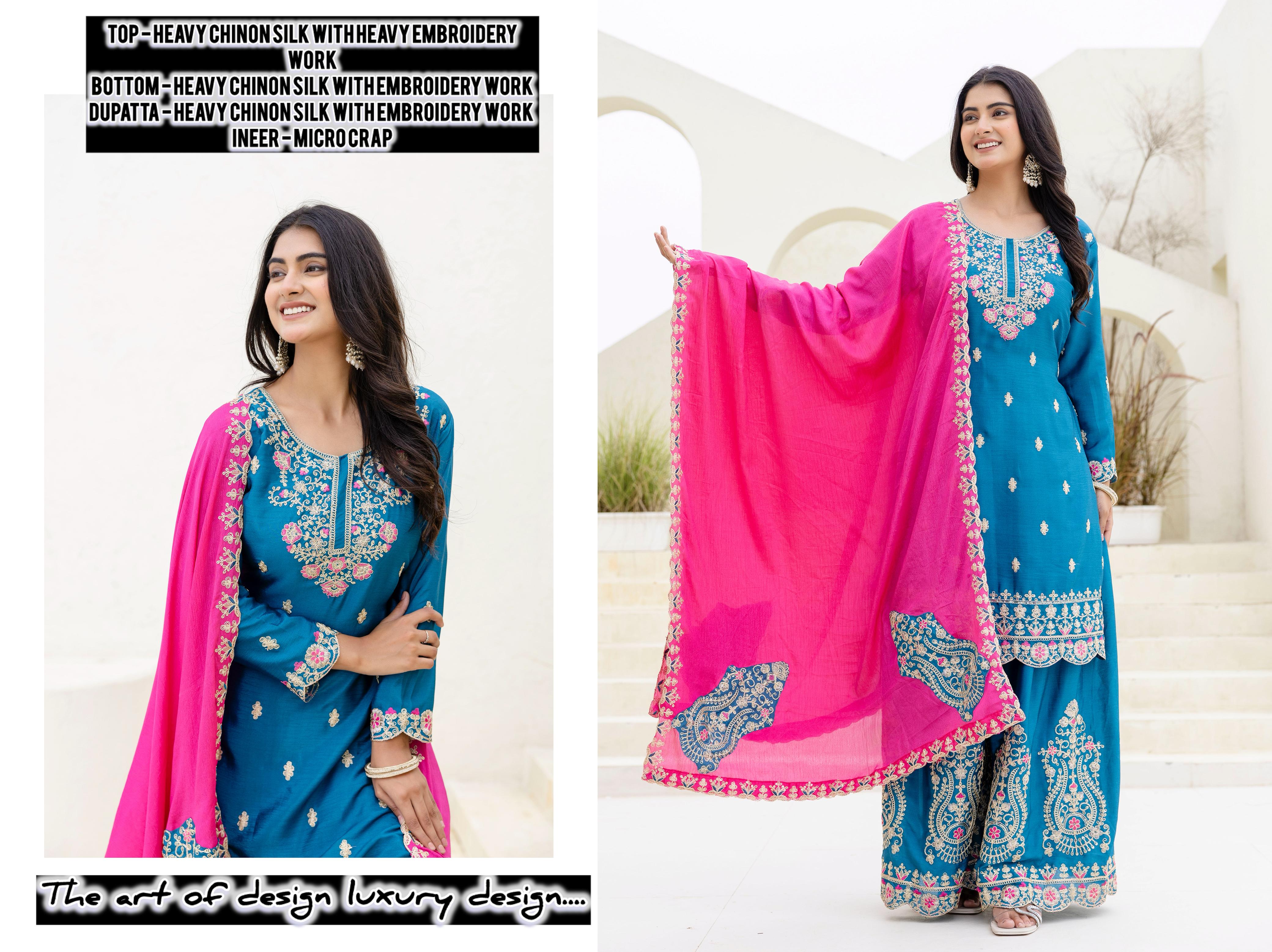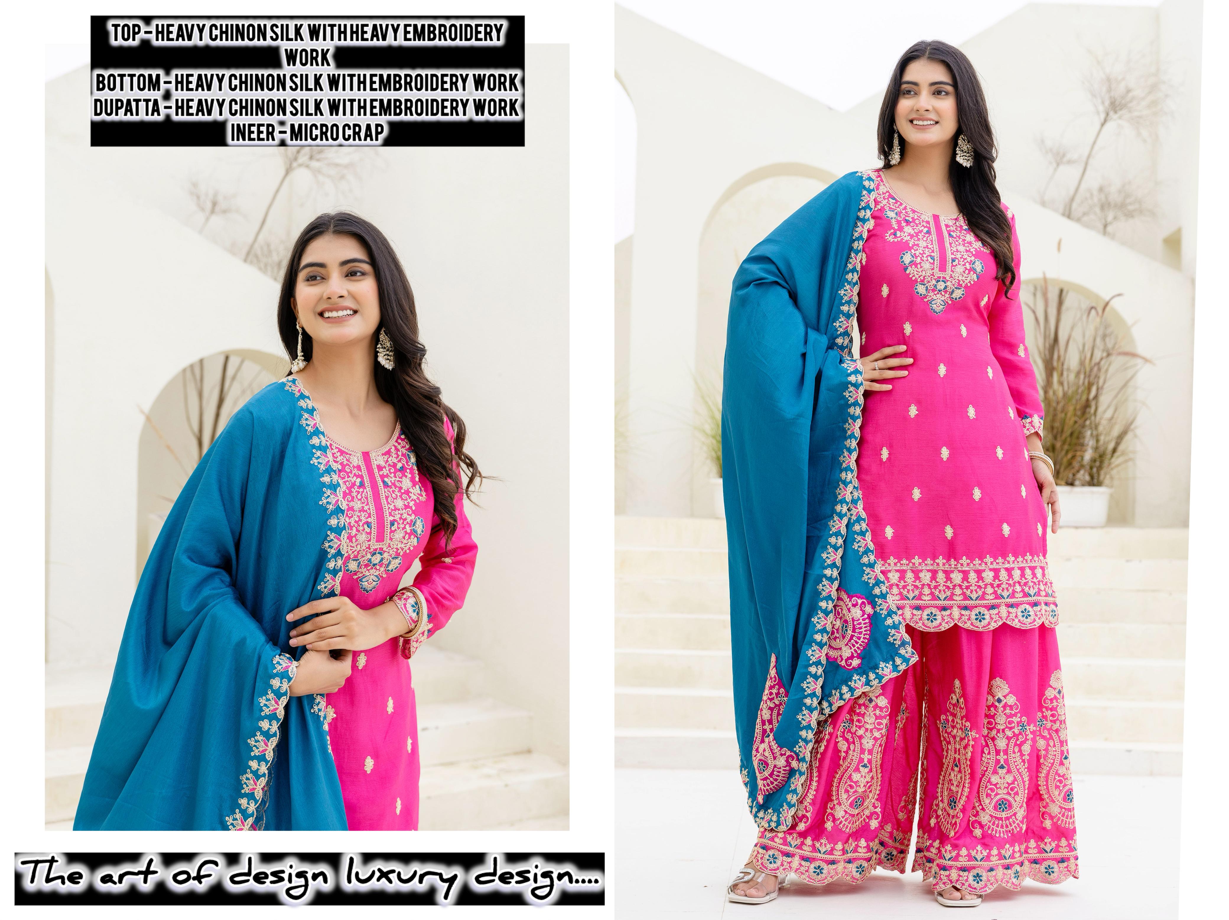 #LuxuryDesign #ChinonSilk #HeavyEmbroidery #IndianFashion #EthnicWear #DesignerOutfit #PartyWear #Elegance #WeddingGuestLook #Stunning