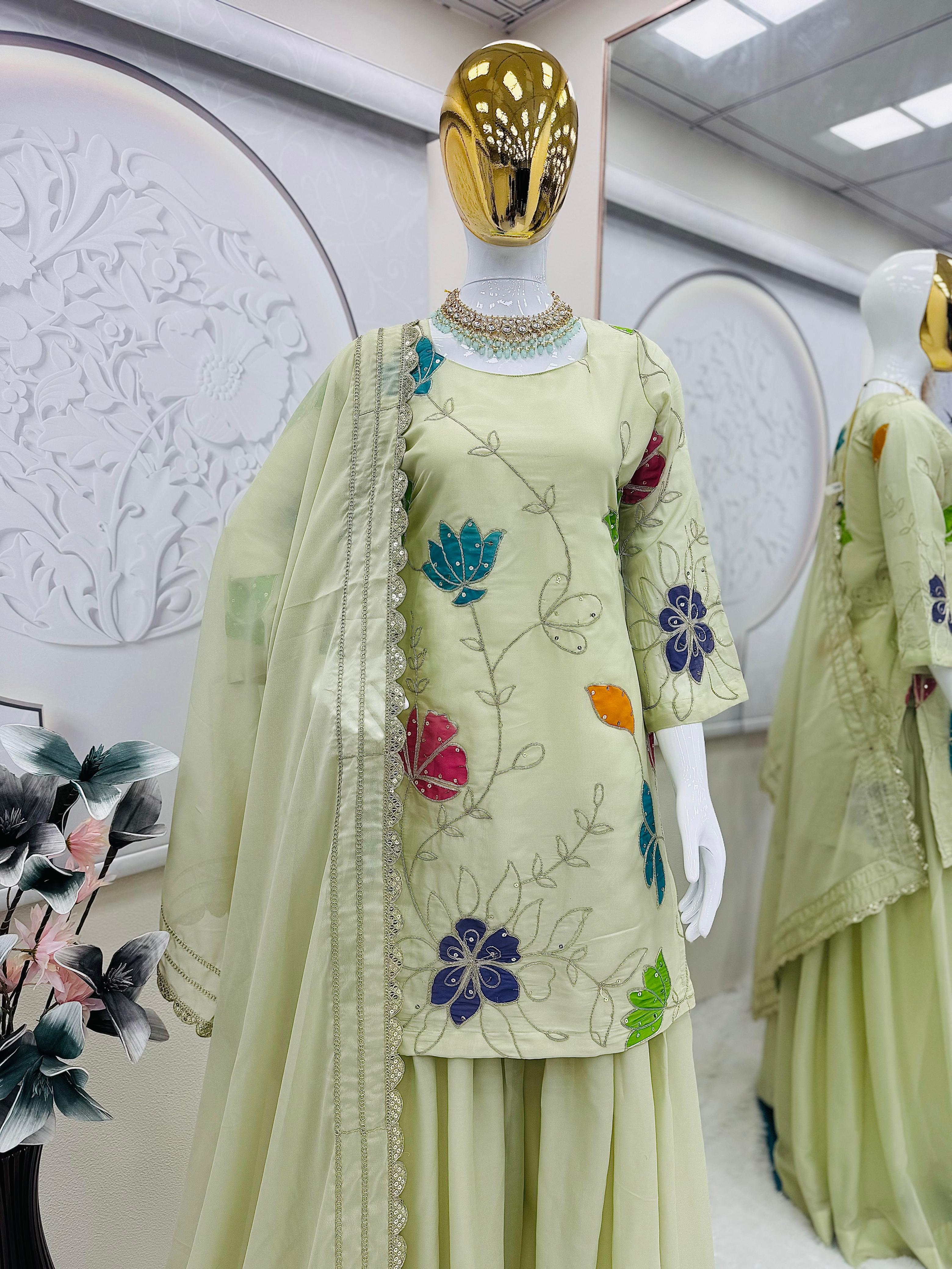 Work : Heavy Embroidery Sequins & Codding With Multi Colours Floral Work