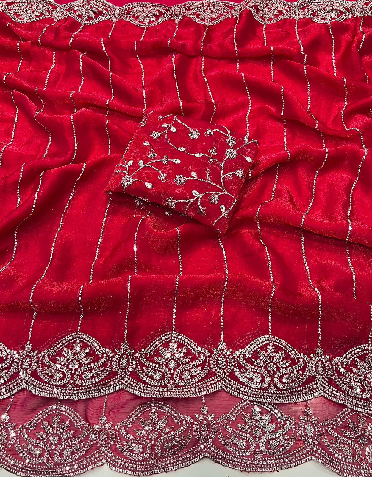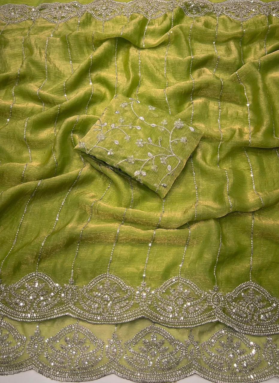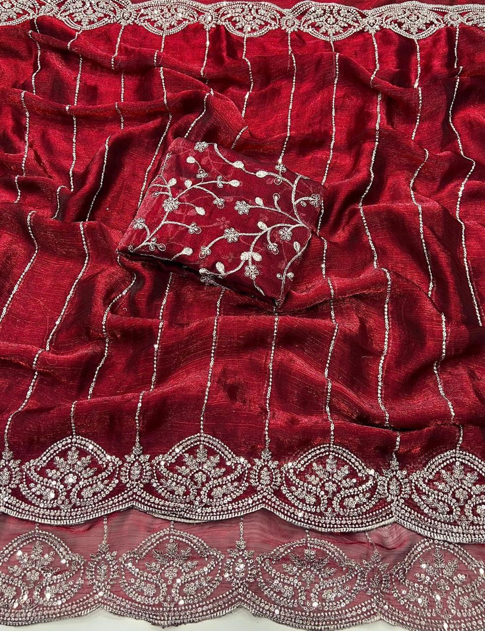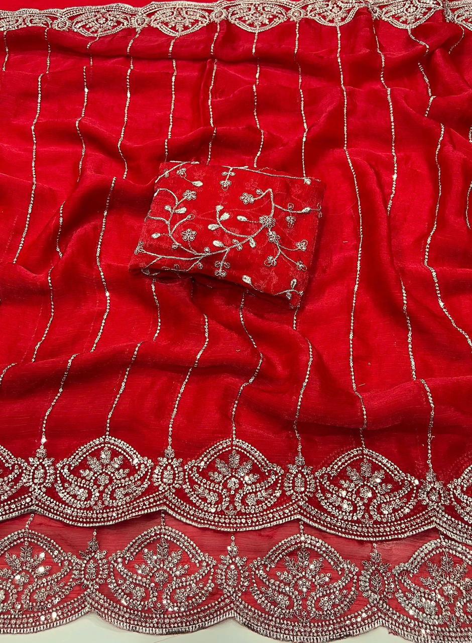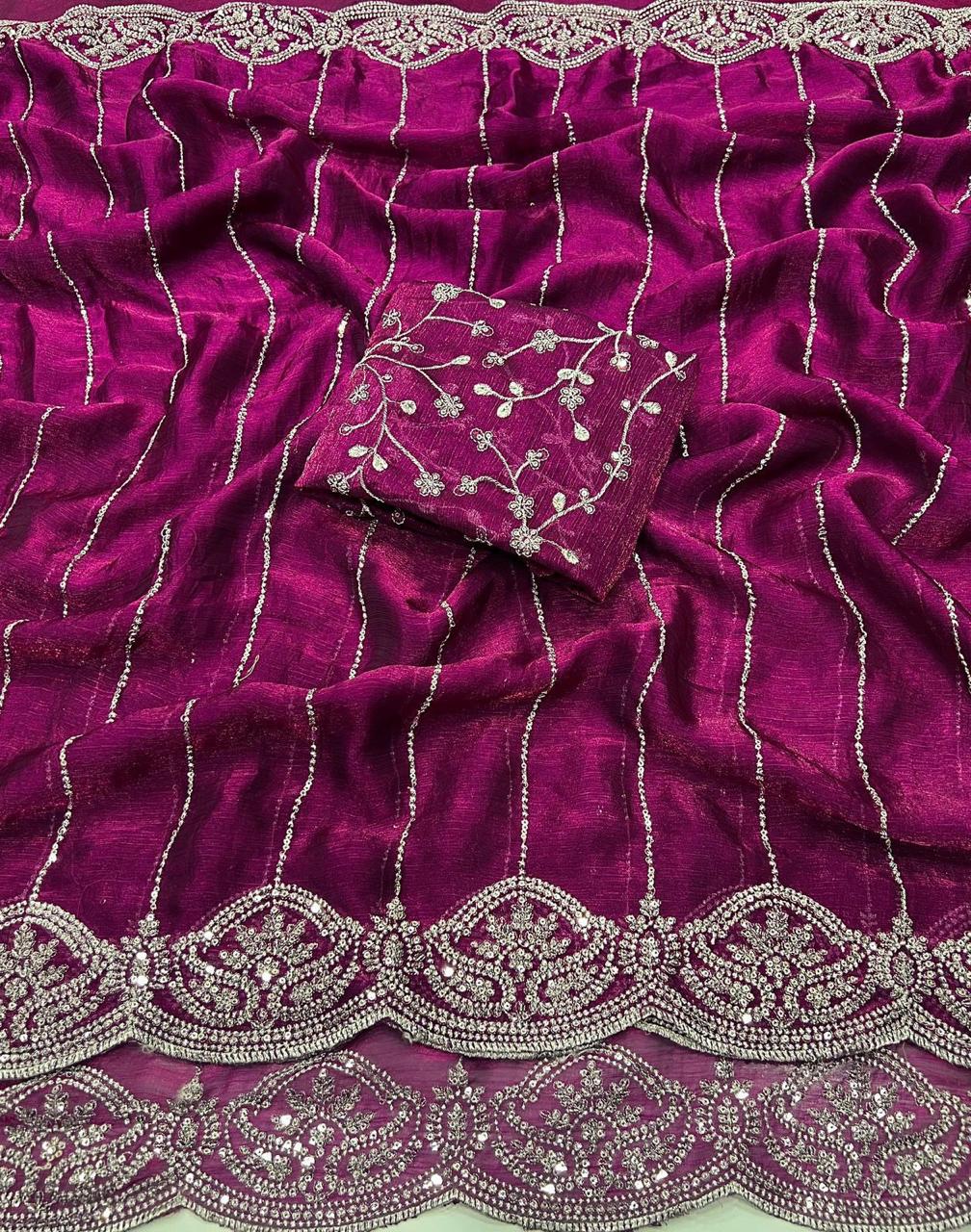 Saree:- Pure Fandy Chiffon Silk With Beautiful Sequence embroidery work with Cut work border