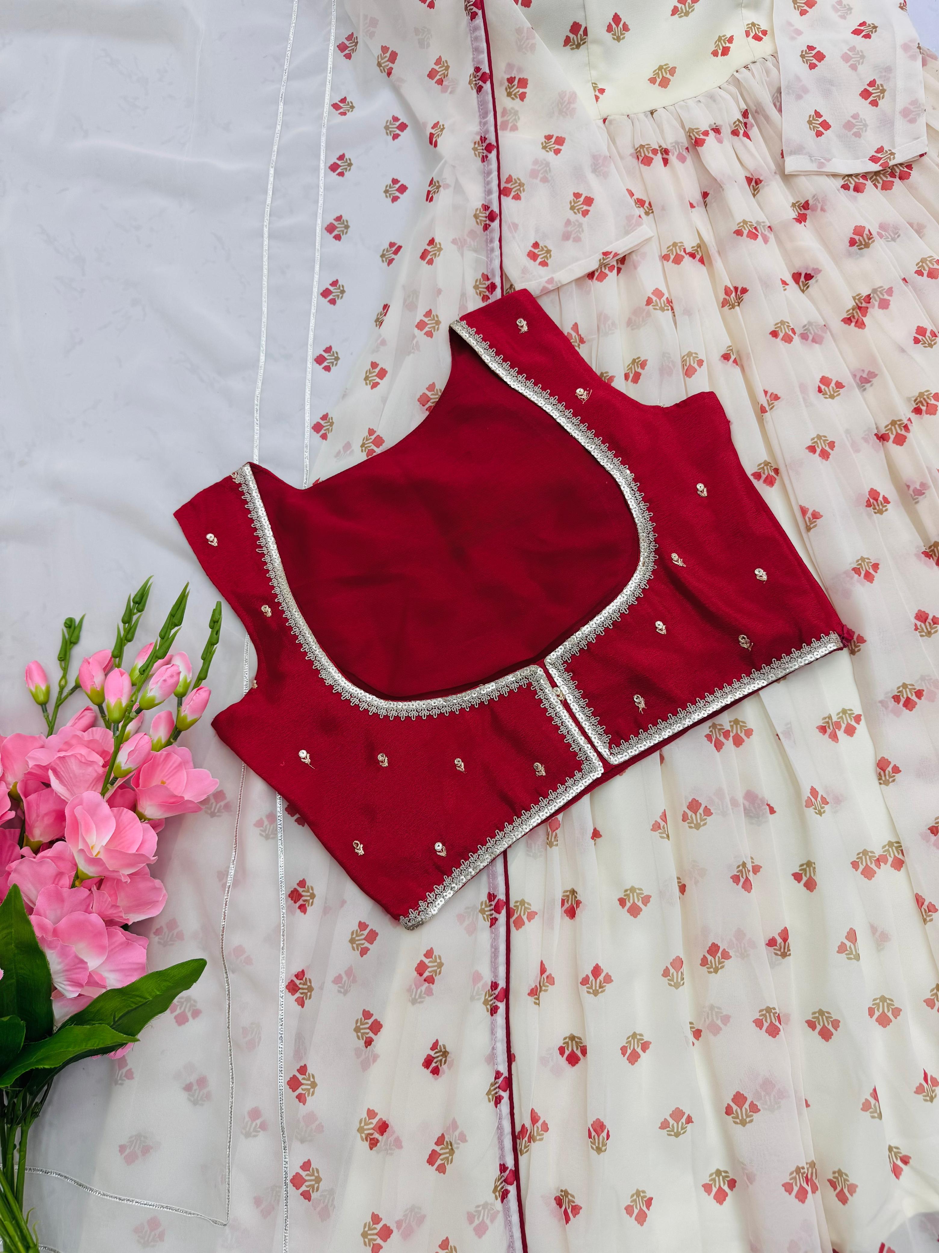 Work : Flower Prints With Gotapatti Lace & Border Piping Work