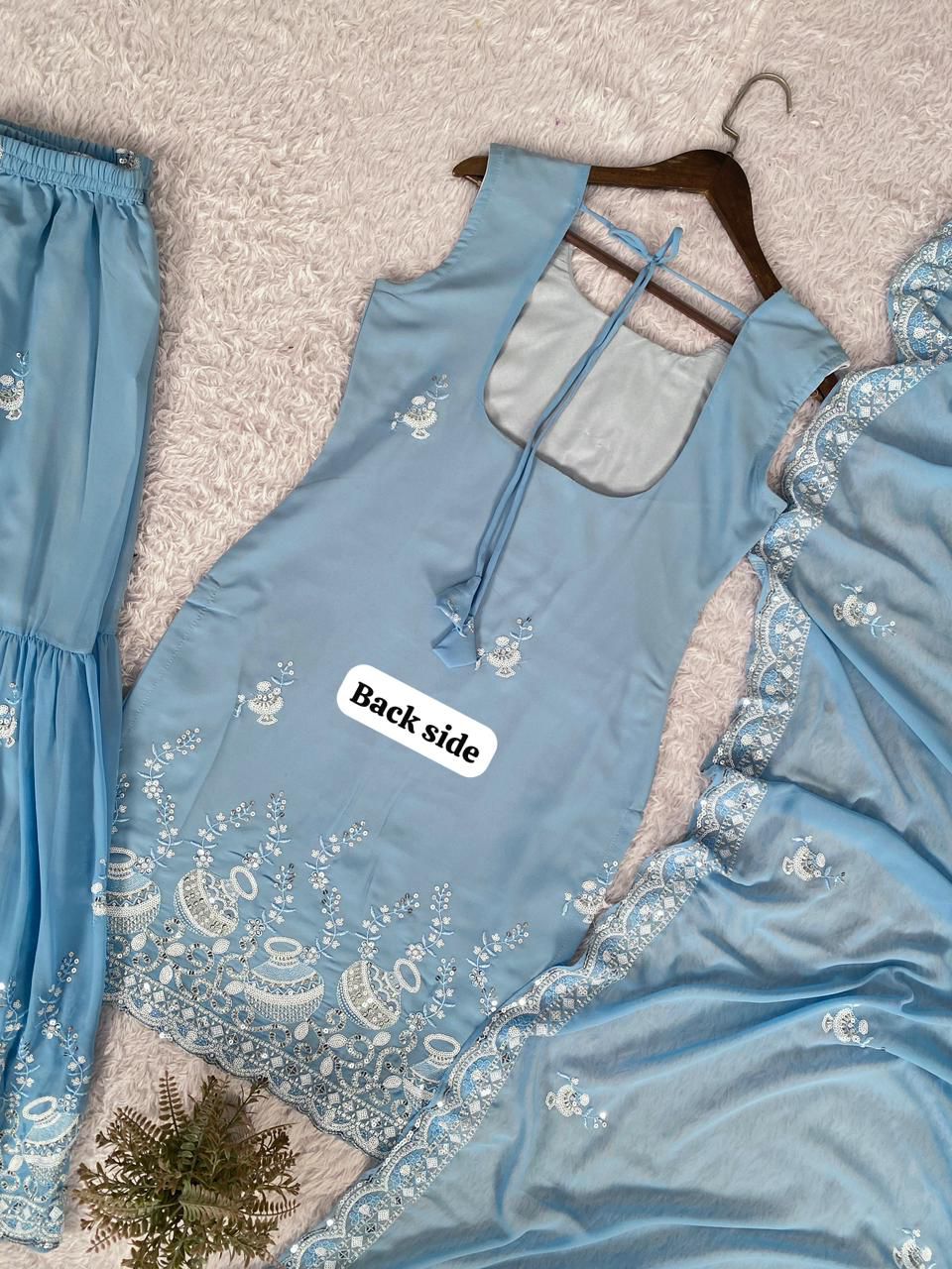 FOR PARTY AND WEDDING SEASON OUR 3 PIECE KURTI SARARA AND DUPATTA WITH SEQUENCE EMBROIDERY WORK❤️