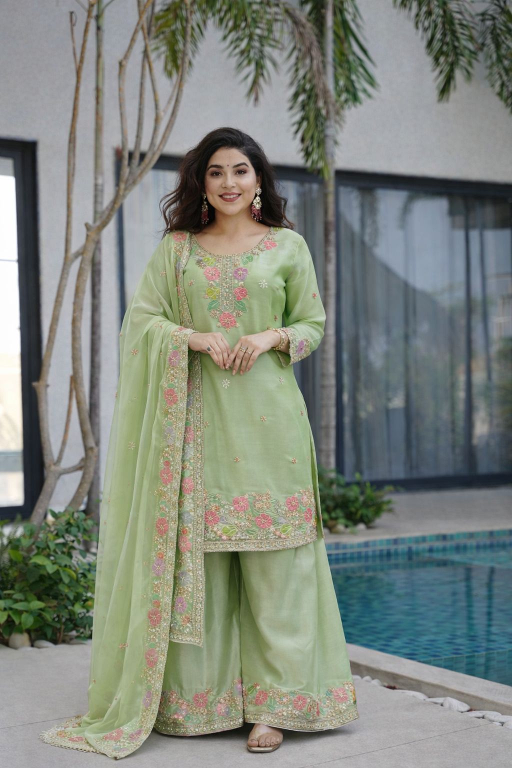 New Designer Party Top Pallazo & Dupatta Set👗* ®️🟢