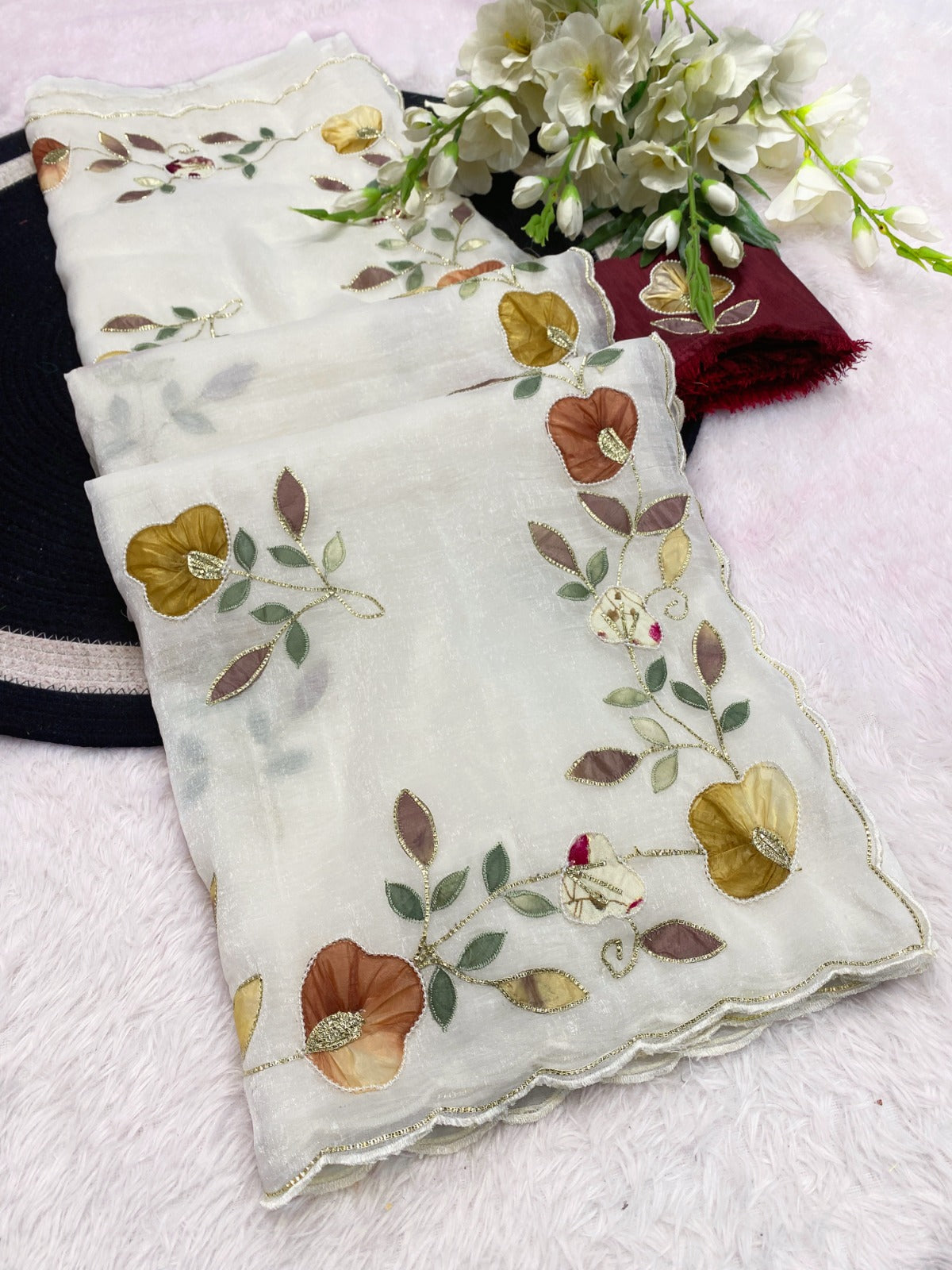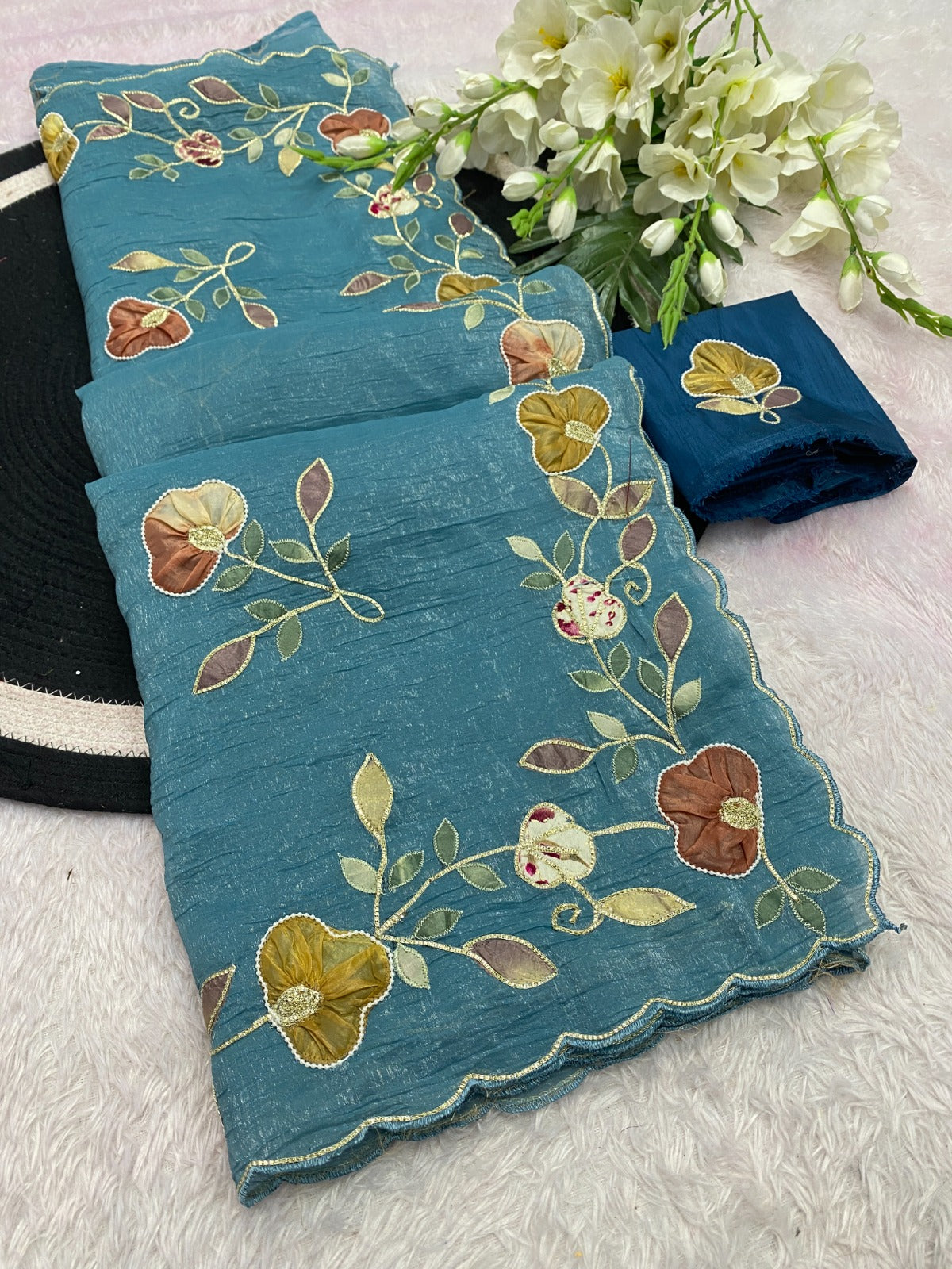 Beautiful multi color patch work and handwork Border designer saree with c Pallu ..