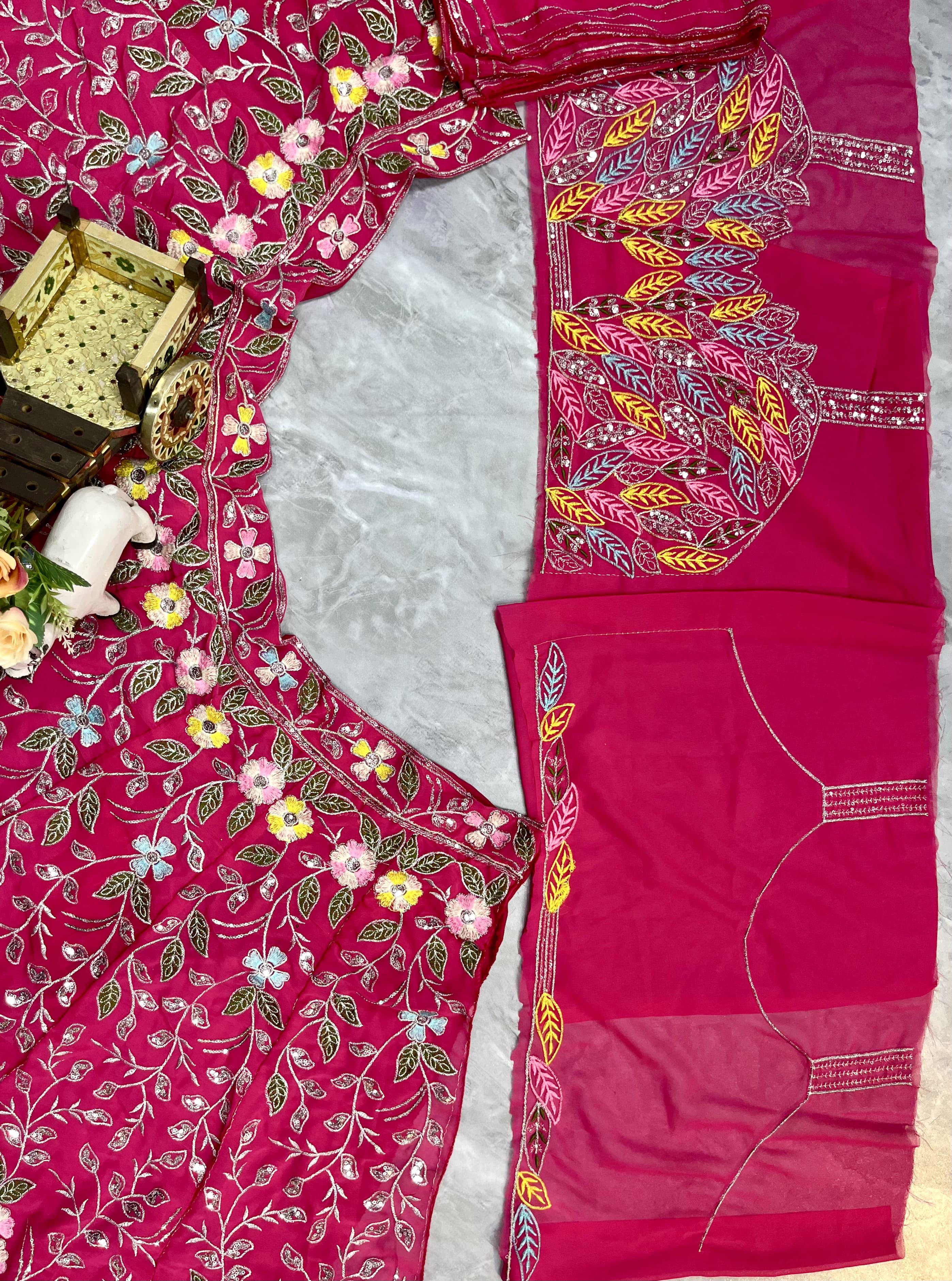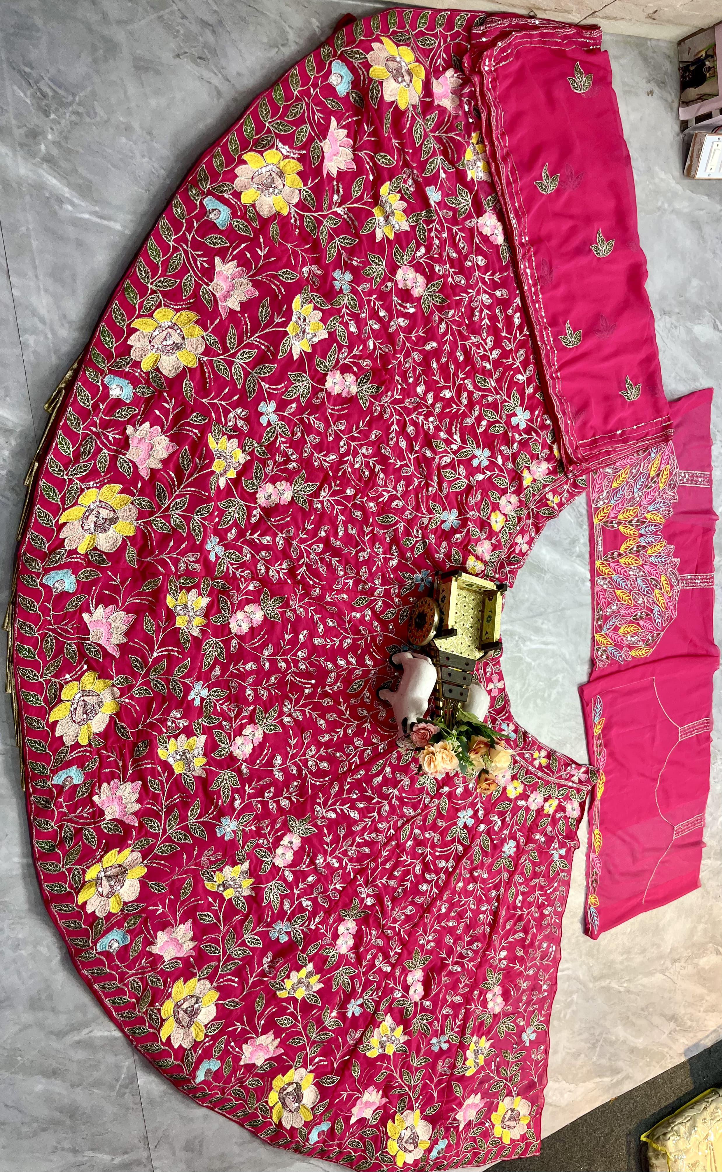 👉 Lehenga work- Embroidery Sequins Work With Cancan & Canvas Patta