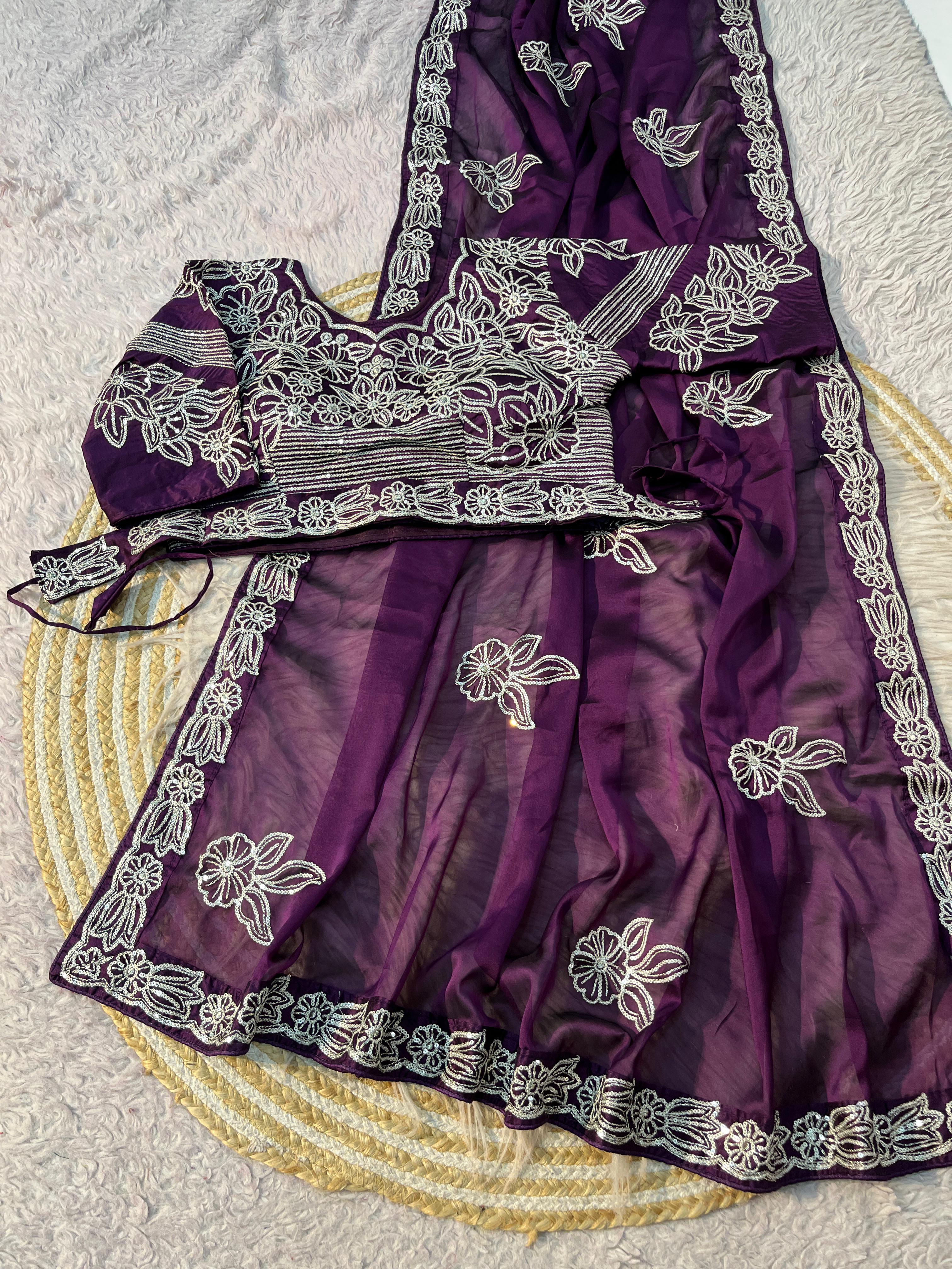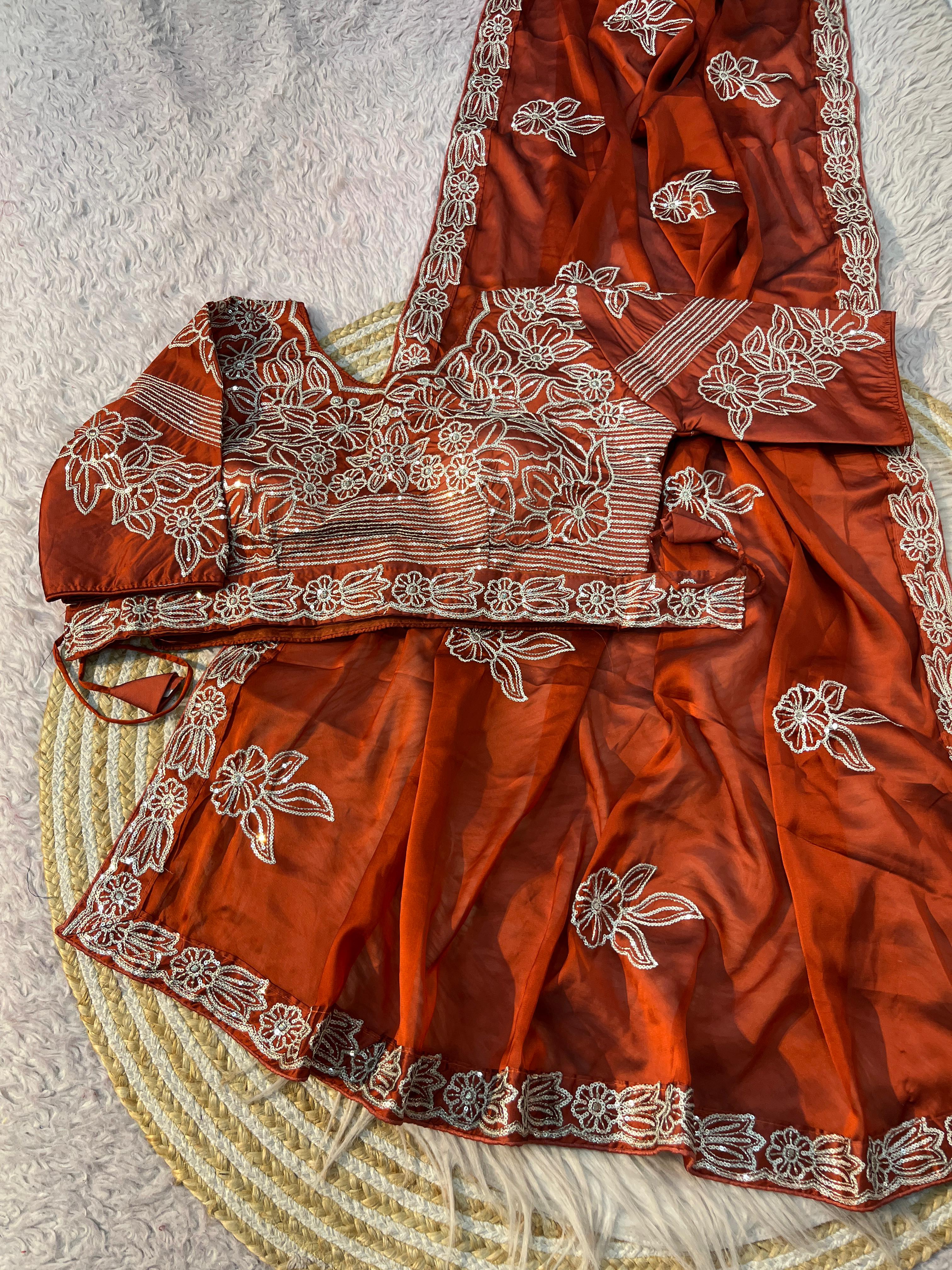 Fabric nd work :- beautiful rangoli silk with heavy sequence thread border work nd whole saree sequence work with rich look cut work