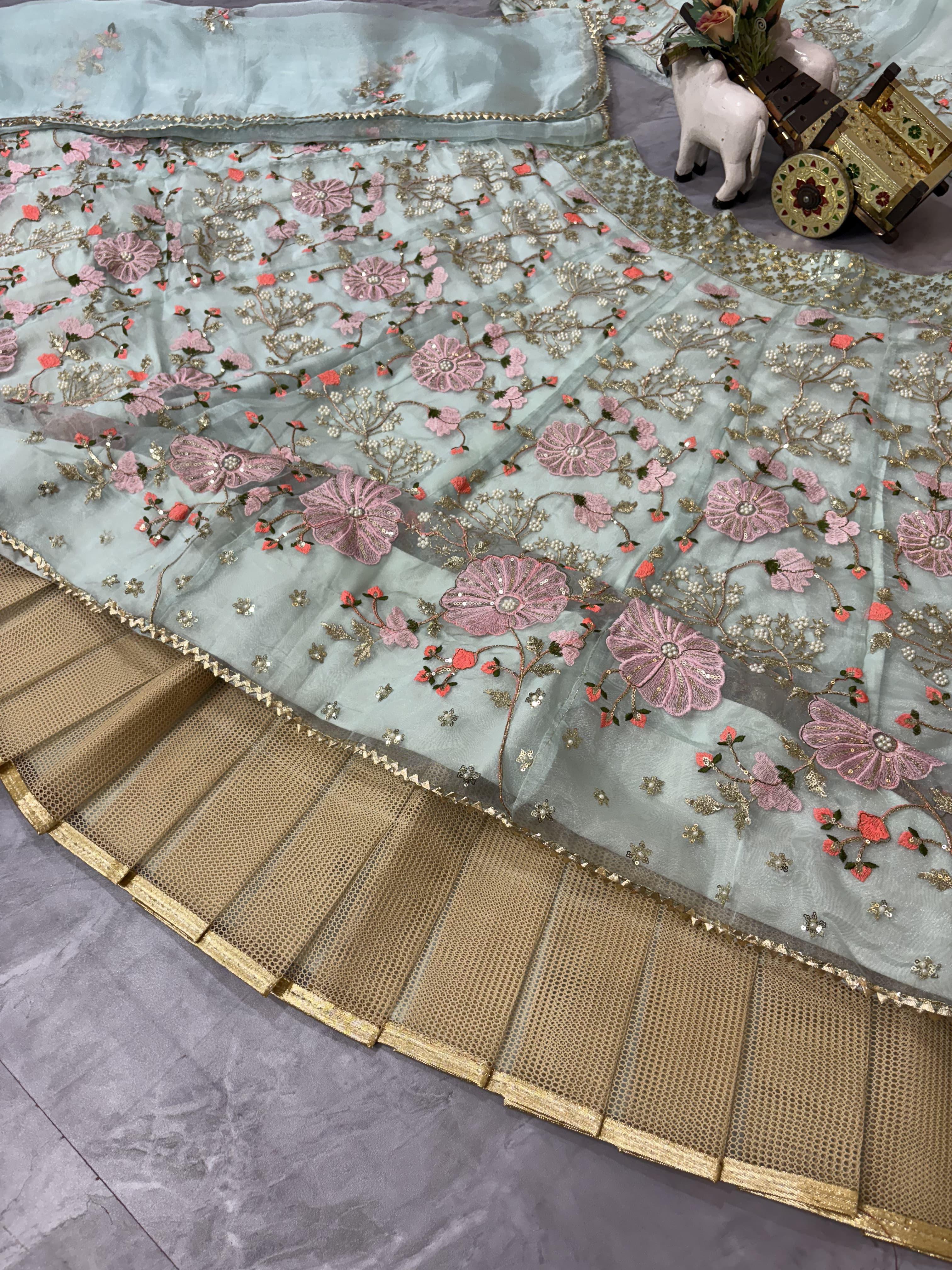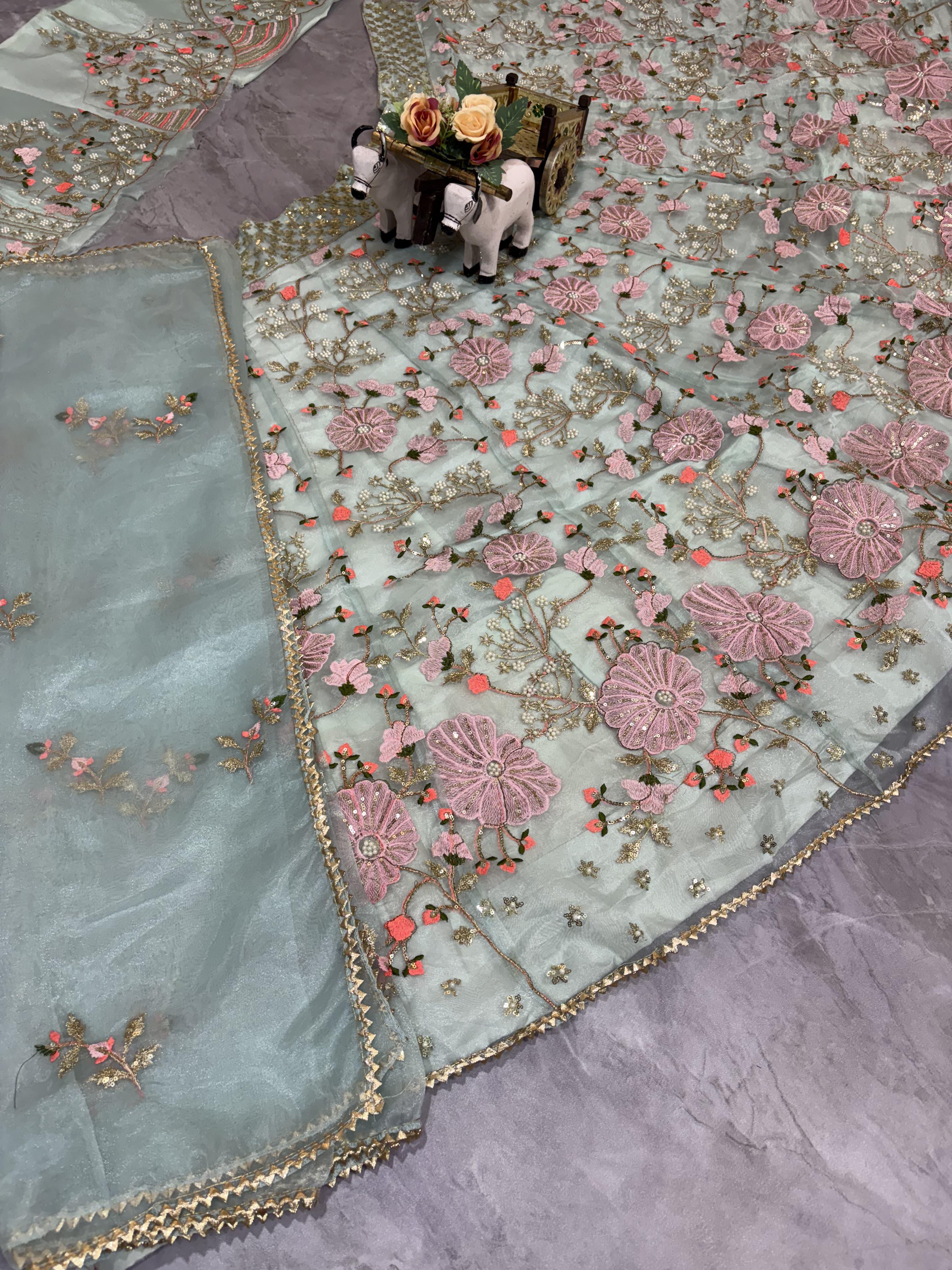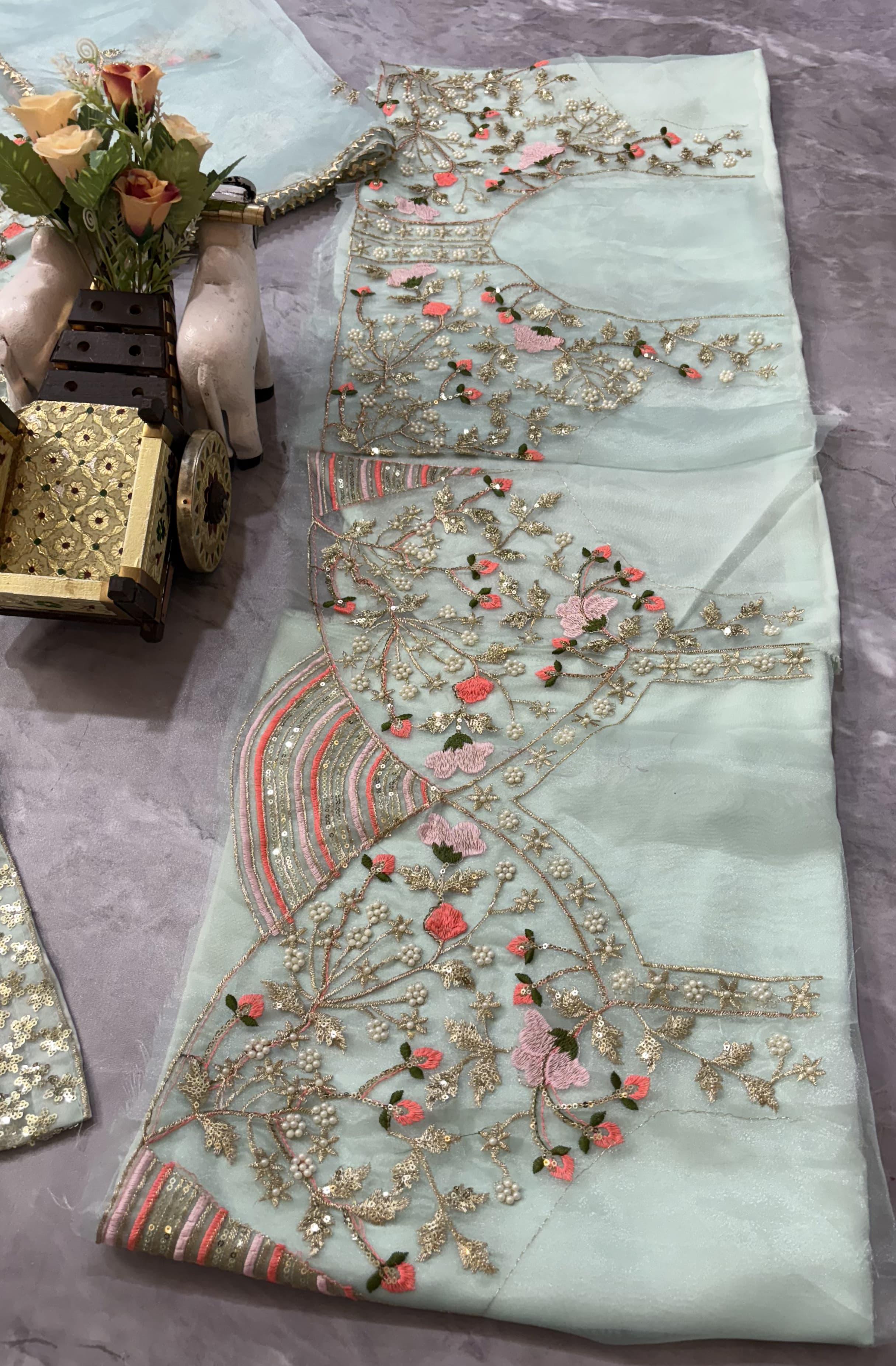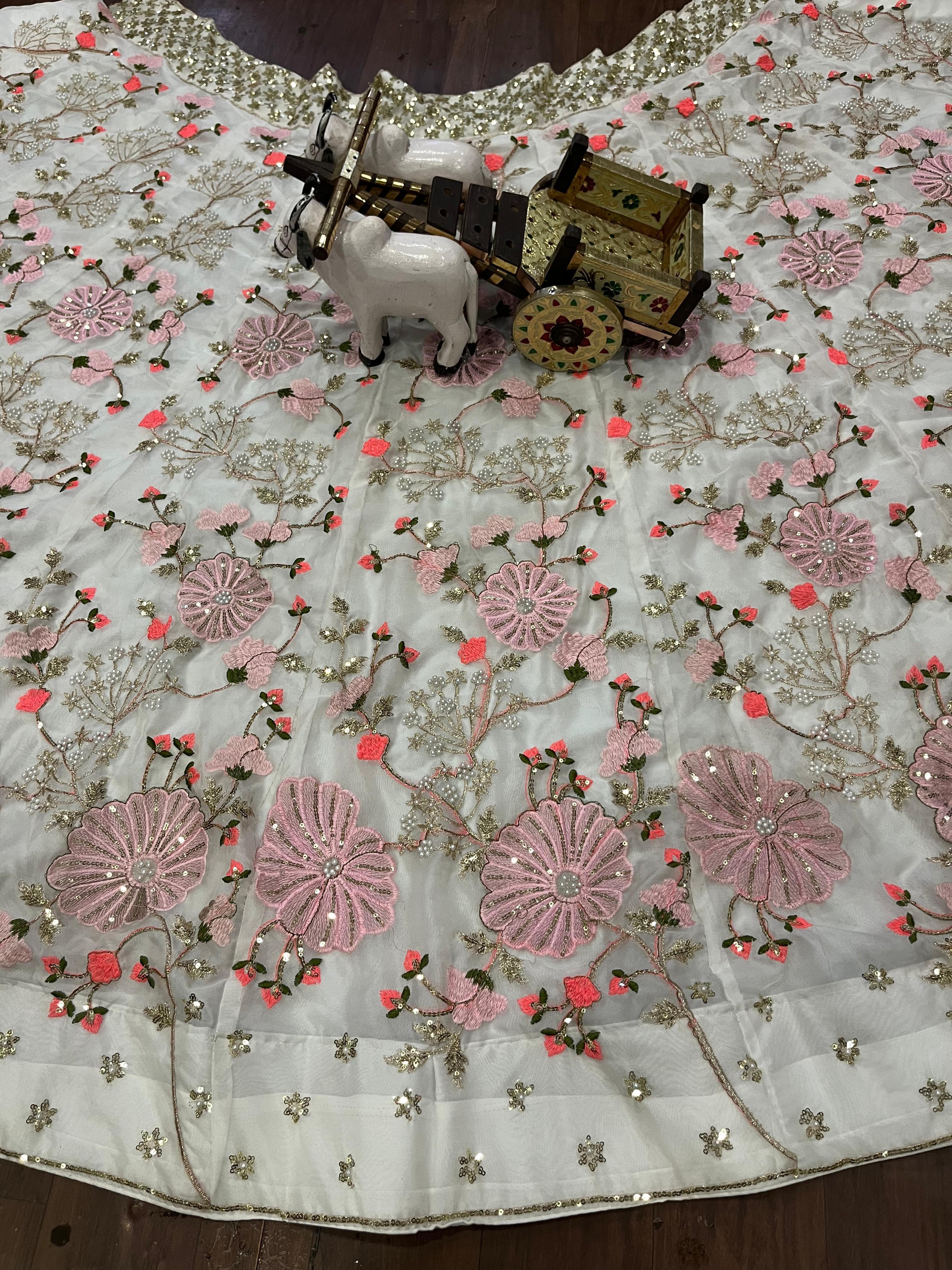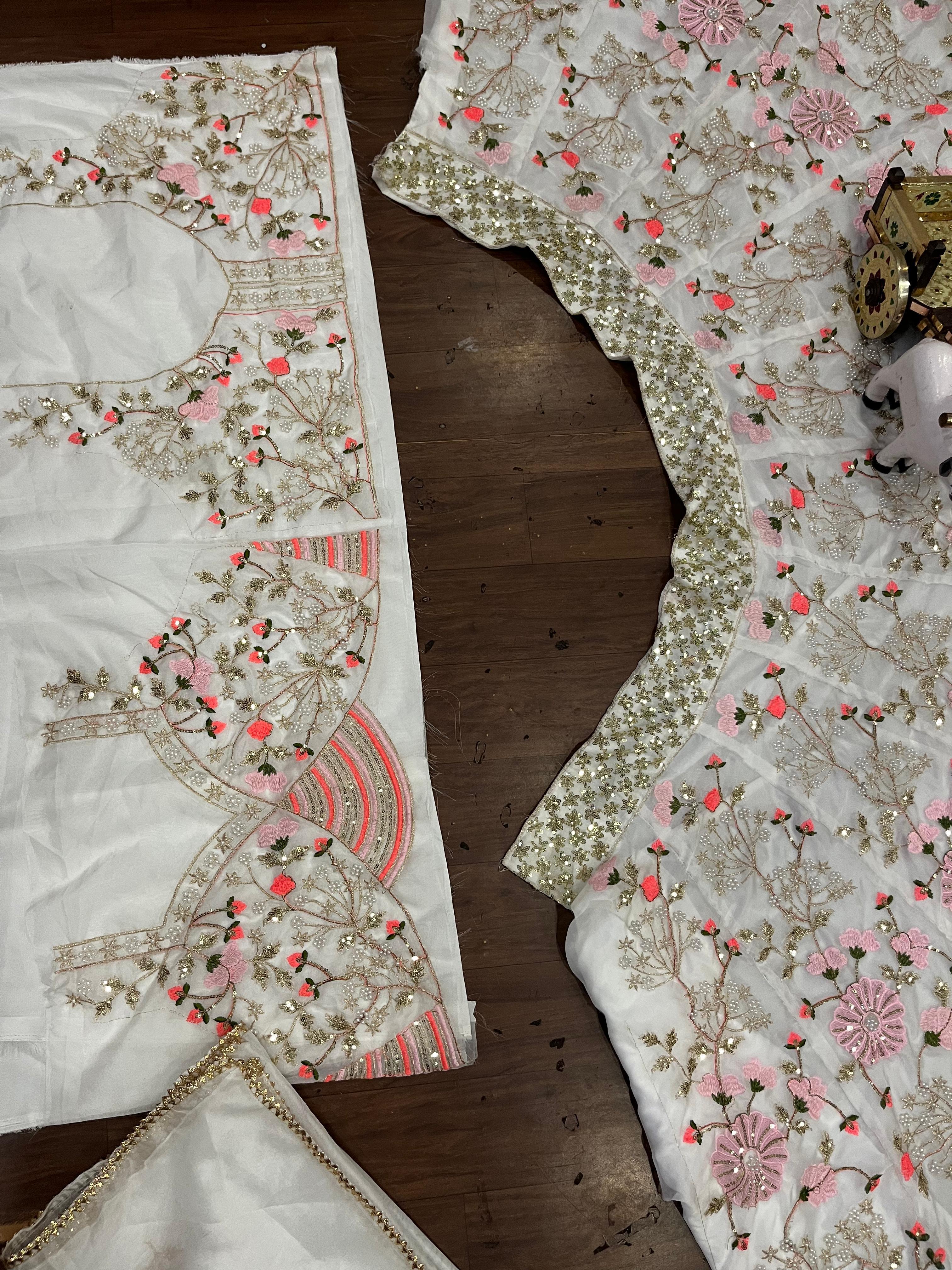 👉Lehenga work-Pearl Embroidery Sequins Work With Cancan & Canvas Patta